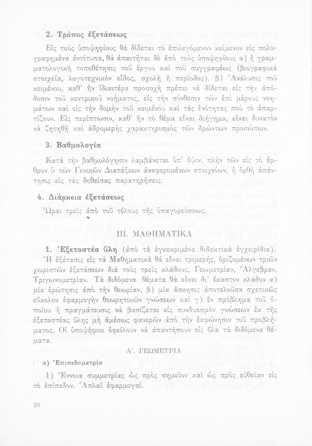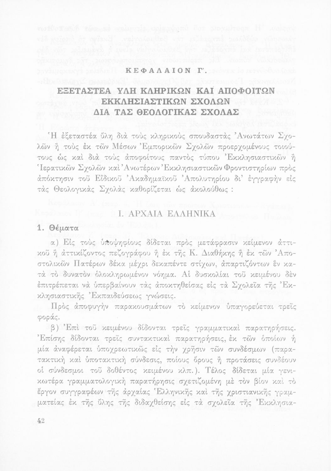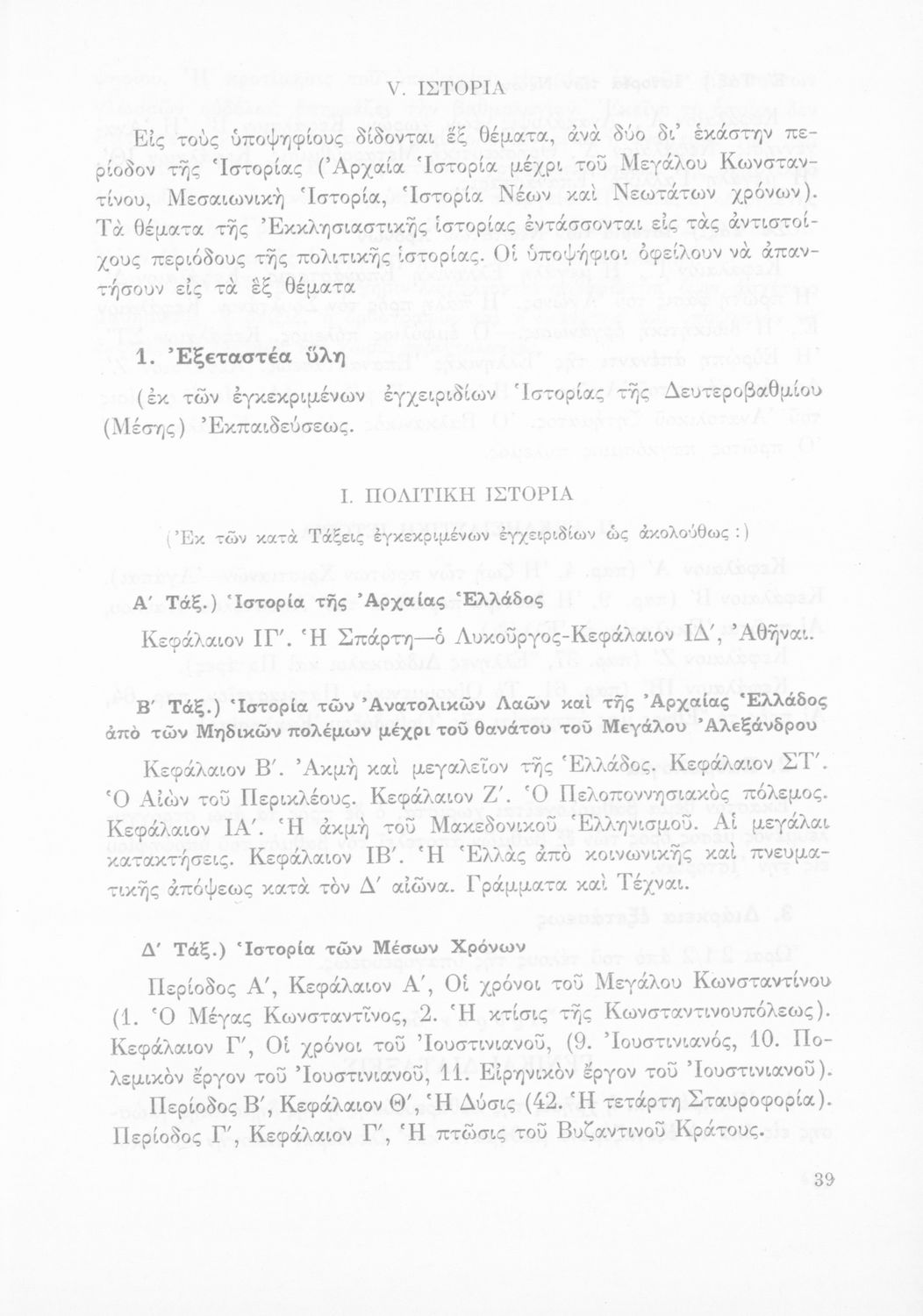 Βαθμίδα εκπαίδευσης: Δευτεροβάθμια Γλώσσα: Καθαρεύουσα Παρουσίαση περιεχομένου: Έκδοση του Υπουργείου Εθνικής Παιδείας και Θρησκευμάτων που καθορίζει την εξεταστέα ύλη για την απόκτηση του ακαδημαϊκού απολυτηρίου. |