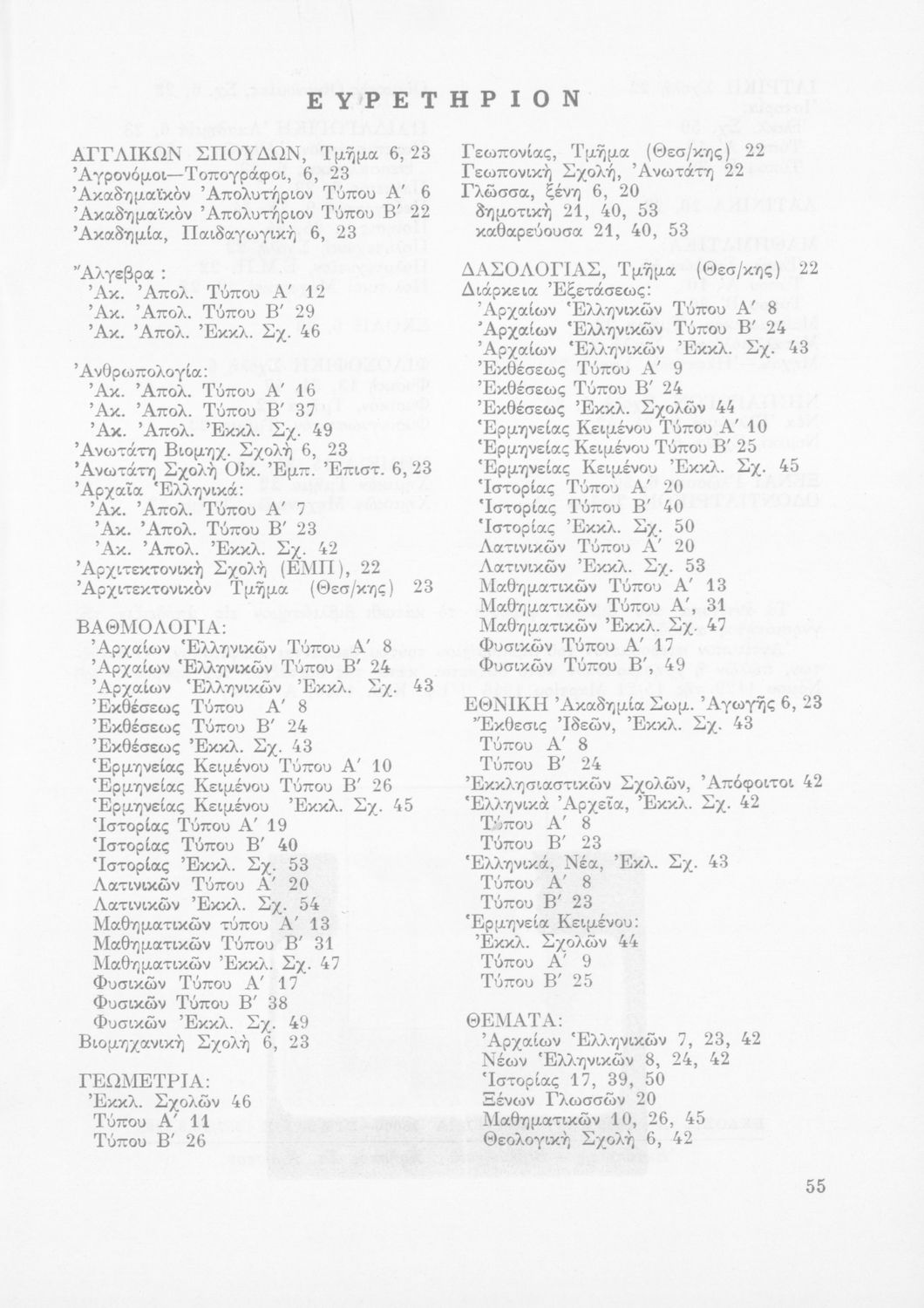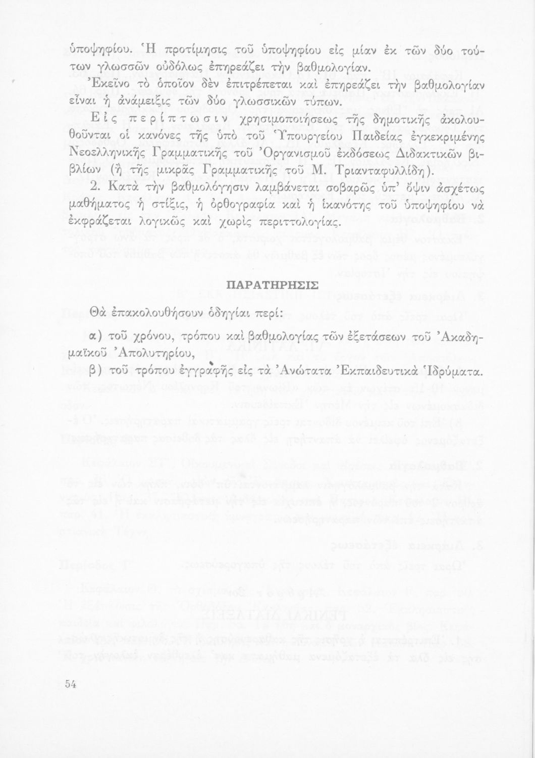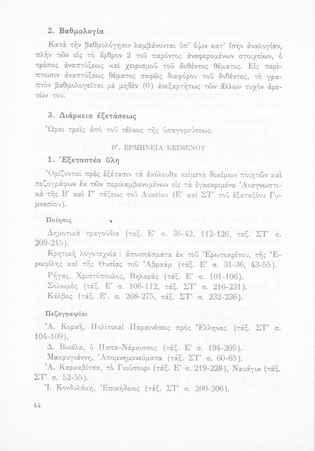Έκδοση του Υπουργείου Εθνικής Παιδείας και Θρησκευμάτων που καθορίζει την εξεταστέα ύλη για την απόκτηση του ακαδημαϊκού απολυτηρίου.