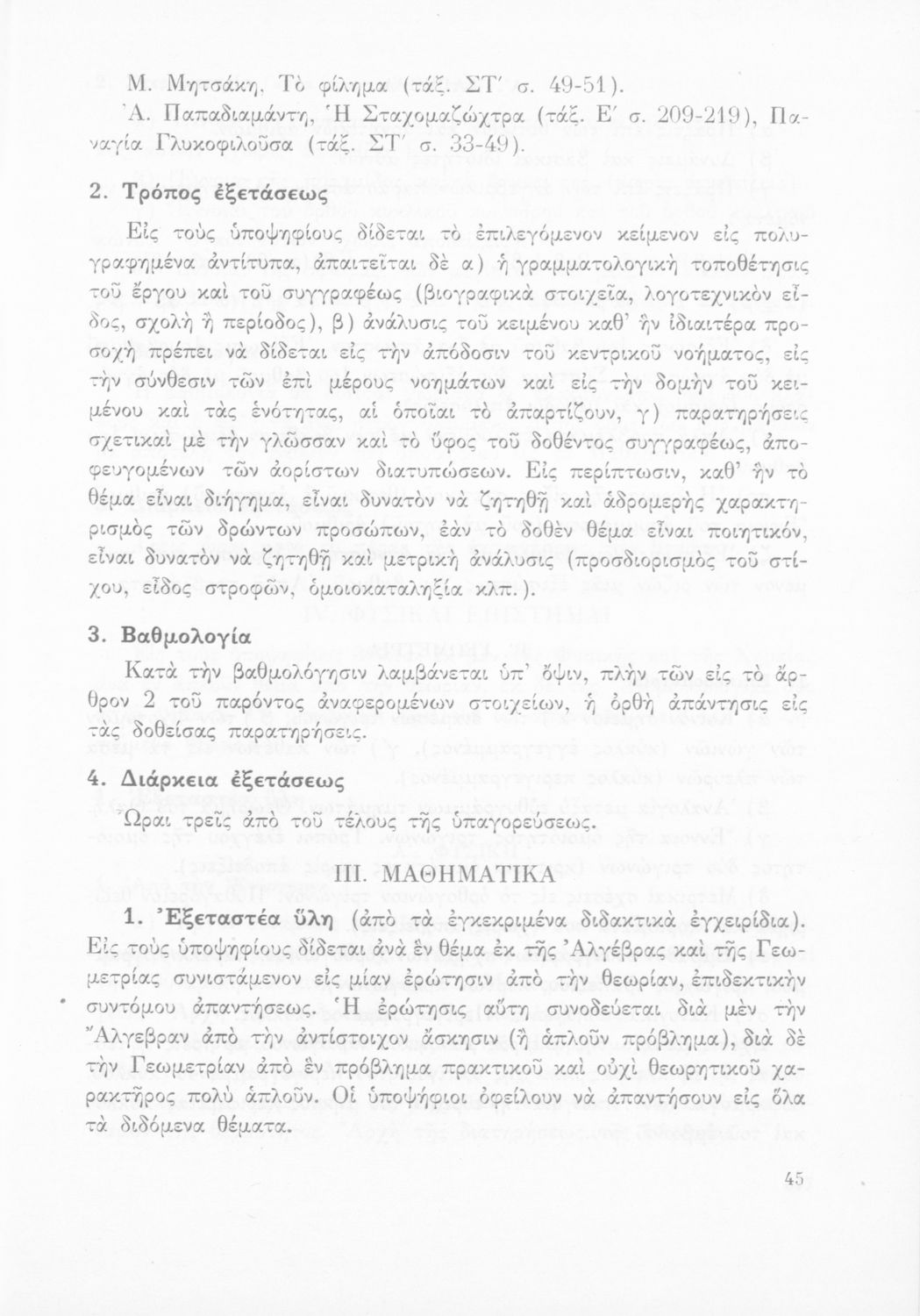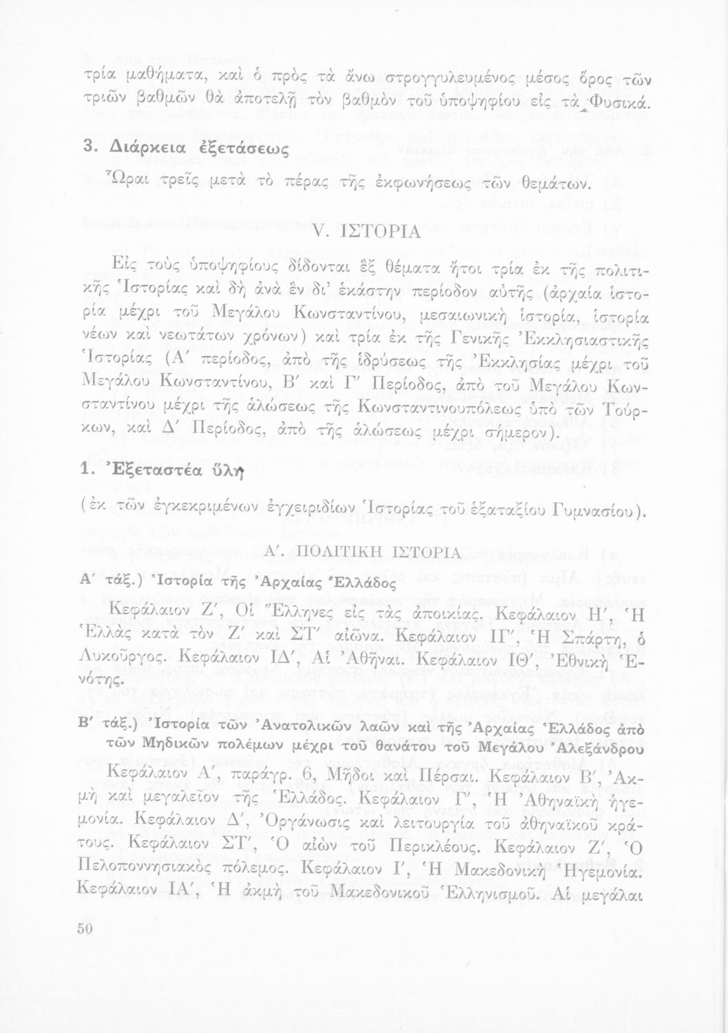 Βαθμίδα εκπαίδευσης: Δευτεροβάθμια Γλώσσα: Καθαρεύουσα Παρουσίαση περιεχομένου: Έκδοση του Υπουργείου Εθνικής Παιδείας και Θρησκευμάτων που καθορίζει την εξεταστέα ύλη για την απόκτηση του ακαδημαϊκού απολυτηρίου. |