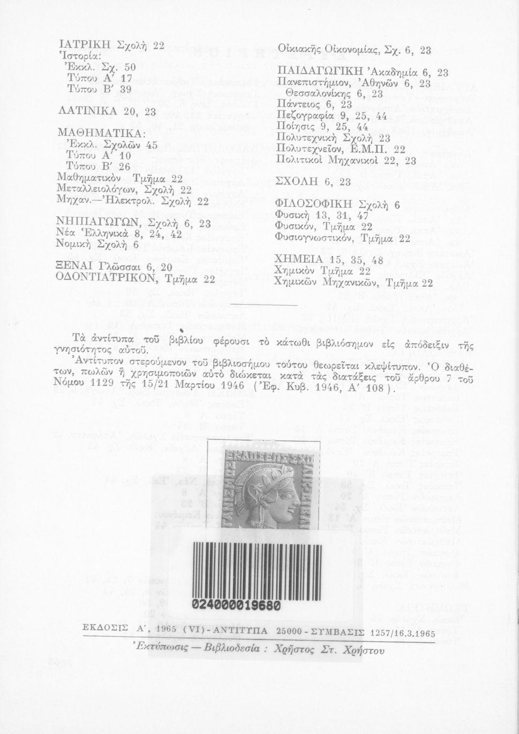Εκδότης: Οργανισμός Εκδόσεως Διδακτικών Βιβλίων Έτος έκδοσης: 1965 Τόπος έκδοσης: Αθήνα Έκδοση: 1η Υπουργική απόφαση / Σύμβαση: 1257/16-3-1965 |