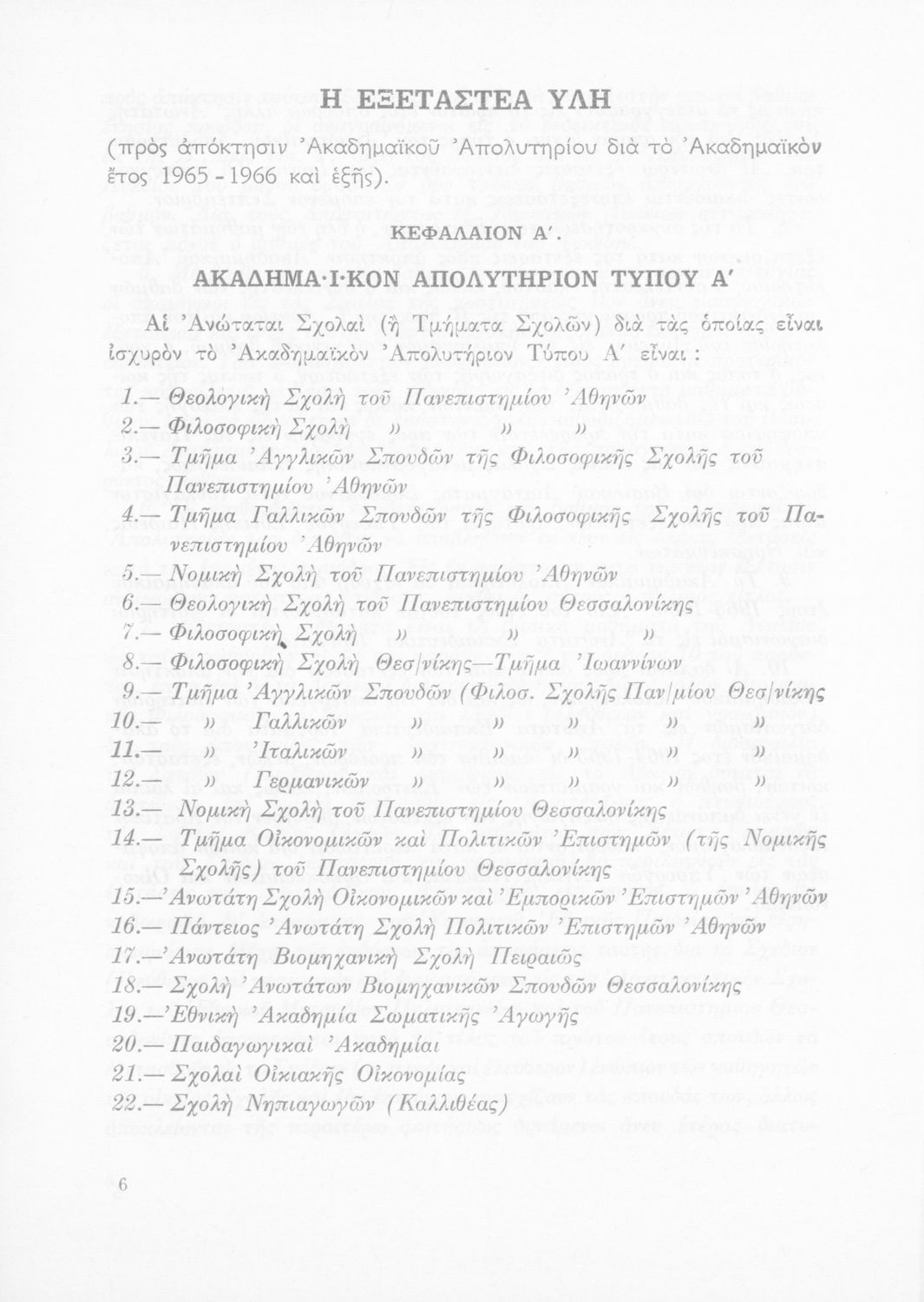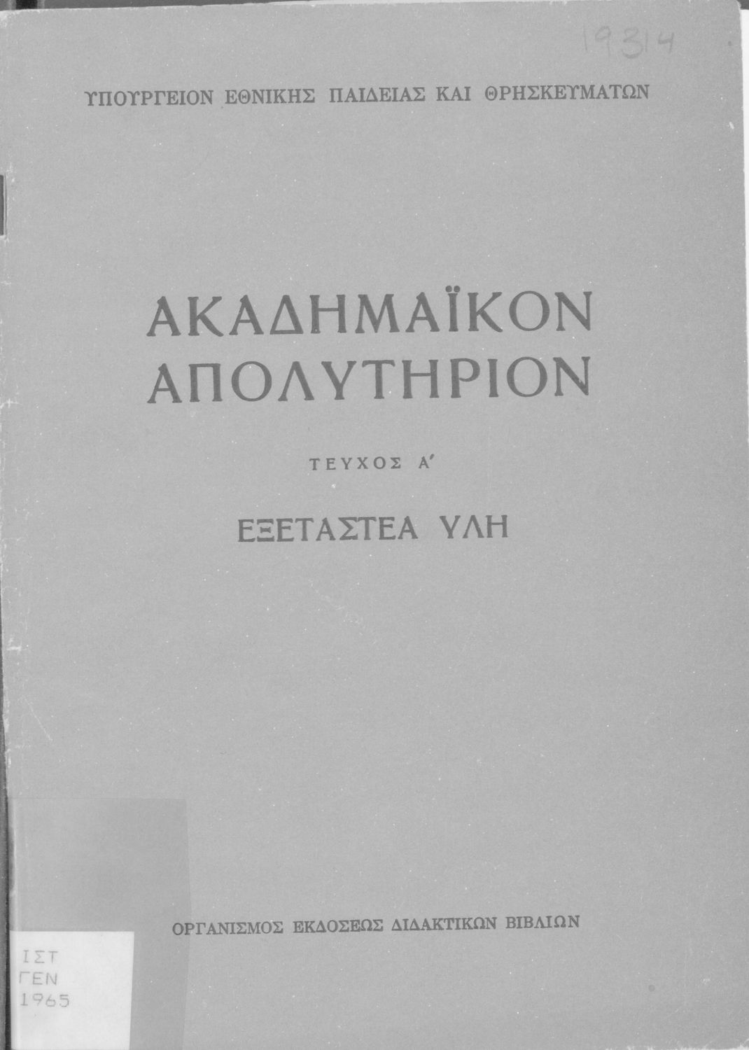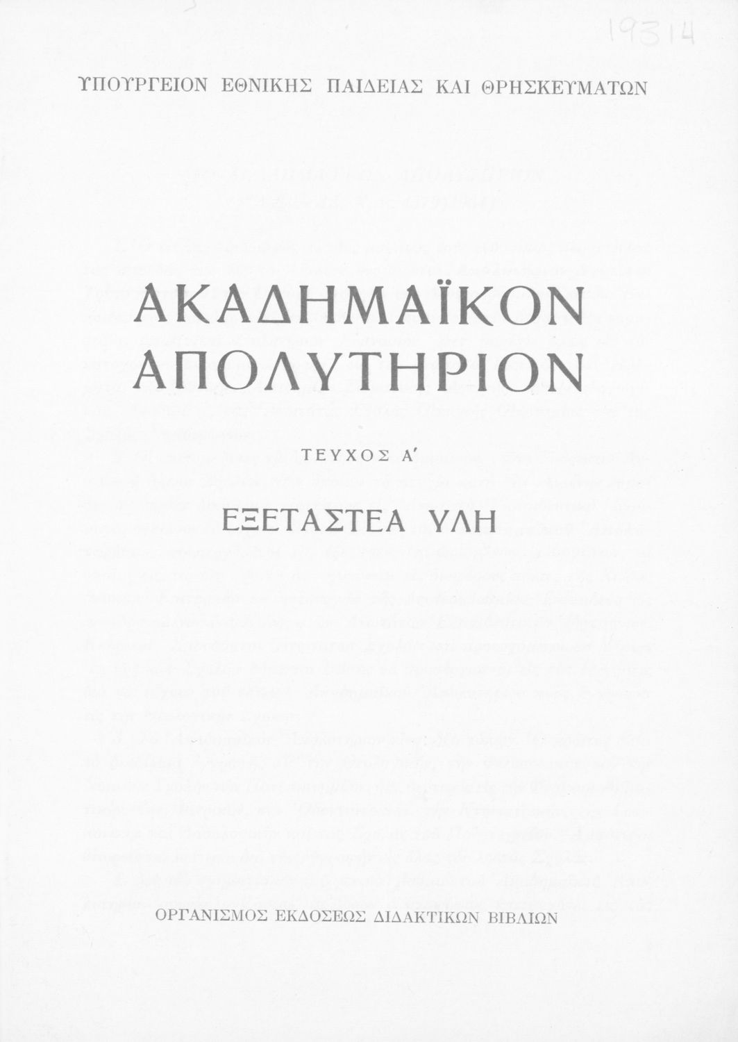Έκδοση του Υπουργείου Εθνικής Παιδείας και Θρησκευμάτων που καθορίζει την εξεταστέα ύλη για την απόκτηση του ακαδημαϊκού απολυτηρίου.