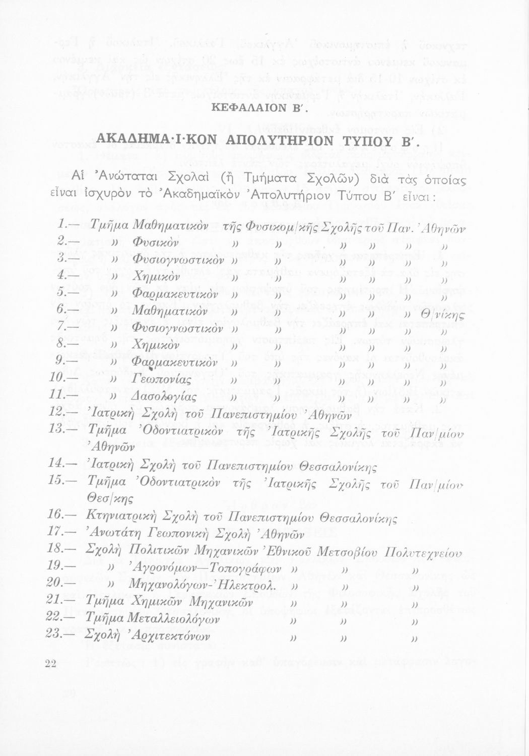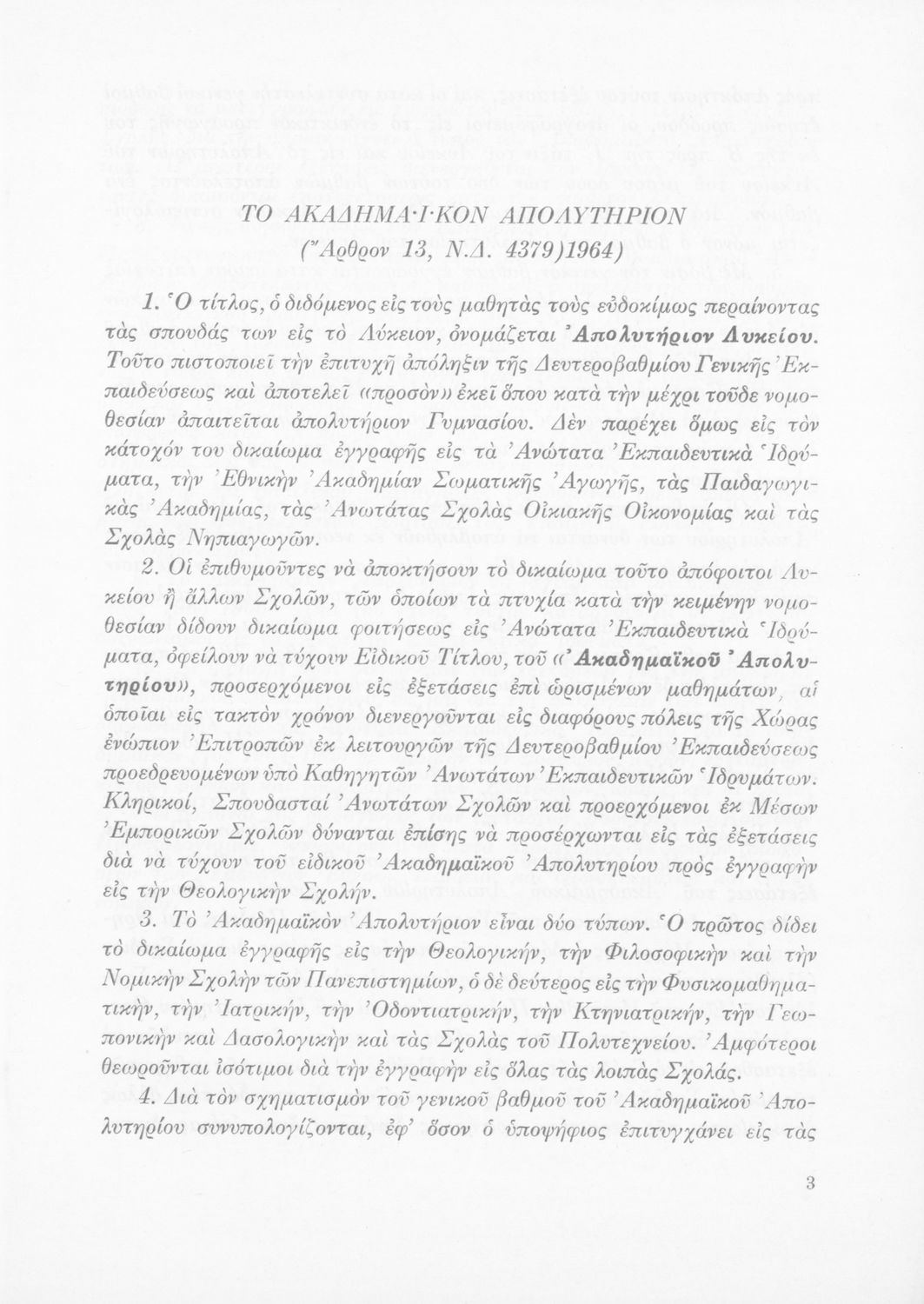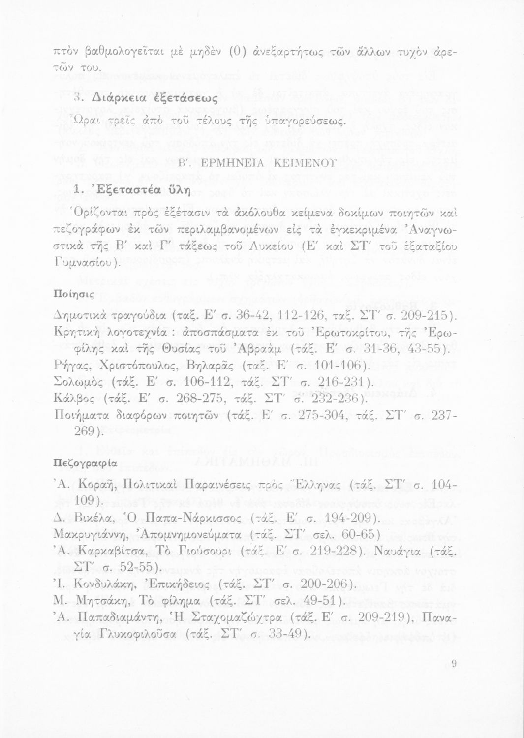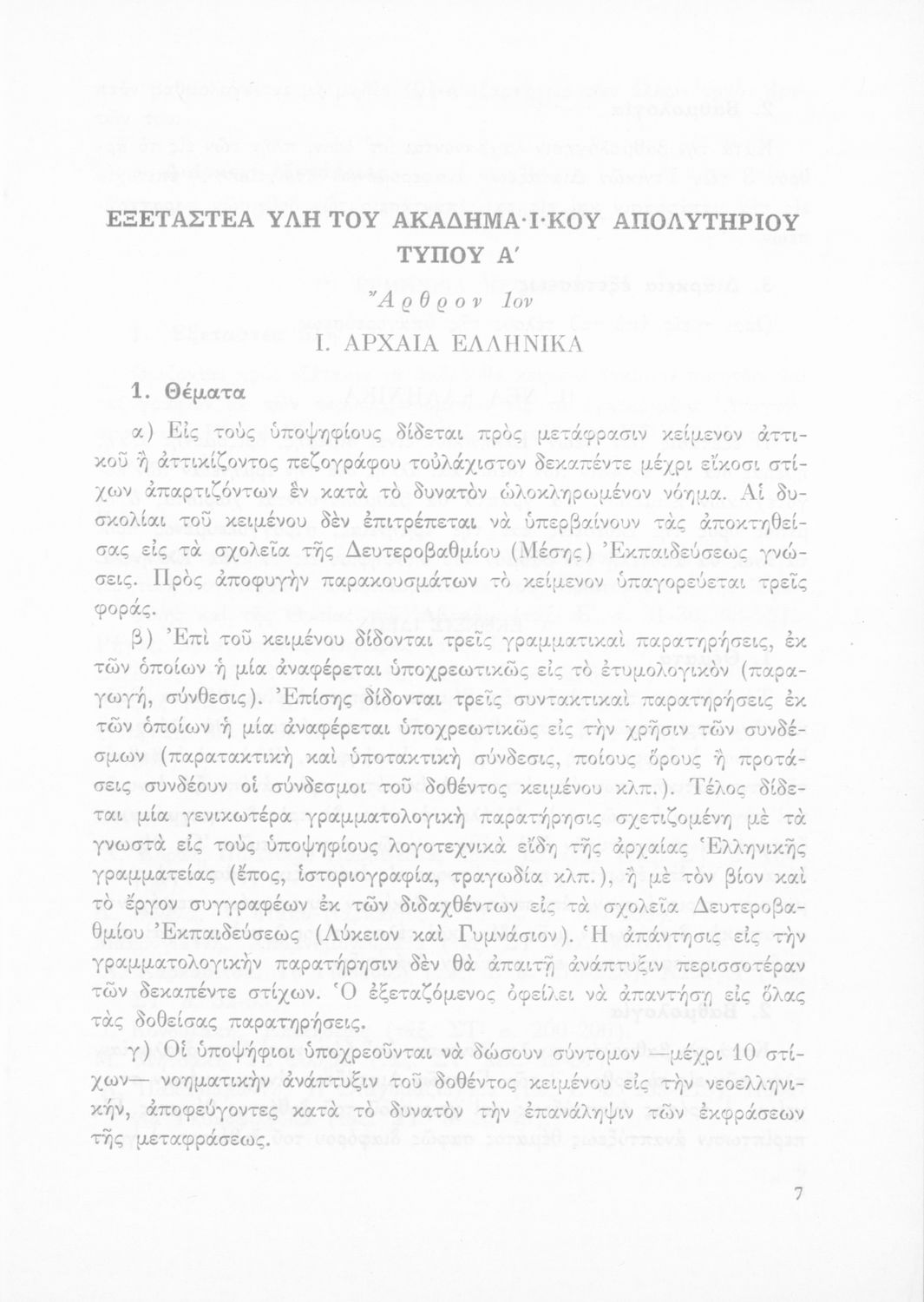 Έκδοση του Υπουργείου Εθνικής Παιδείας και Θρησκευμάτων που καθορίζει την εξεταστέα ύλη για την απόκτηση του ακαδημαϊκού απολυτηρίου.