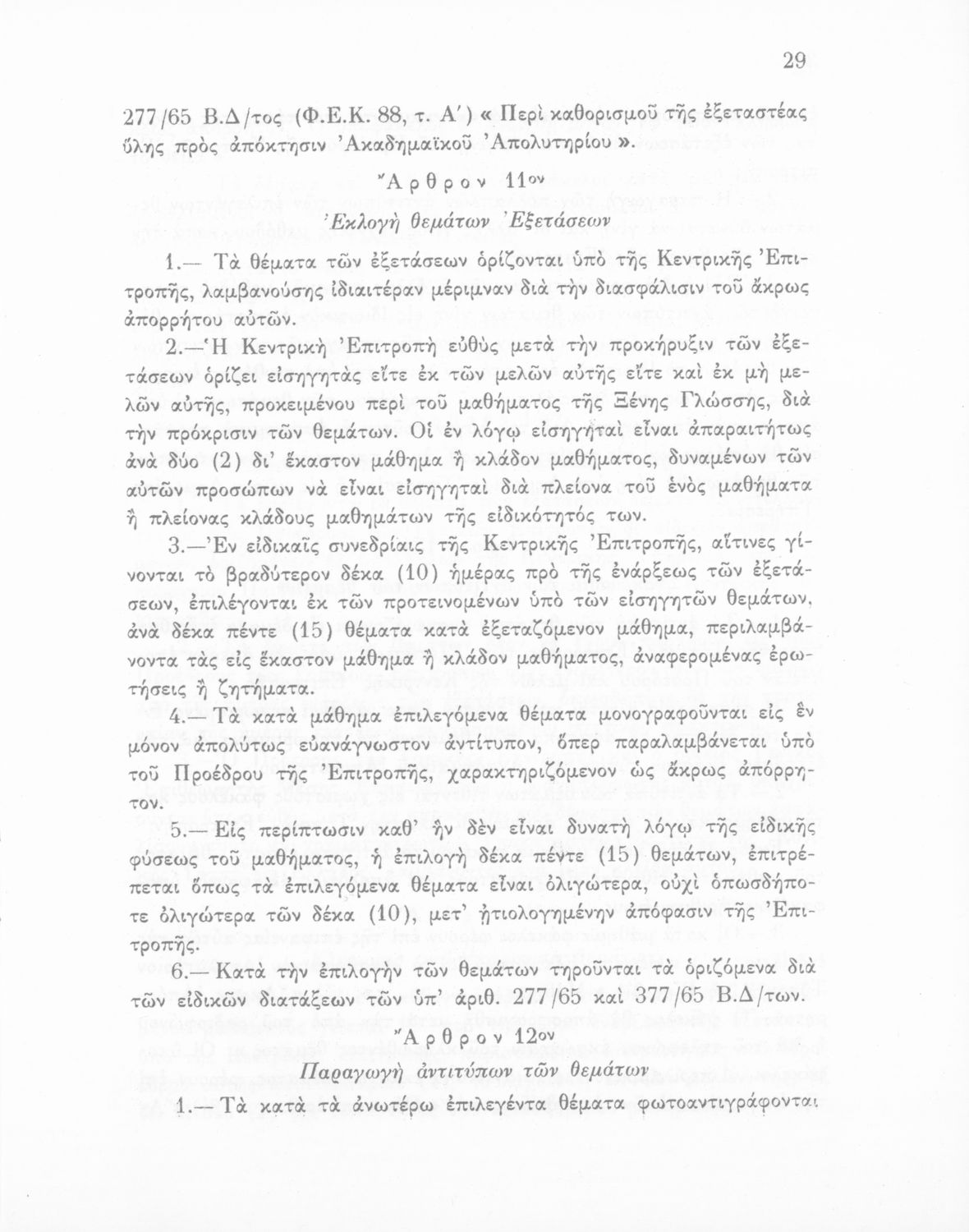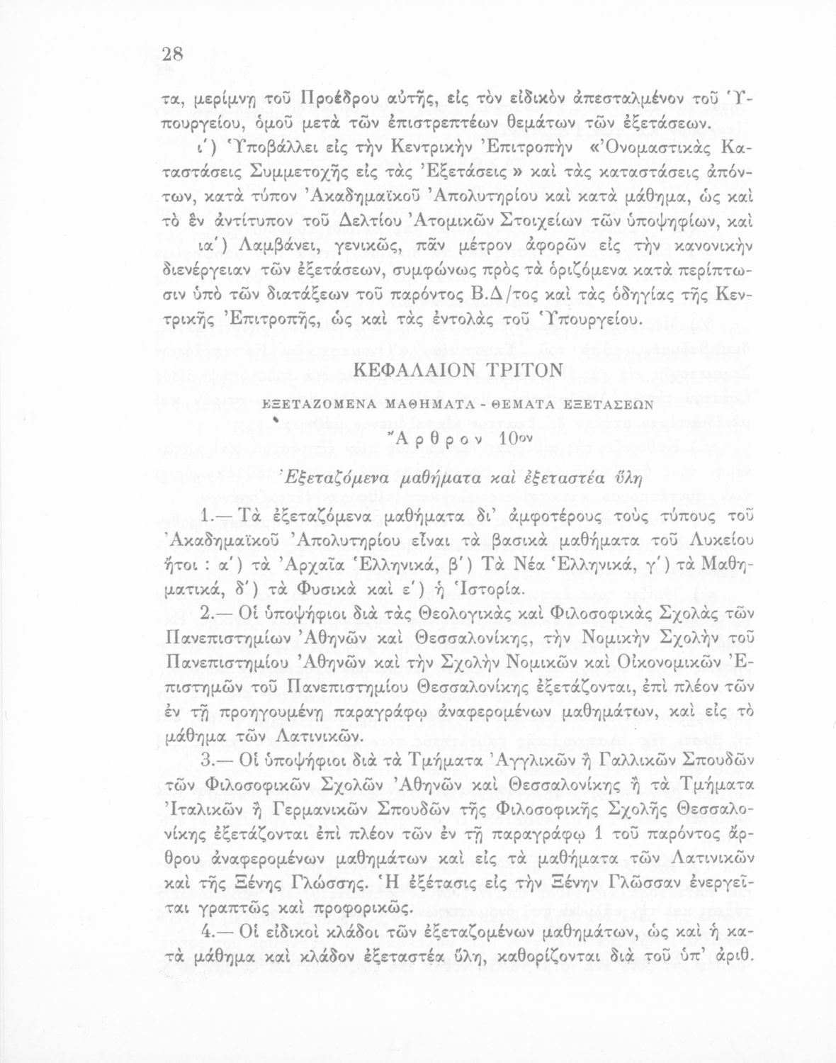 Έκδοση του Υπουργείου Εθνικής Παιδείας και Θρησκευμάτων που καθορίζει την εξεταστέα ύλη για την απόκτηση του ακαδημαϊκού απολυτηρίου και τον τρόπο διενέργειας εξετάσεων και επιλογής υποψηφίων για τις ανώτατες σχολές.