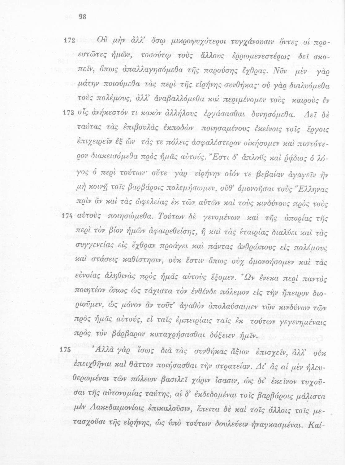 Σχολικό εγχειρίδιο Αρχαίων Ελληνικών Δ΄ Γυμνασίου που περιλαμβάνει τους Ολυνθιακούς Α΄ και Β΄ και τους Φιλιππικούς Α΄ και Β' του Δημοσθένη, τον Λόγο κατά Λεωκράτους του Λυκούργου και Επιστολές του Ισοκράτη, ...