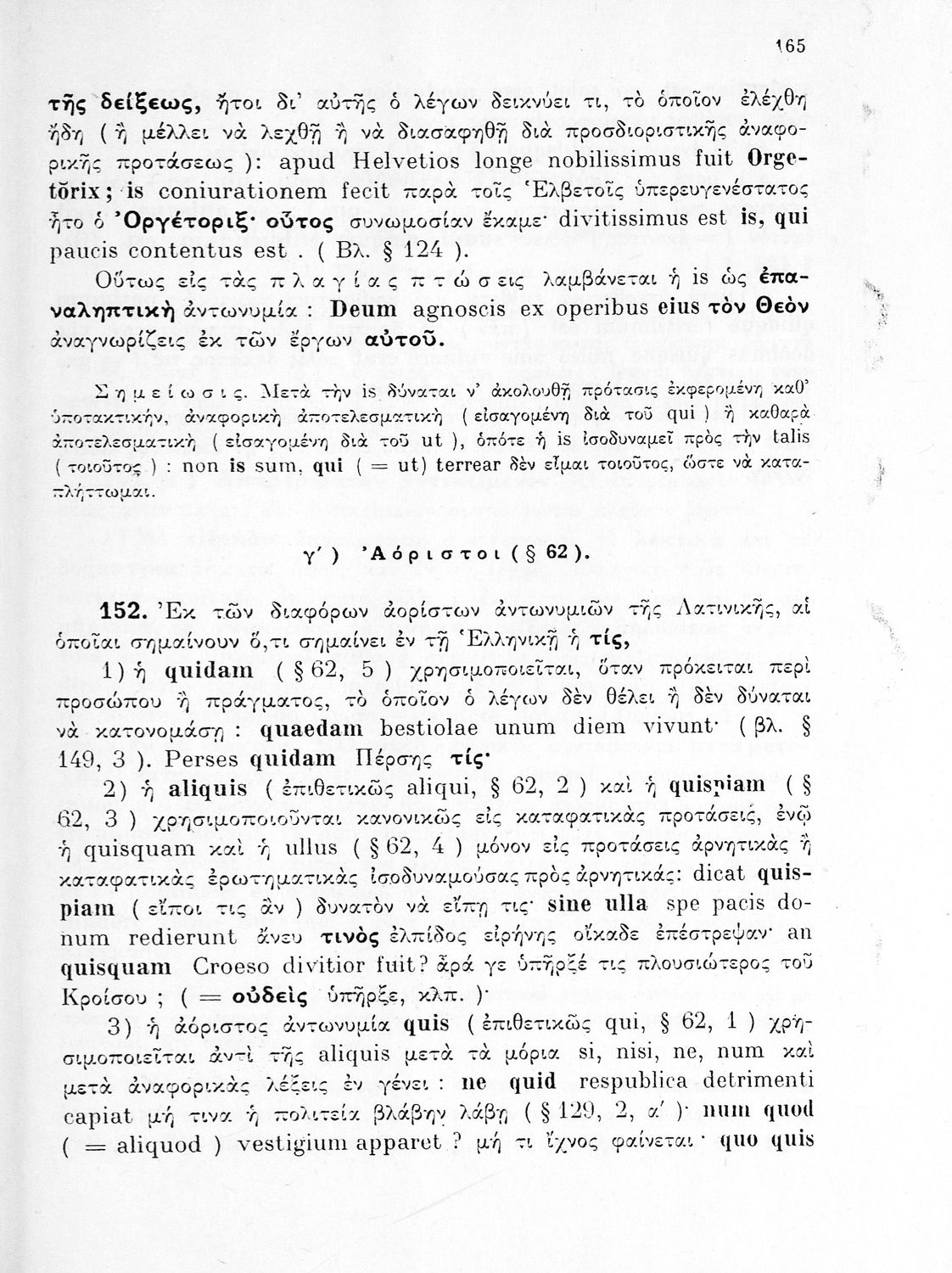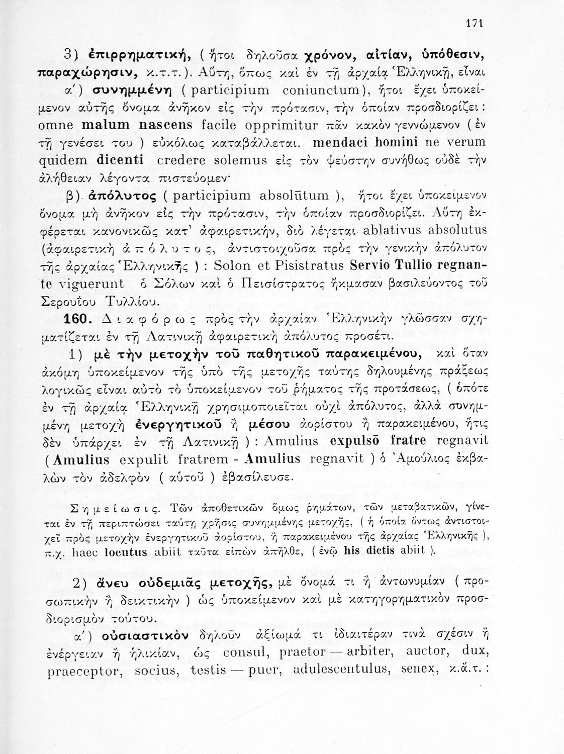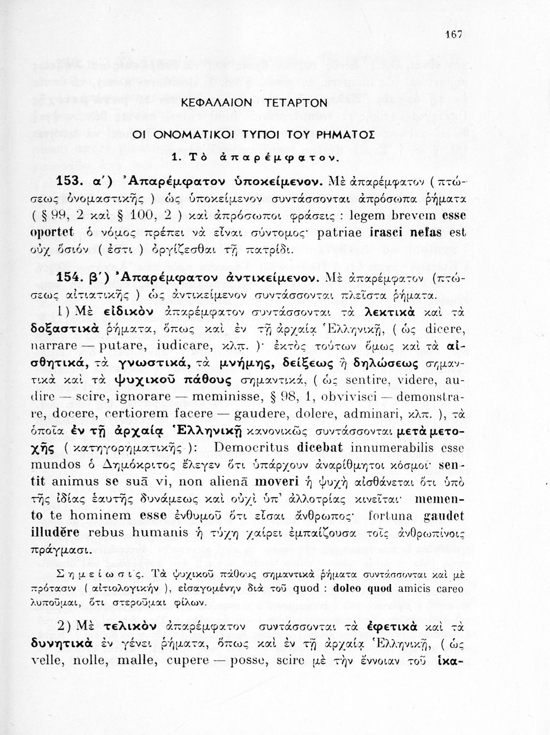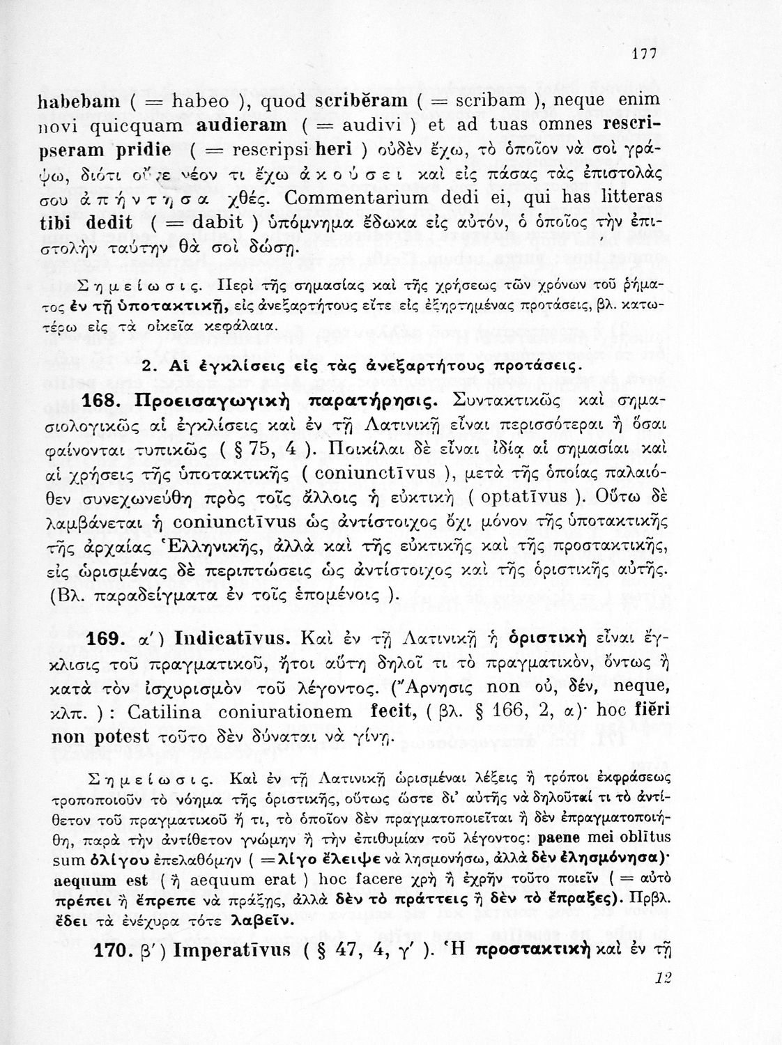 Σχολικό εγχειρίδιο Λατινικών Γυμνασίου που περιλαμβάνει γραμματική και συντακτικό και είναι χωρισμένο σε φθογγολογικό, τυπολογικό και ετυμολογικό μέρος.