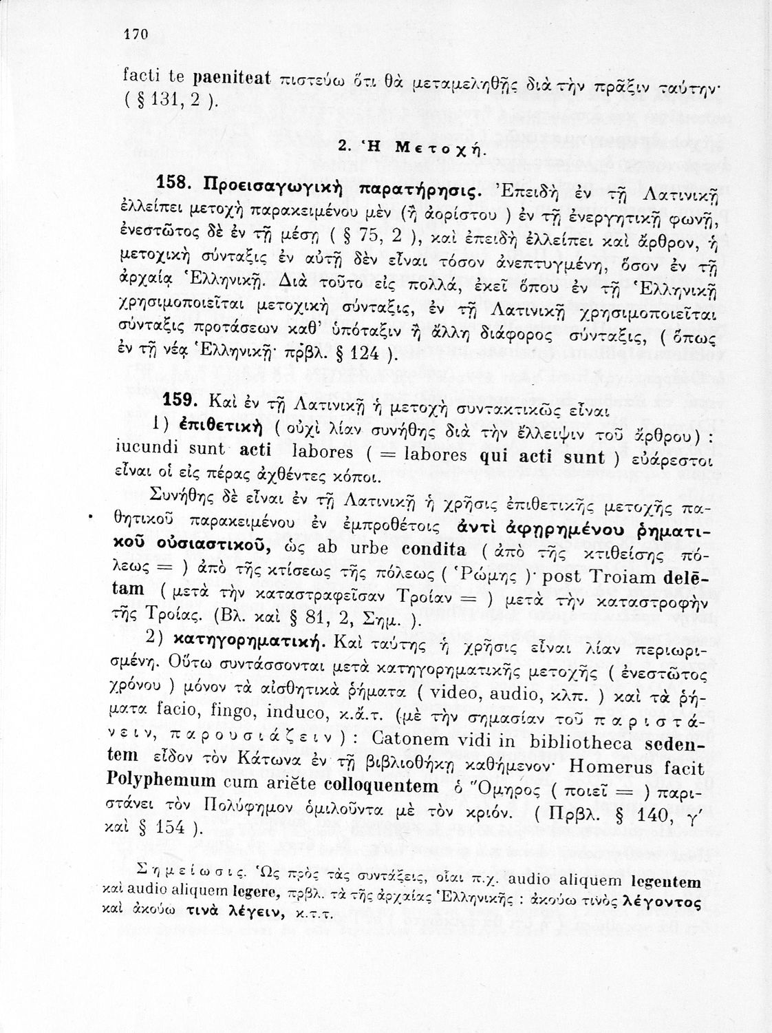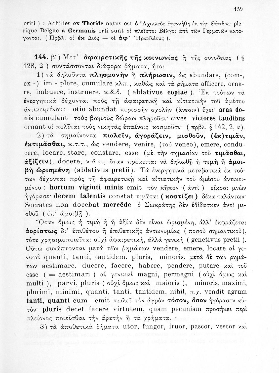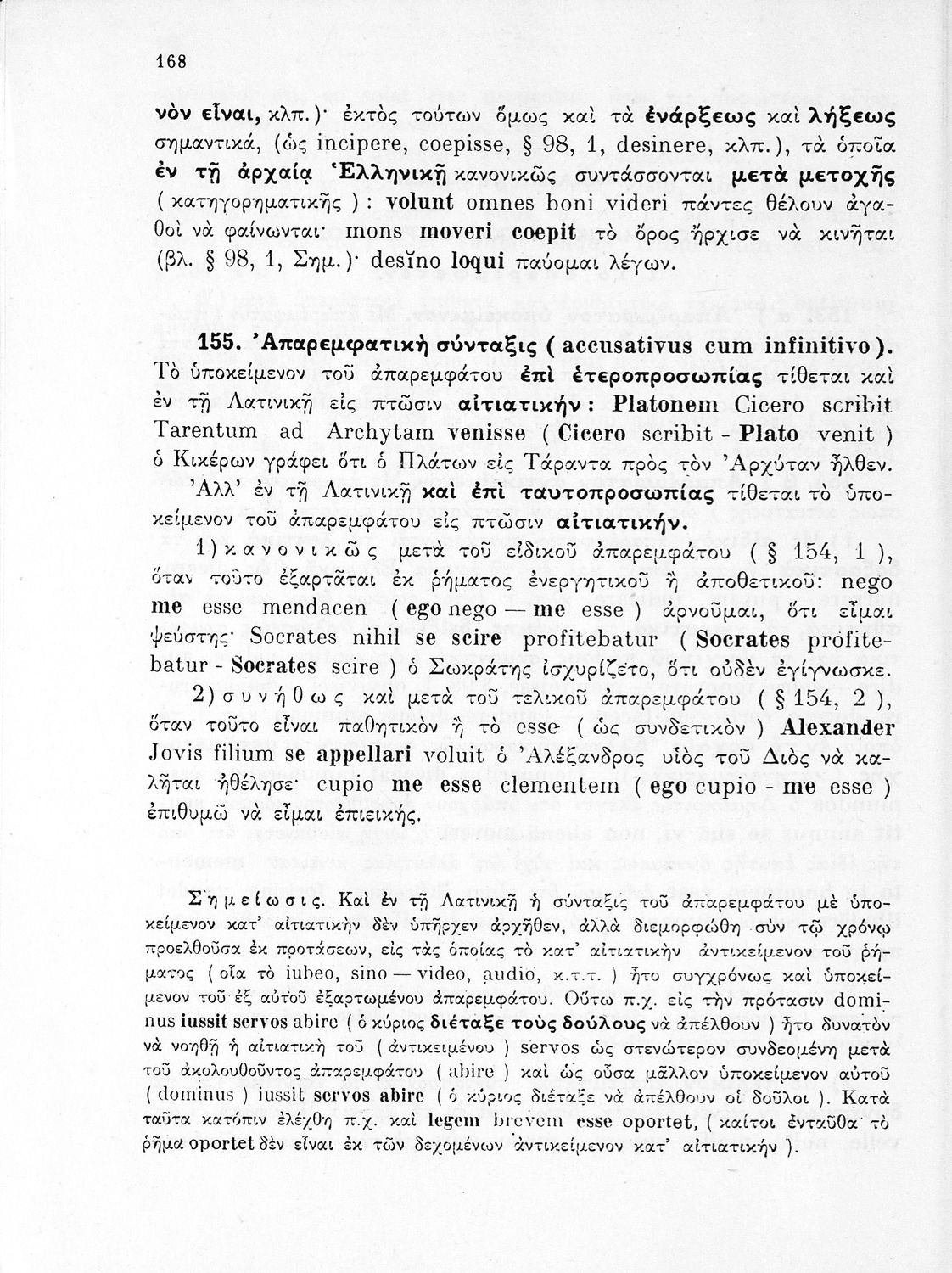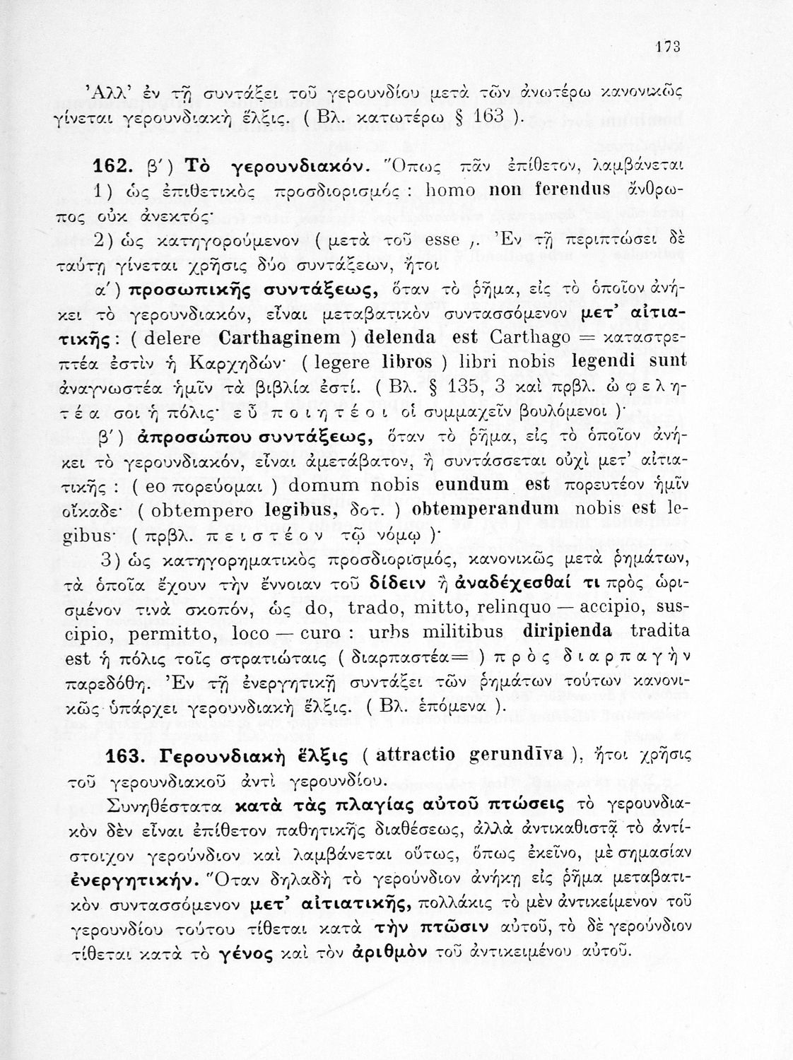 Σχολικό εγχειρίδιο Λατινικών Γυμνασίου που περιλαμβάνει γραμματική και συντακτικό και είναι χωρισμένο σε φθογγολογικό, τυπολογικό και ετυμολογικό μέρος.