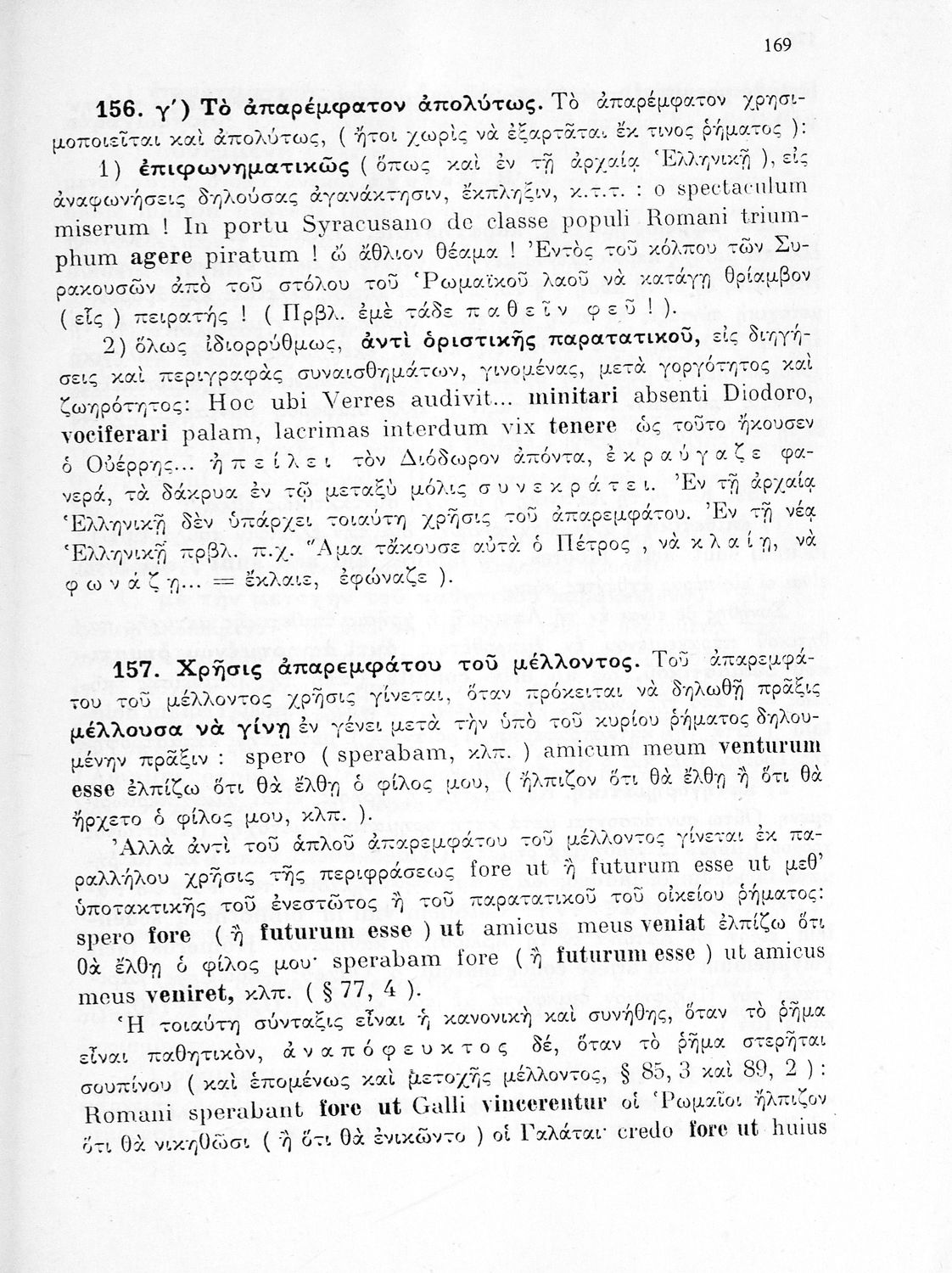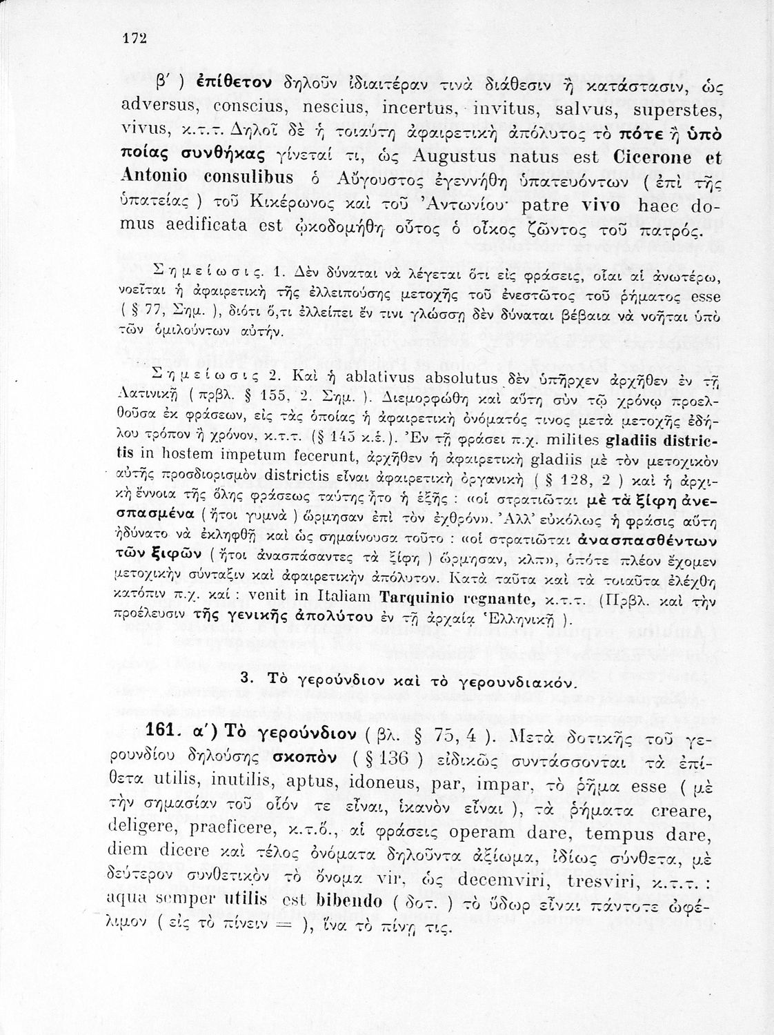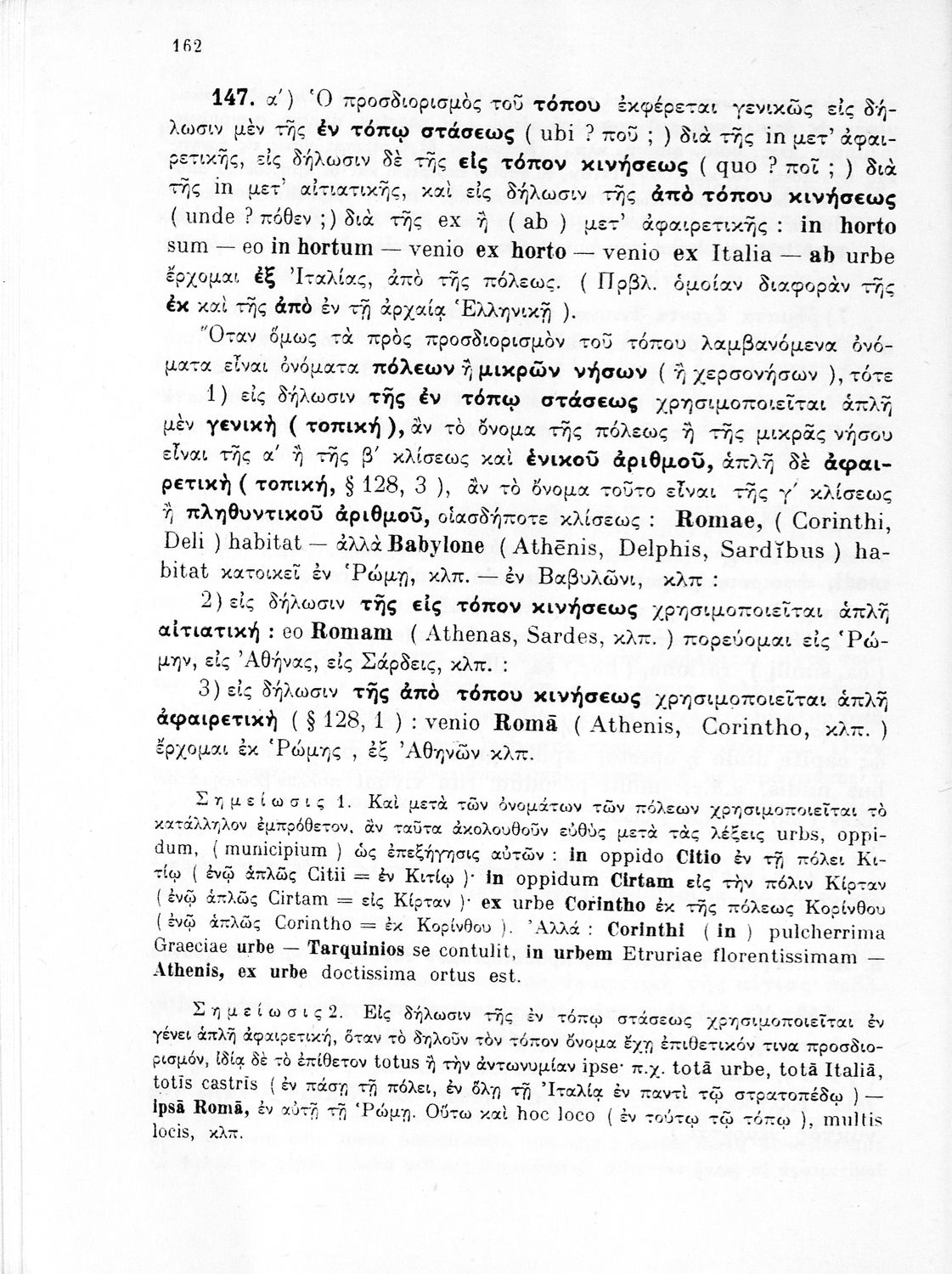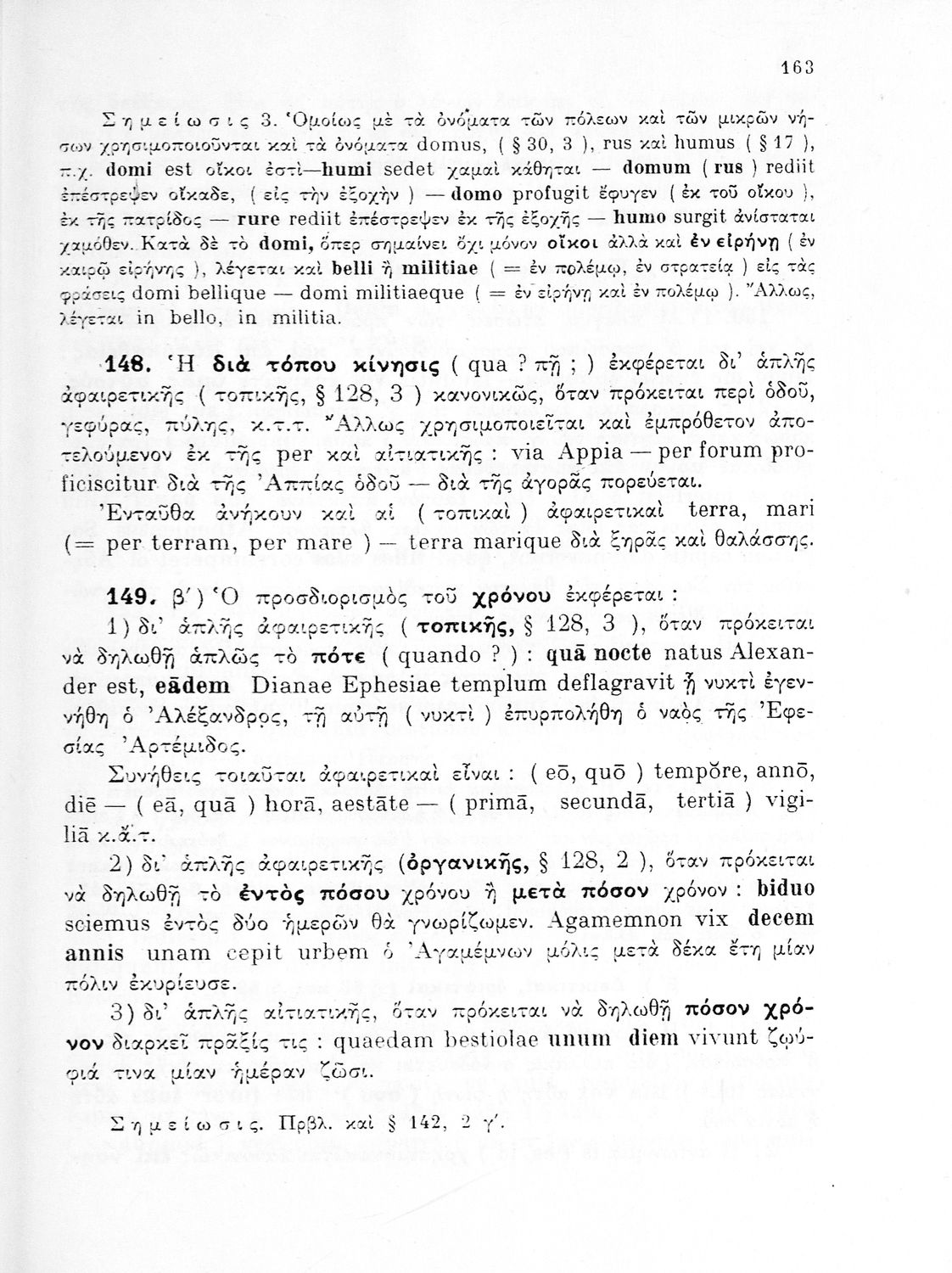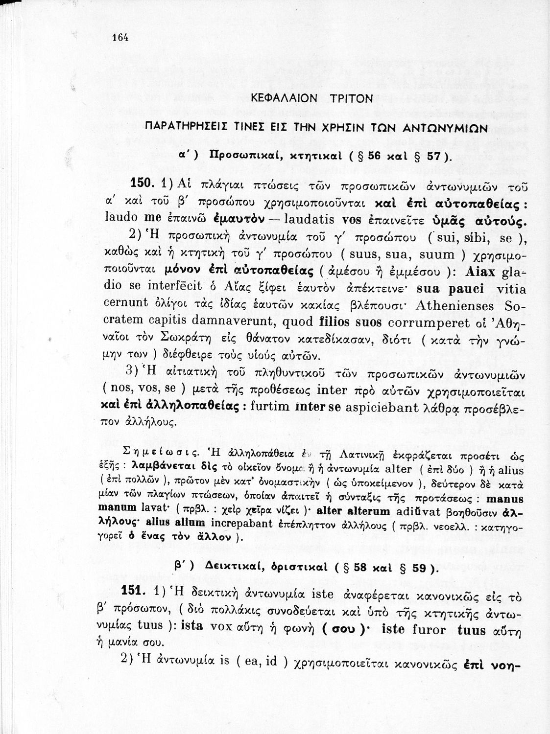 Σχολικό εγχειρίδιο Λατινικών Α΄, Β΄, Γ' Γυμνασίου που περιλαμβάνει γραμματική και συντακτικό και είναι χωρισμένο σε φθογγολογικό, τυπολογικό και ετυμολογικό μέρος.