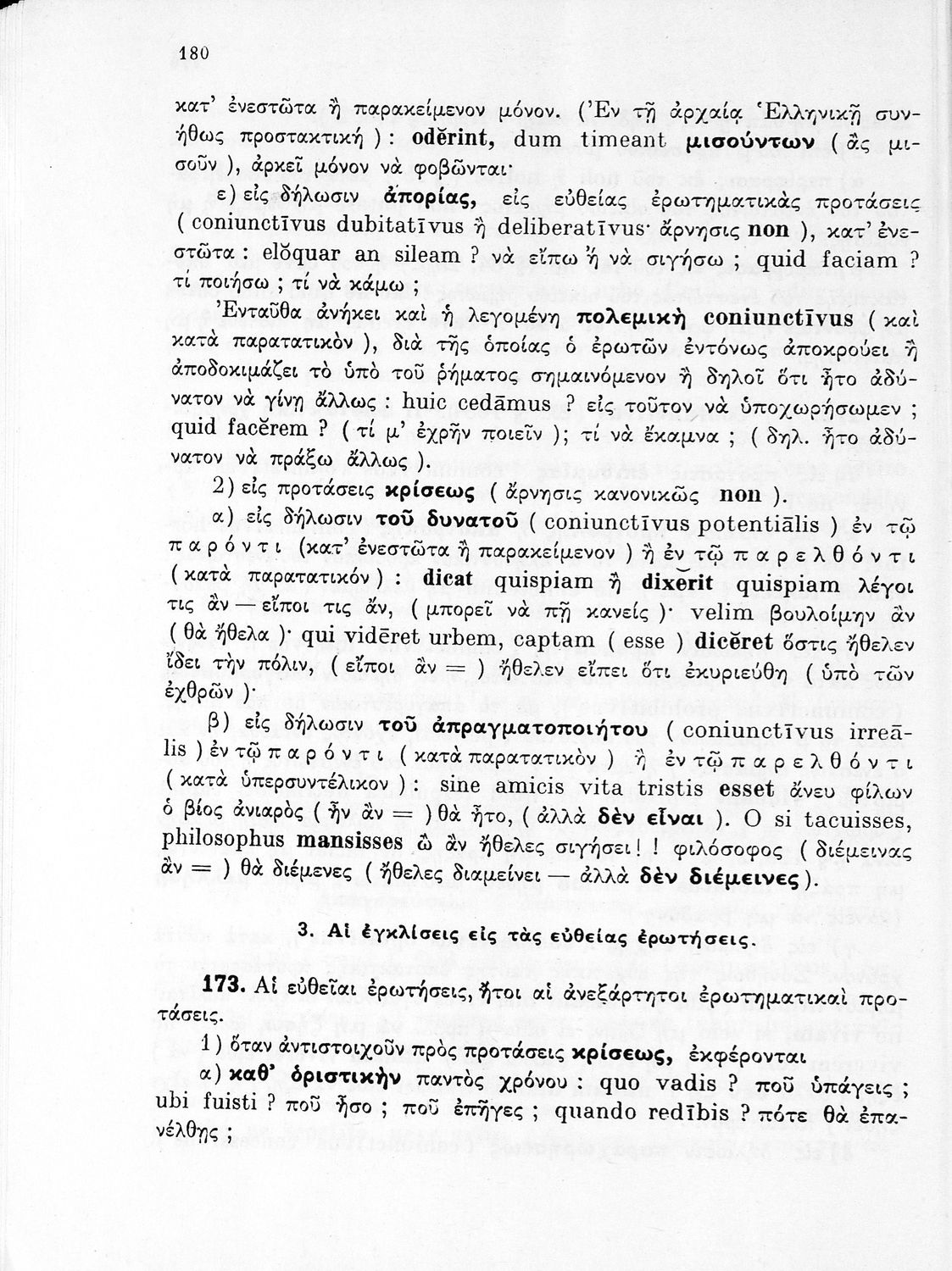 Σχολικό εγχειρίδιο Λατινικών Α΄, Β΄, Γ' Γυμνασίου που περιλαμβάνει γραμματική και συντακτικό και είναι χωρισμένο σε φθογγολογικό, τυπολογικό και ετυμολογικό μέρος.