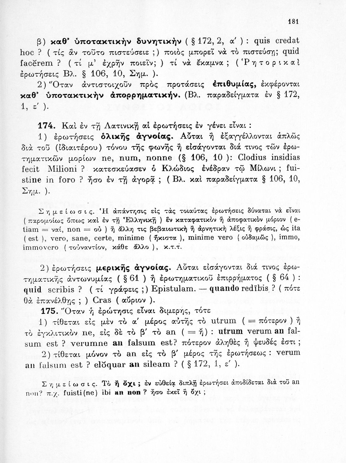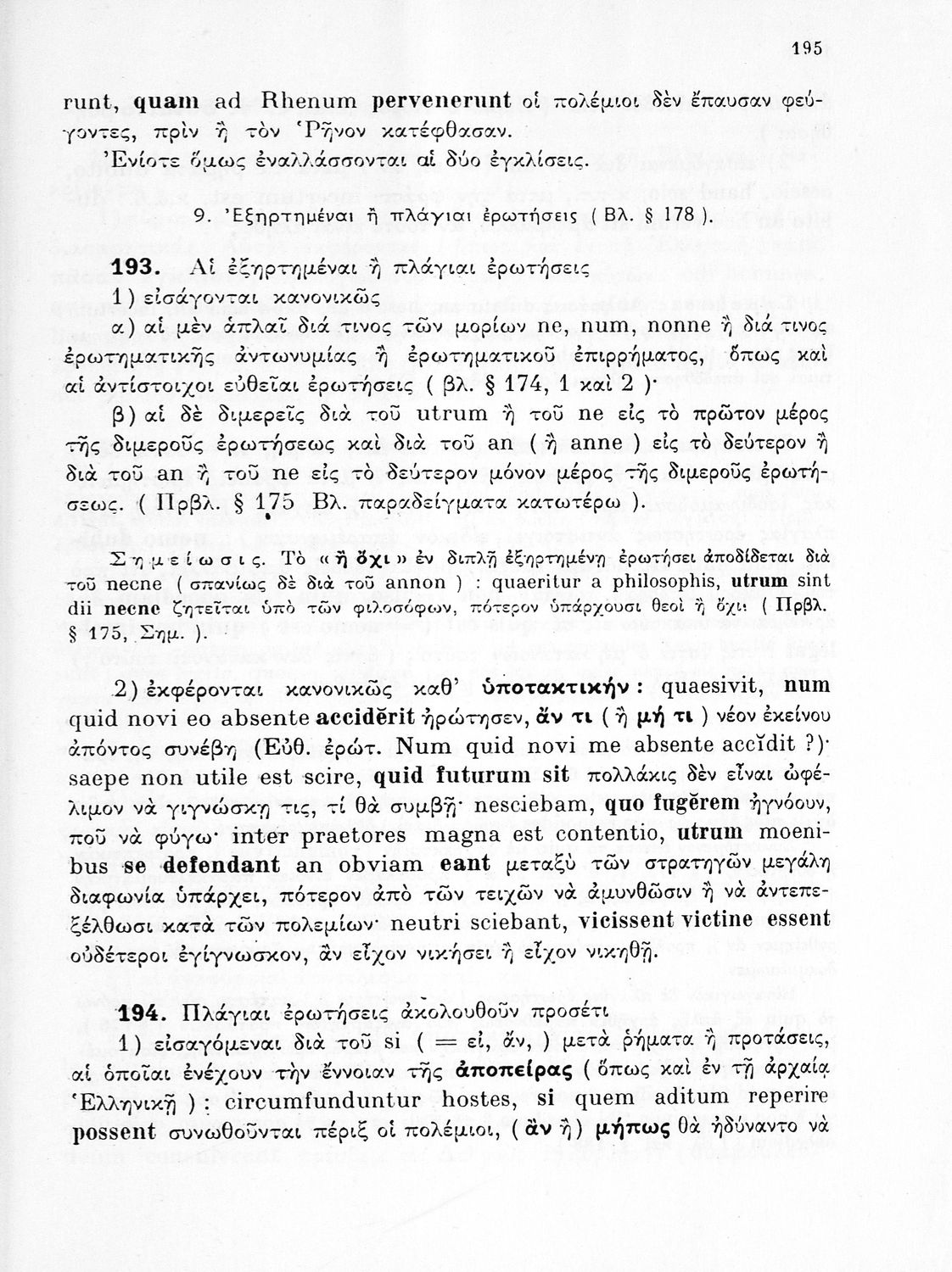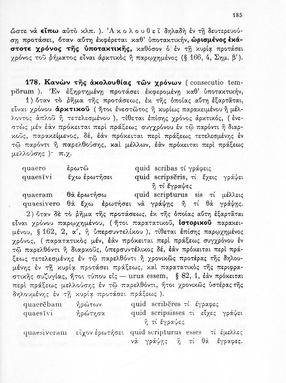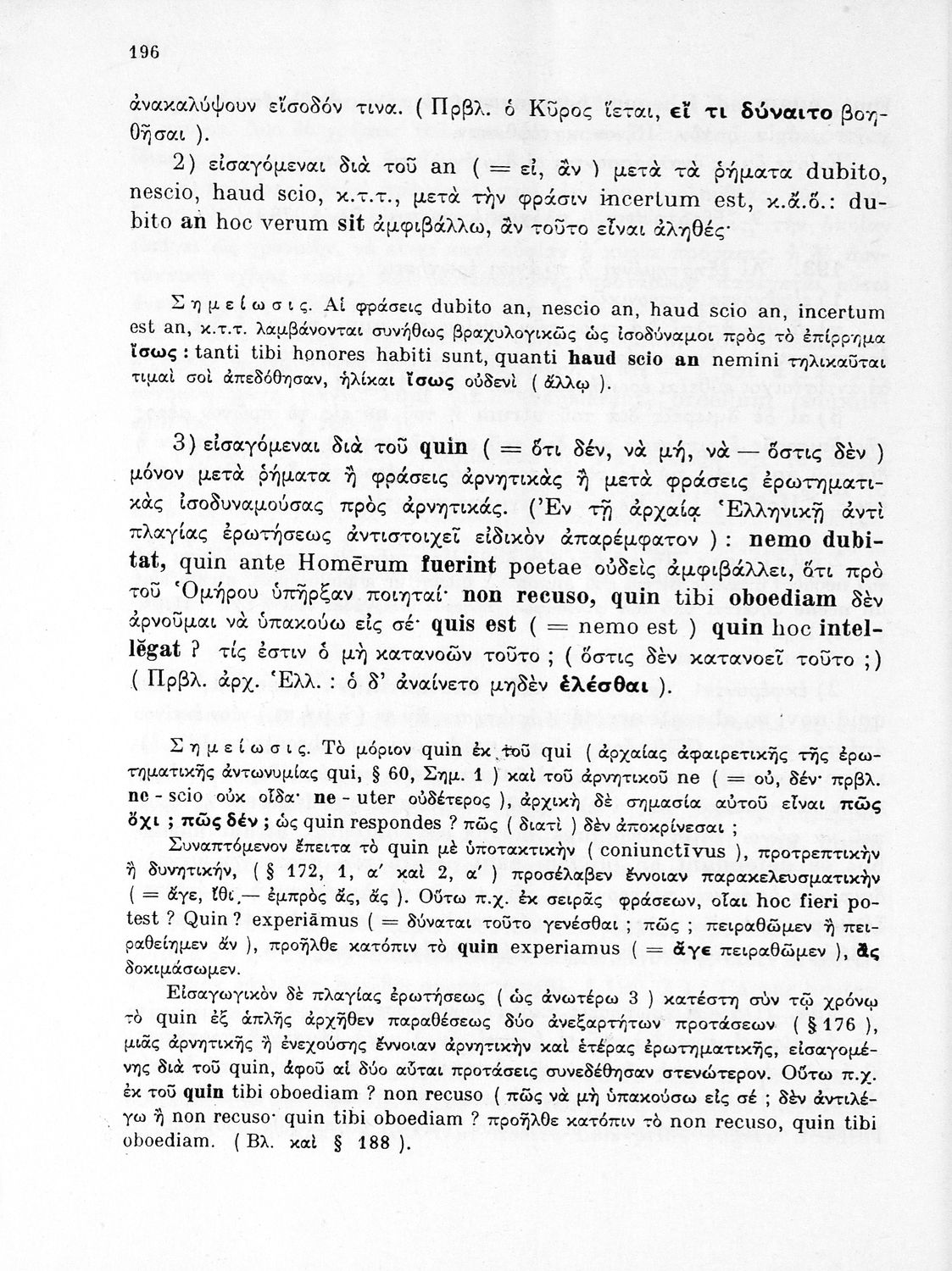 Σχολικό εγχειρίδιο Λατινικών Γυμνασίου που περιλαμβάνει γραμματική και συντακτικό και είναι χωρισμένο σε φθογγολογικό, τυπολογικό και ετυμολογικό μέρος.