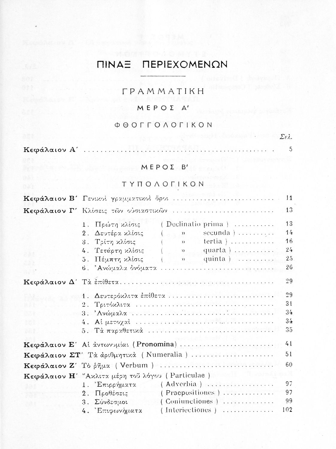Σχολικό εγχειρίδιο Λατινικών Δ΄ Γυμνασίου που περιλαμβάνει γραμματική και συντακτικό και είναι χωρισμένο σε φθογγολογικό, τυπολογικό και ετυμολογικό μέρος. Φέρει το σύμβολο της δικτατορίας.