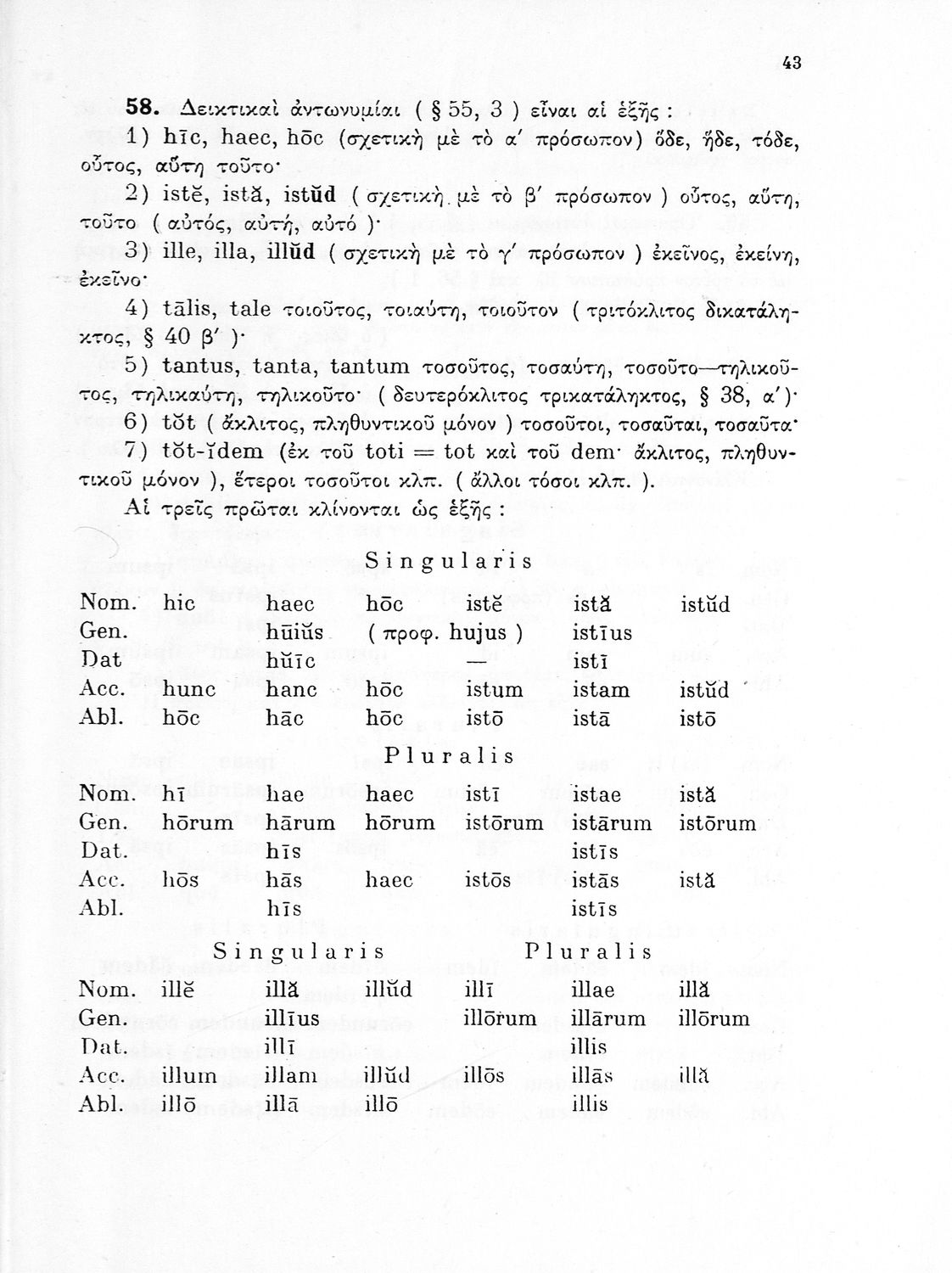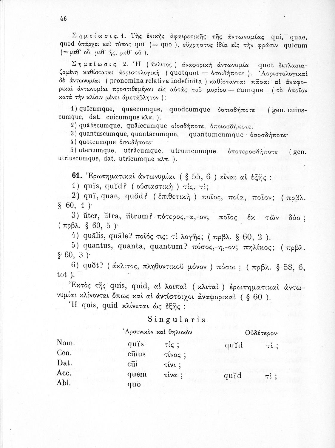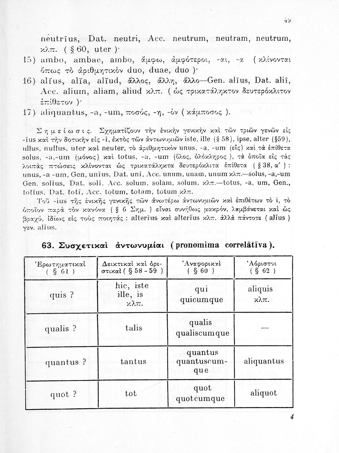 Σχολικό εγχειρίδιο Λατινικών Δ΄ Γυμνασίου που περιλαμβάνει γραμματική και συντακτικό και είναι χωρισμένο σε φθογγολογικό, τυπολογικό και ετυμολογικό μέρος. Φέρει το σύμβολο της δικτατορίας.