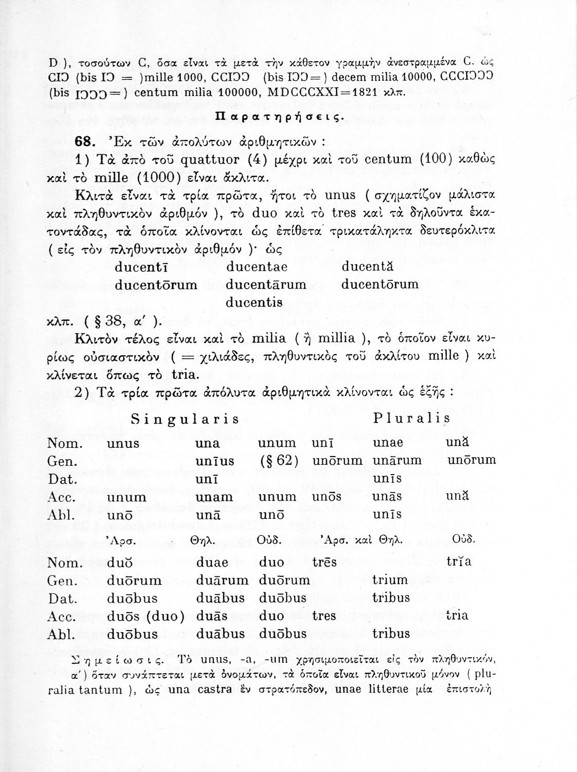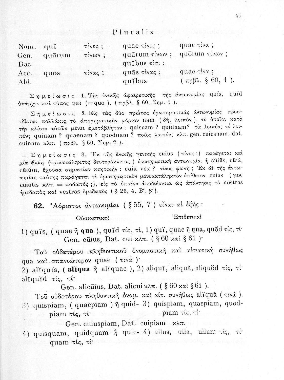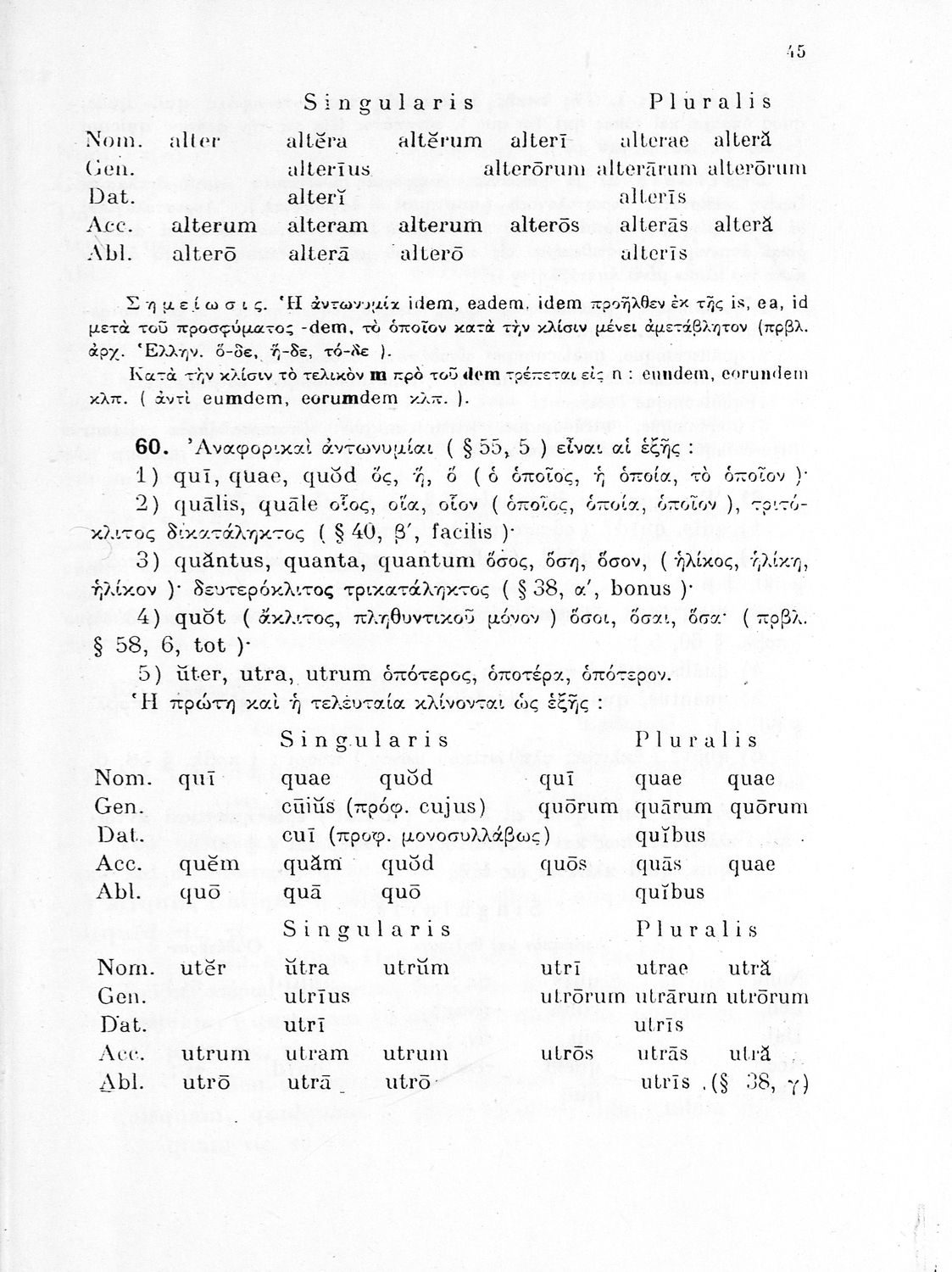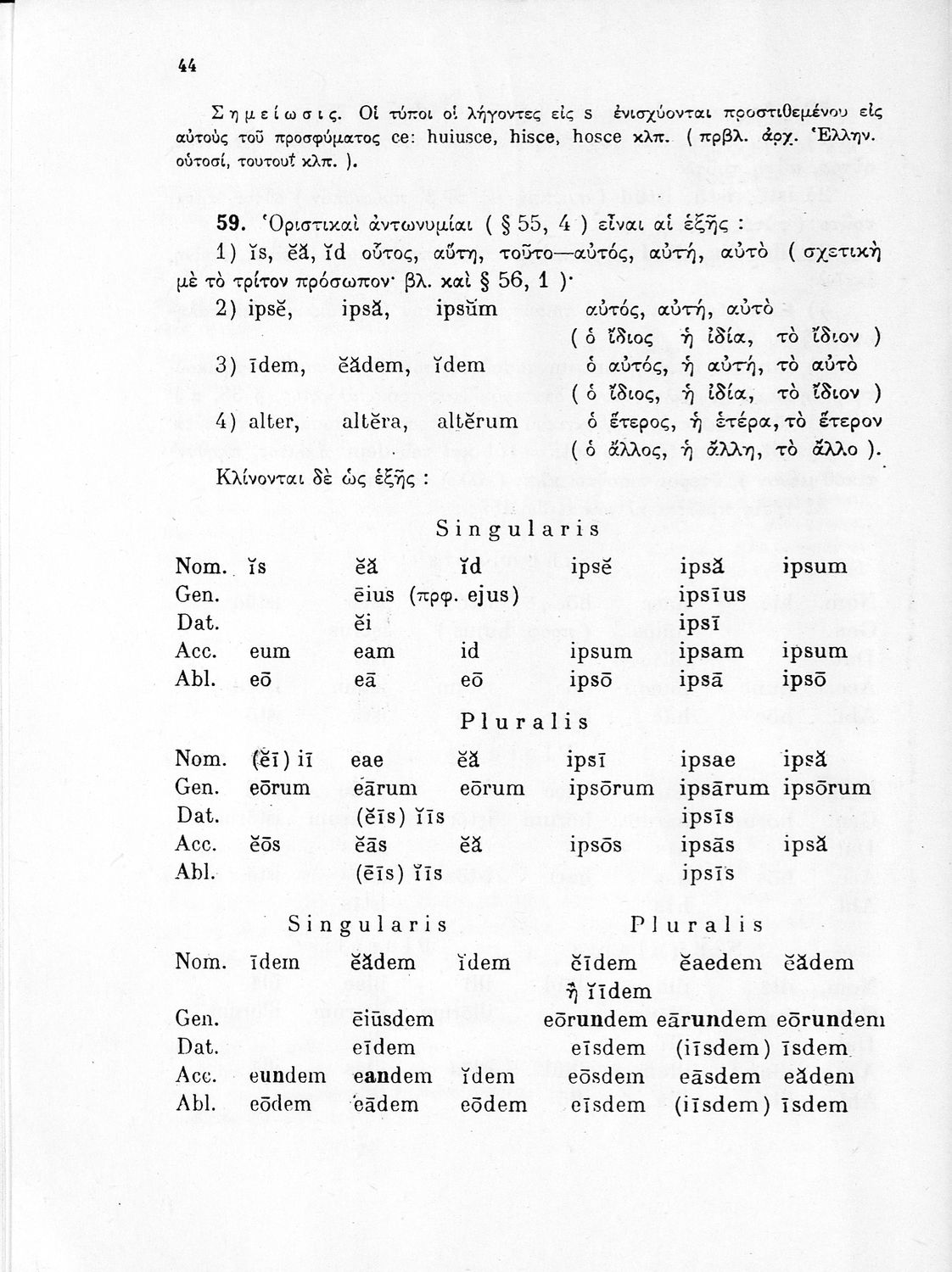 Σχολικό εγχειρίδιο Λατινικών Δ΄ Γυμνασίου που περιλαμβάνει γραμματική και συντακτικό και είναι χωρισμένο σε φθογγολογικό, τυπολογικό και ετυμολογικό μέρος. Φέρει το σύμβολο της δικτατορίας.