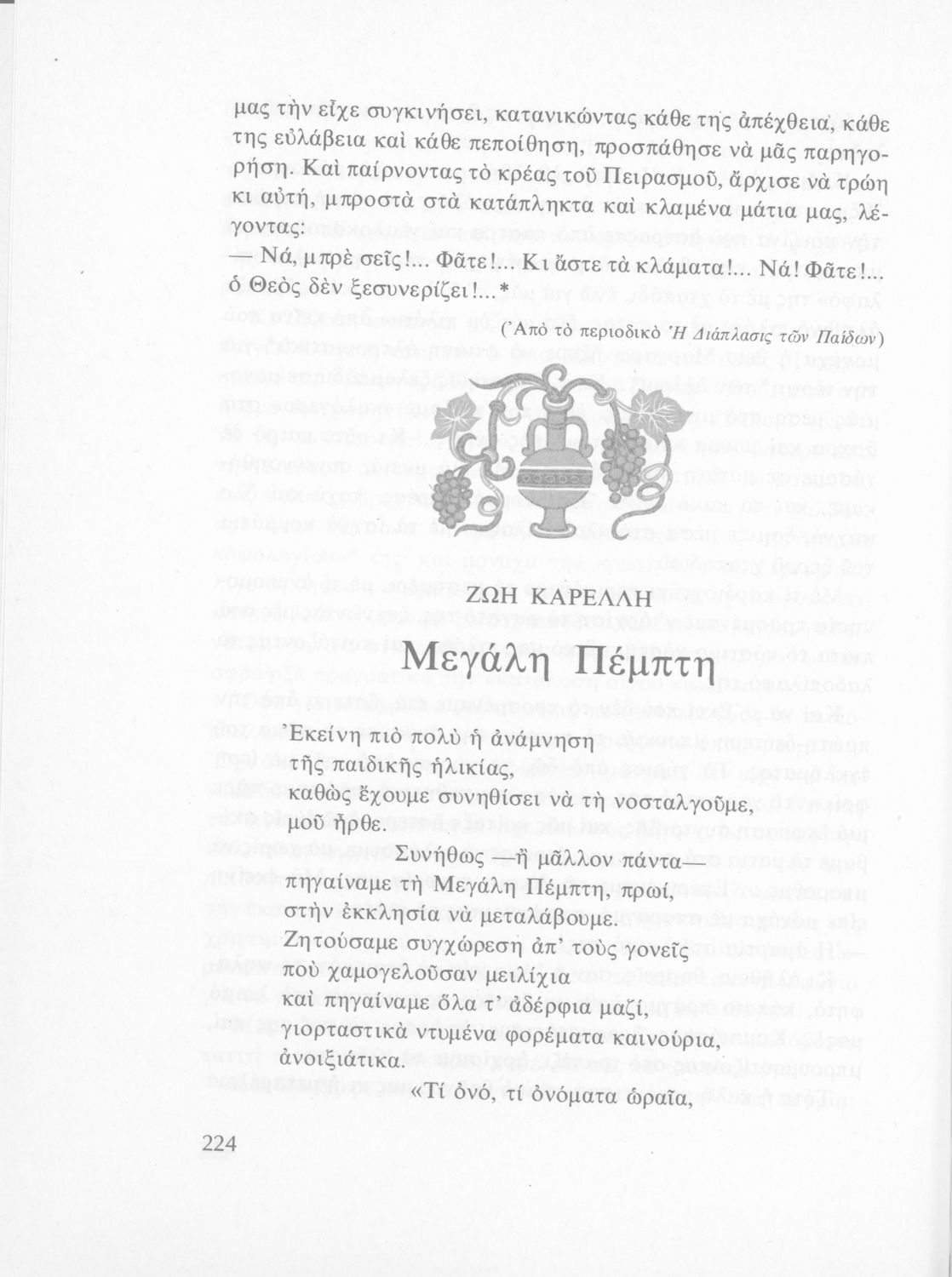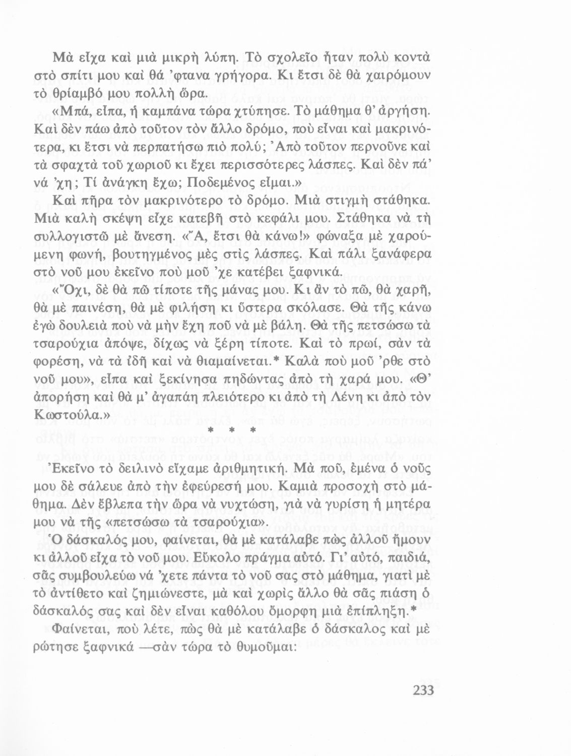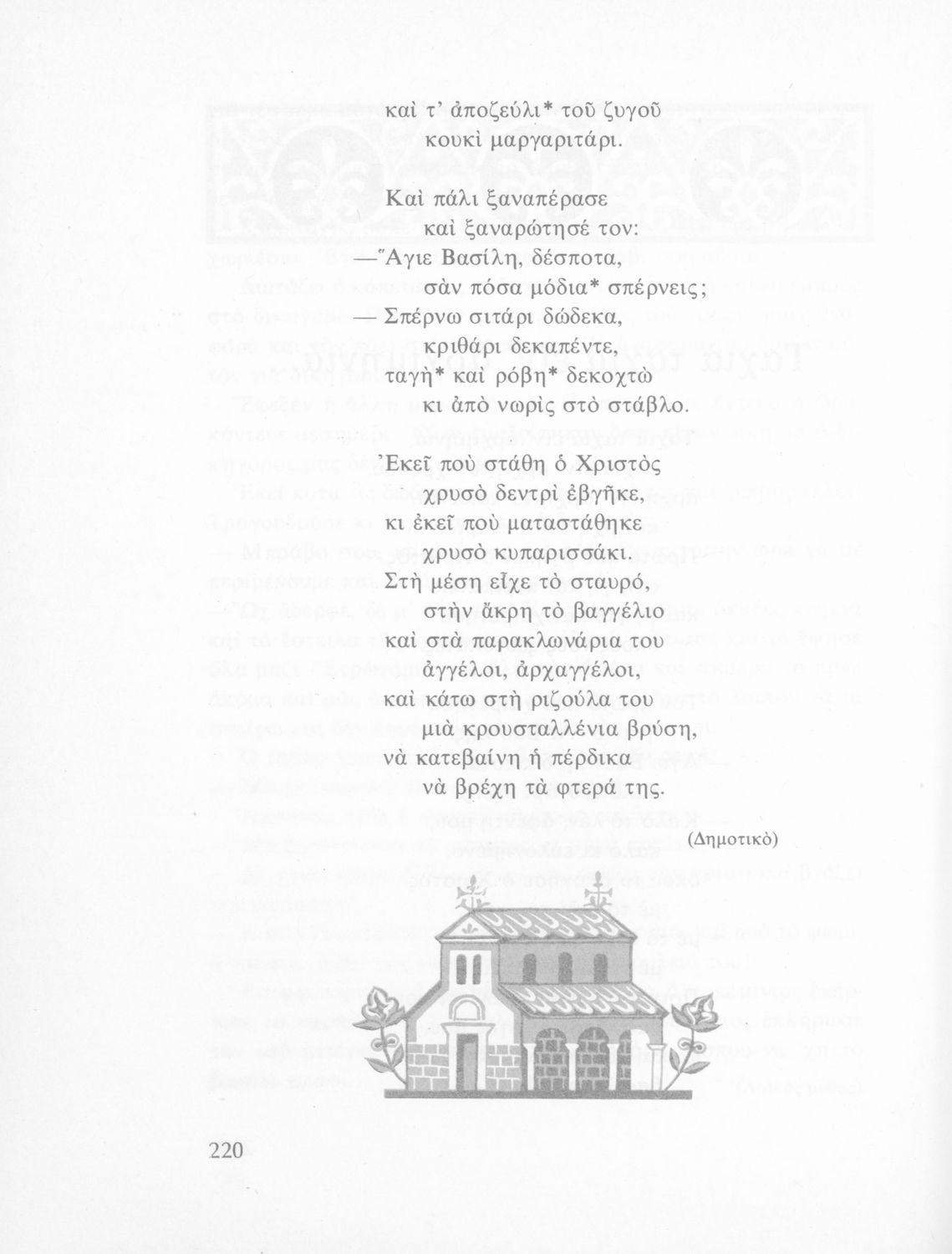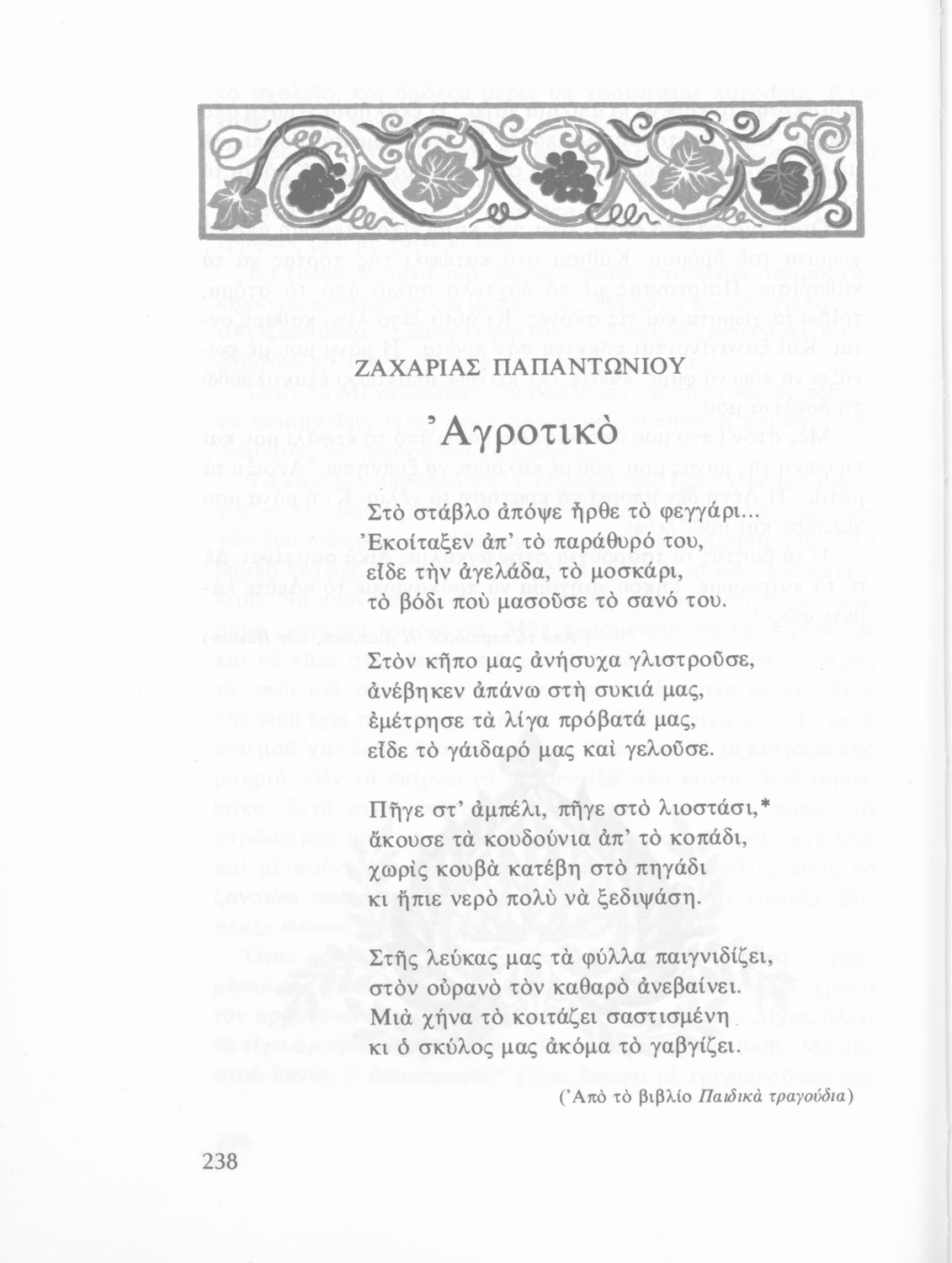 Αναγνωστικό για τις Ε' και ΣΤ΄ Δημοτικού που περιλαμβάνει πεζά και ποιήματα της Νέας Ελληνικής Λογοτεχνίας εμπνευσμένα από την καθημερινότητα των παιδιών και των οικογενειών τους, την ελληνική ιστορία, τις οικογενειακές στιγμές και εορτές, το παιχνίδι και την εθνική παράδοση, και τα δημοτικά και ακριτικά τραγούδια. Περιέχει και 5 κείμενα γραμμένα στην καθαρεύουσα με θέματα από τον κοινωνικό και εθνικό βίο, και ερμηνευτικό λεξιλόγιο.. Το βιβλίο είναι αφιερωμένο στη μνήμη της Πηνελόπης Δέλτα.