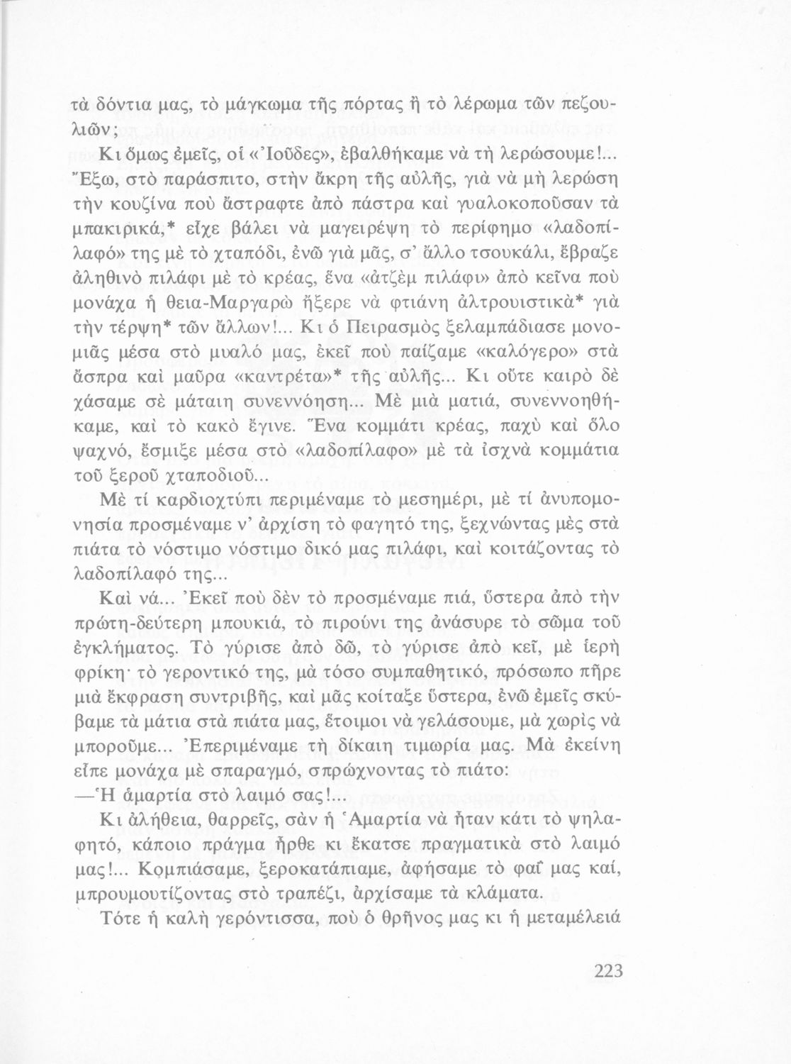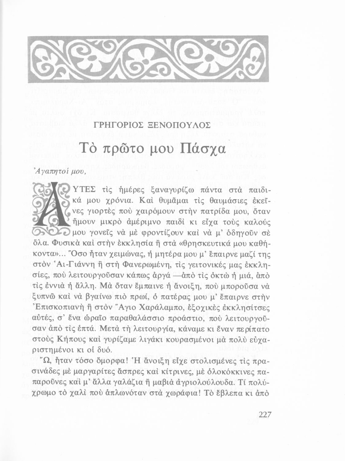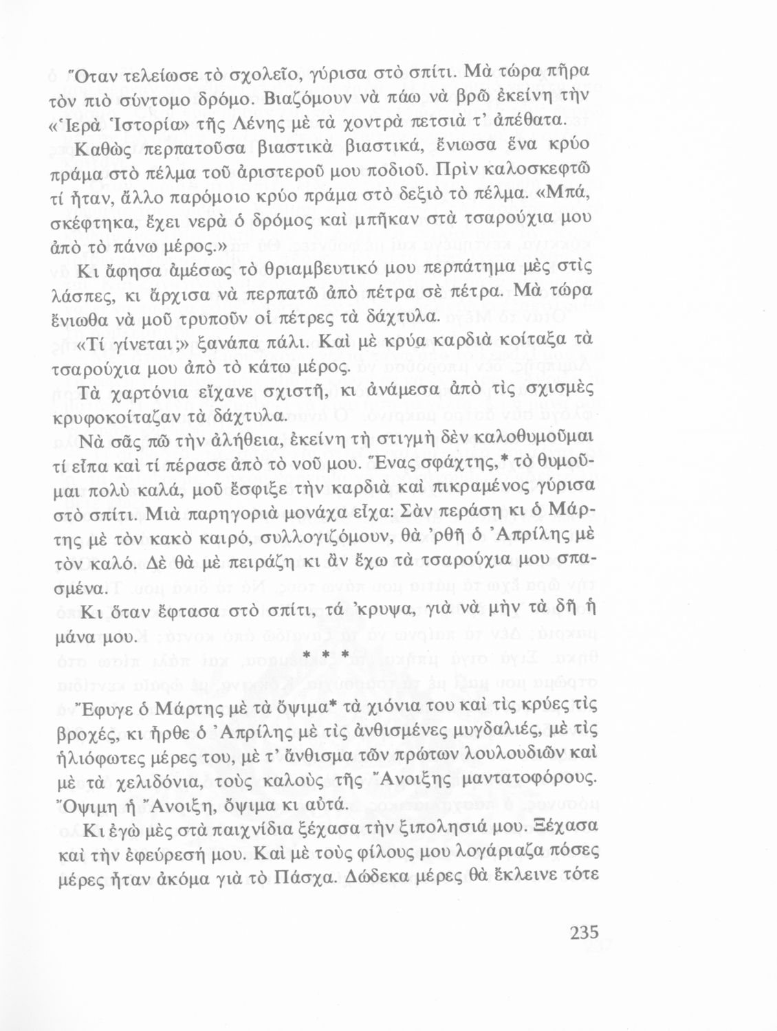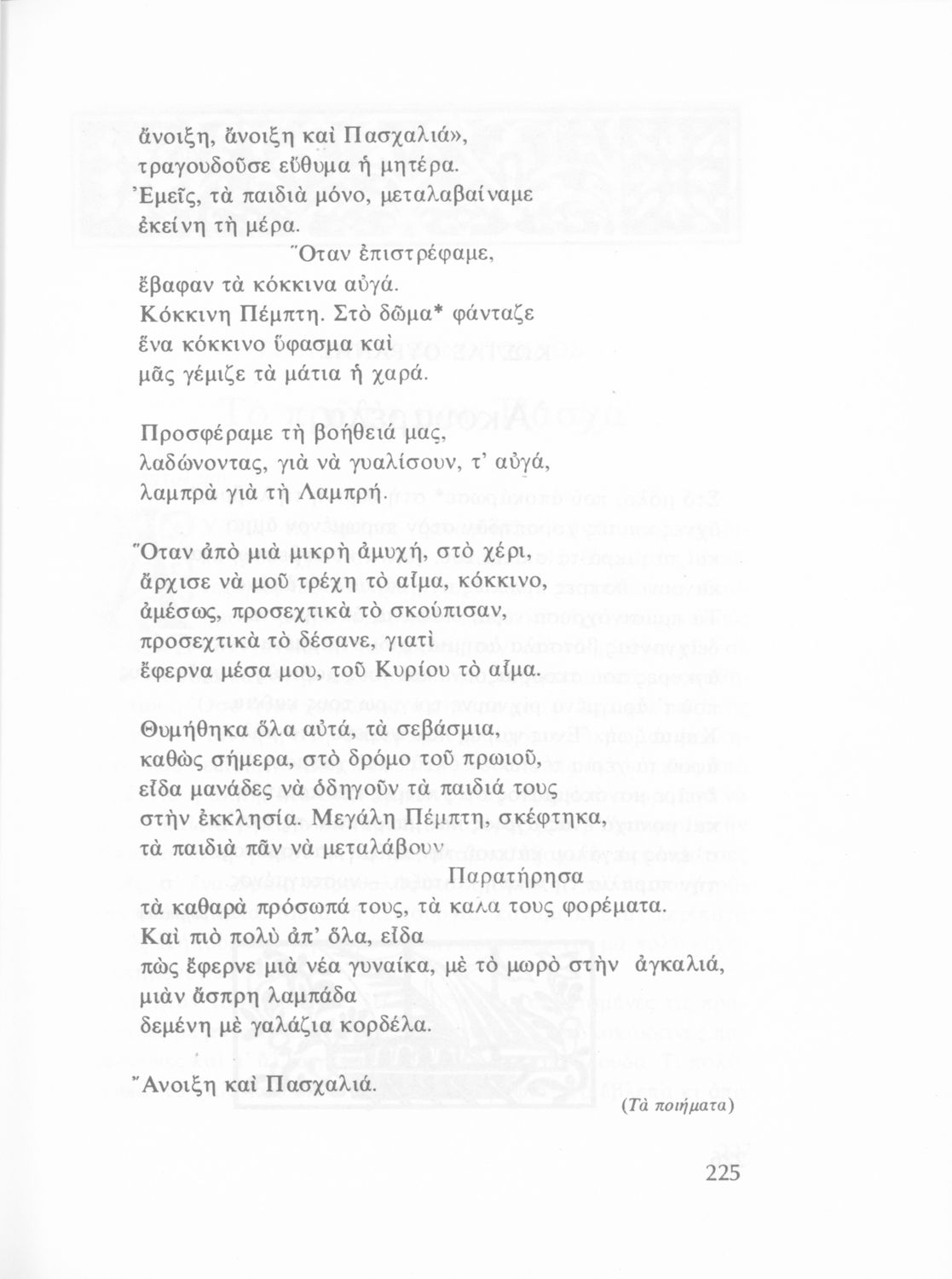 Αναγνωστικό για τις Ε' και ΣΤ΄ Δημοτικού που περιλαμβάνει πεζά και ποιήματα της Νέας Ελληνικής Λογοτεχνίας εμπνευσμένα από την καθημερινότητα των παιδιών και των οικογενειών τους, την ελληνική ιστορία, τις οικογενειακές στιγμές και εορτές, το παιχνίδι και την εθνική παράδοση, και τα δημοτικά και ακριτικά τραγούδια. Περιέχει και 5 κείμενα γραμμένα στην καθαρεύουσα με θέματα από τον κοινωνικό και εθνικό βίο, και ερμηνευτικό λεξιλόγιο.. Το βιβλίο είναι αφιερωμένο στη μνήμη της Πηνελόπης Δέλτα.