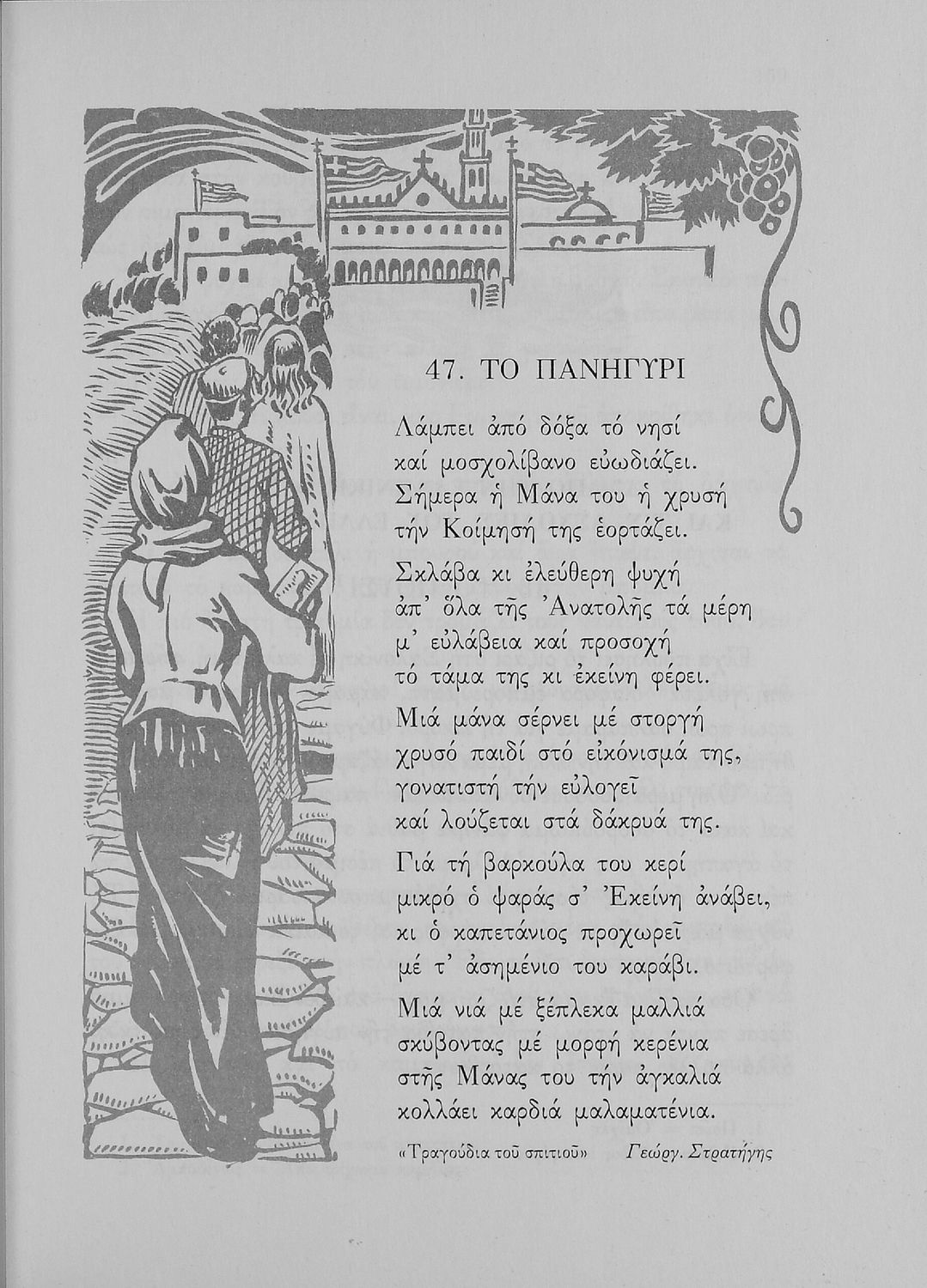 Αναγνωστικό Ε΄ Δημοτικού που περιέχει κείμενα εμπνευσμένα από την εθνική, κοινωνική και οικογενειακή ζωή και την ελληνική φύση, μυθολογία και ιστορία.