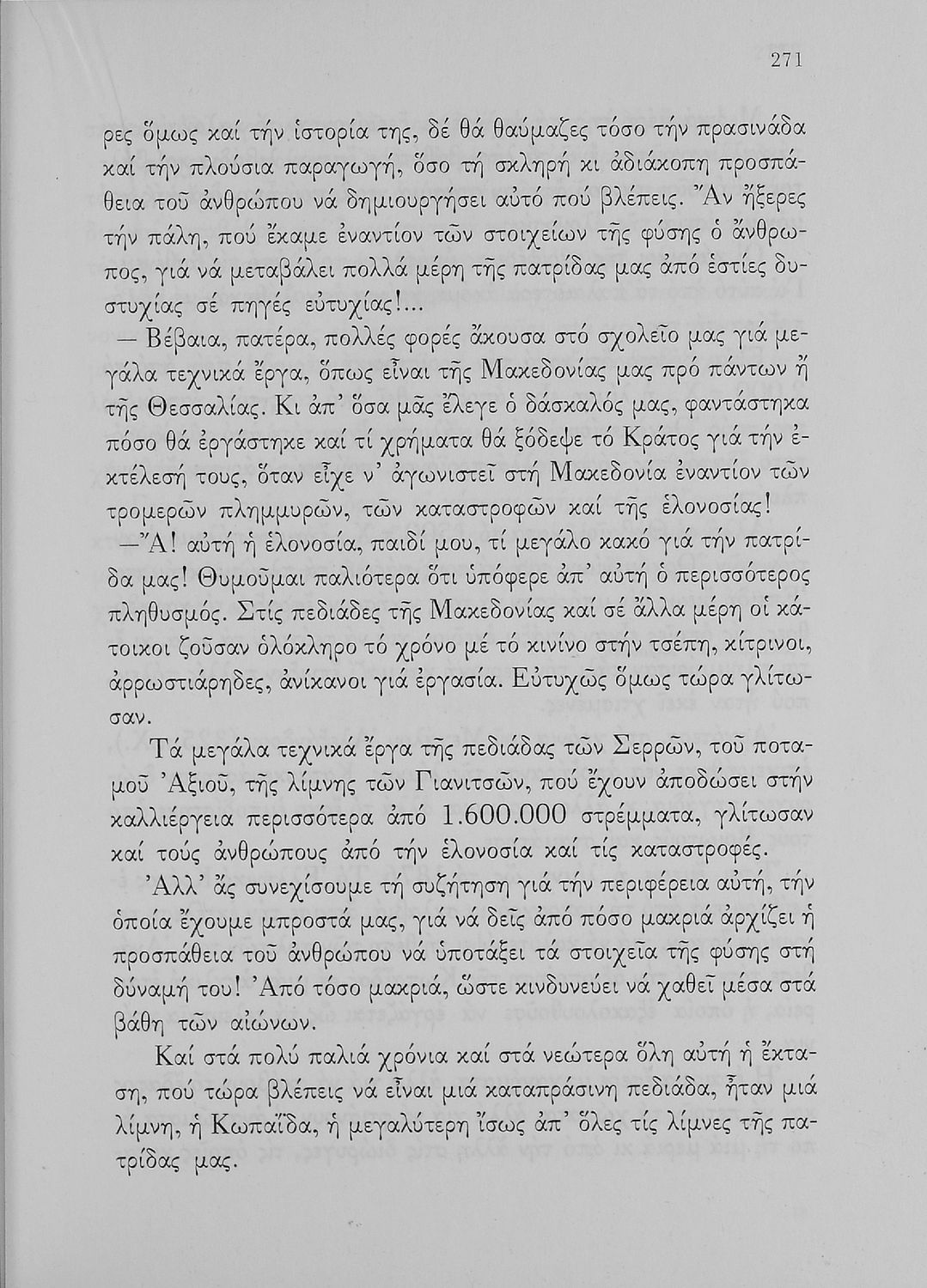 Αναγνωστικό Ε΄ Δημοτικού που περιέχει κείμενα εμπνευσμένα από την εθνική, κοινωνική και οικογενειακή ζωή και την ελληνική φύση, μυθολογία και ιστορία. Φέρει το σύμβολο της δικτατορίας.