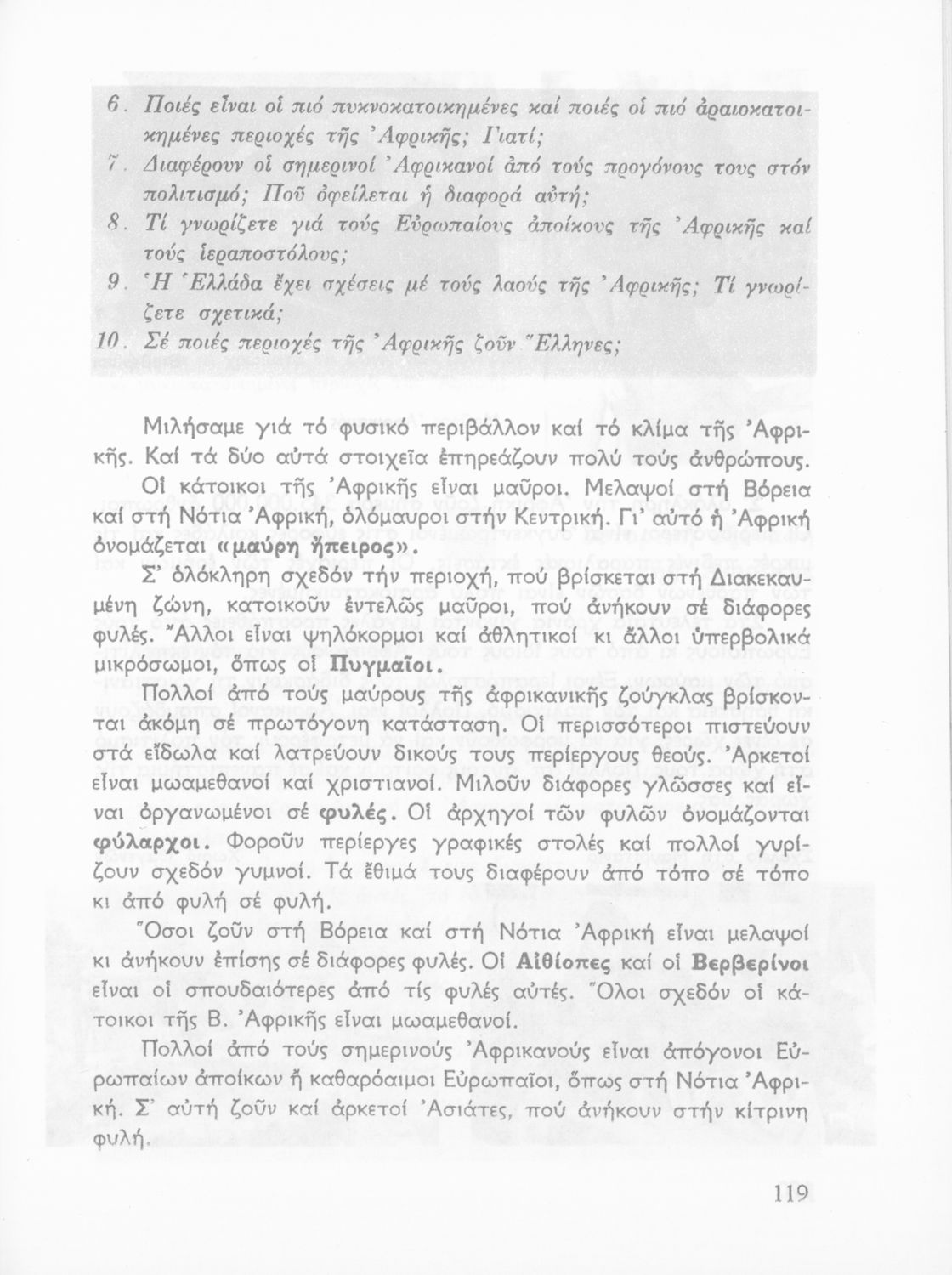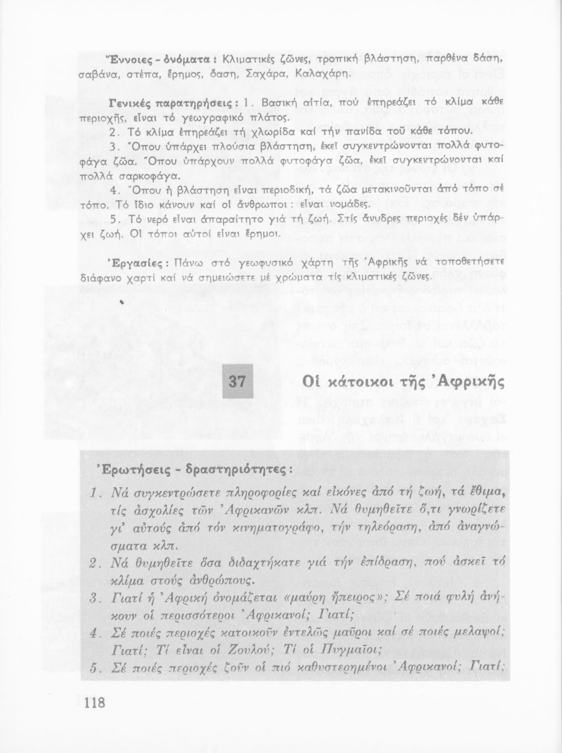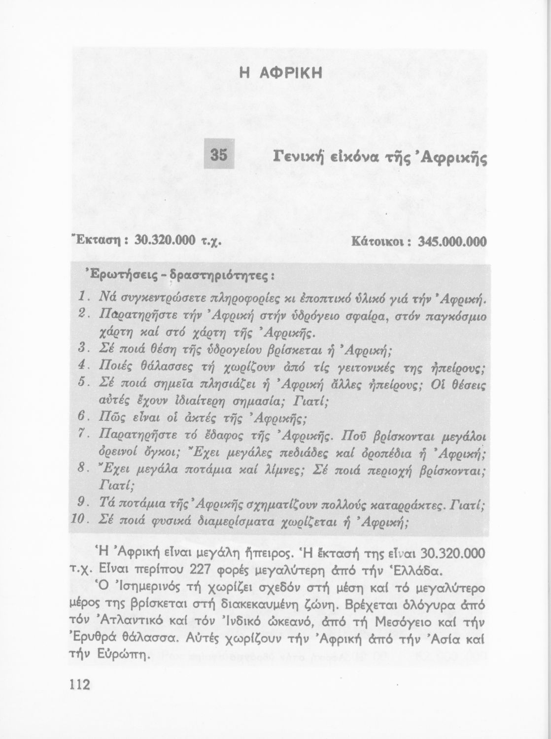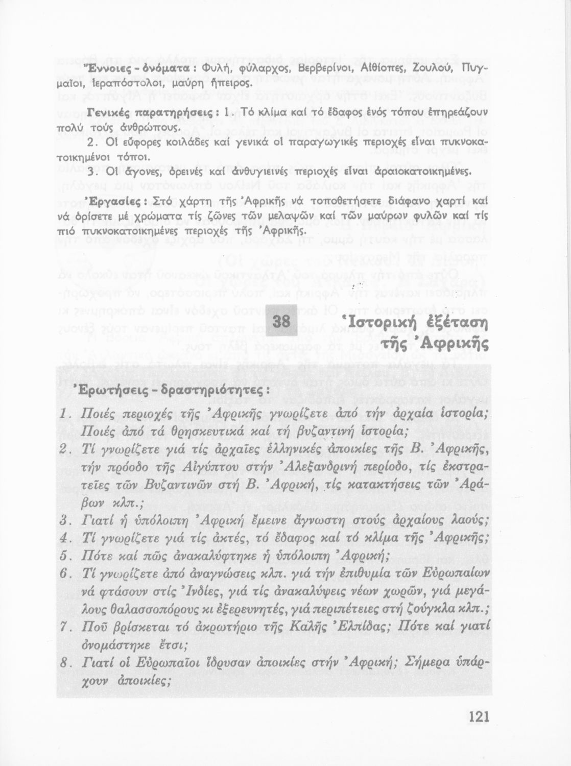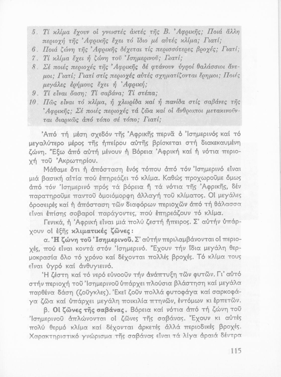 Σχολικό εγχειρίδιο Γεωγραφίας Ε΄ Δημοτικού που περιλαμβάνει εισαγωγή στη φυσική γεωγραφία εξετάζει την Ελλάδα και ενδεικτικές χώρες και περιοχές από τις πέντε ηπείρους, εκτός της Ευρώπης, από γεωφυσική και πολιτική άποψη.