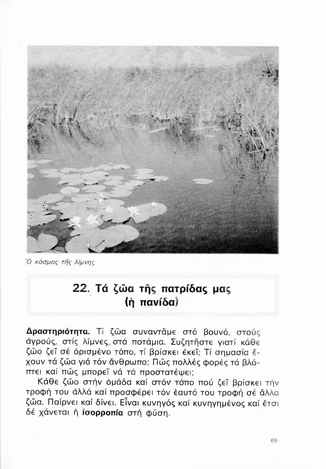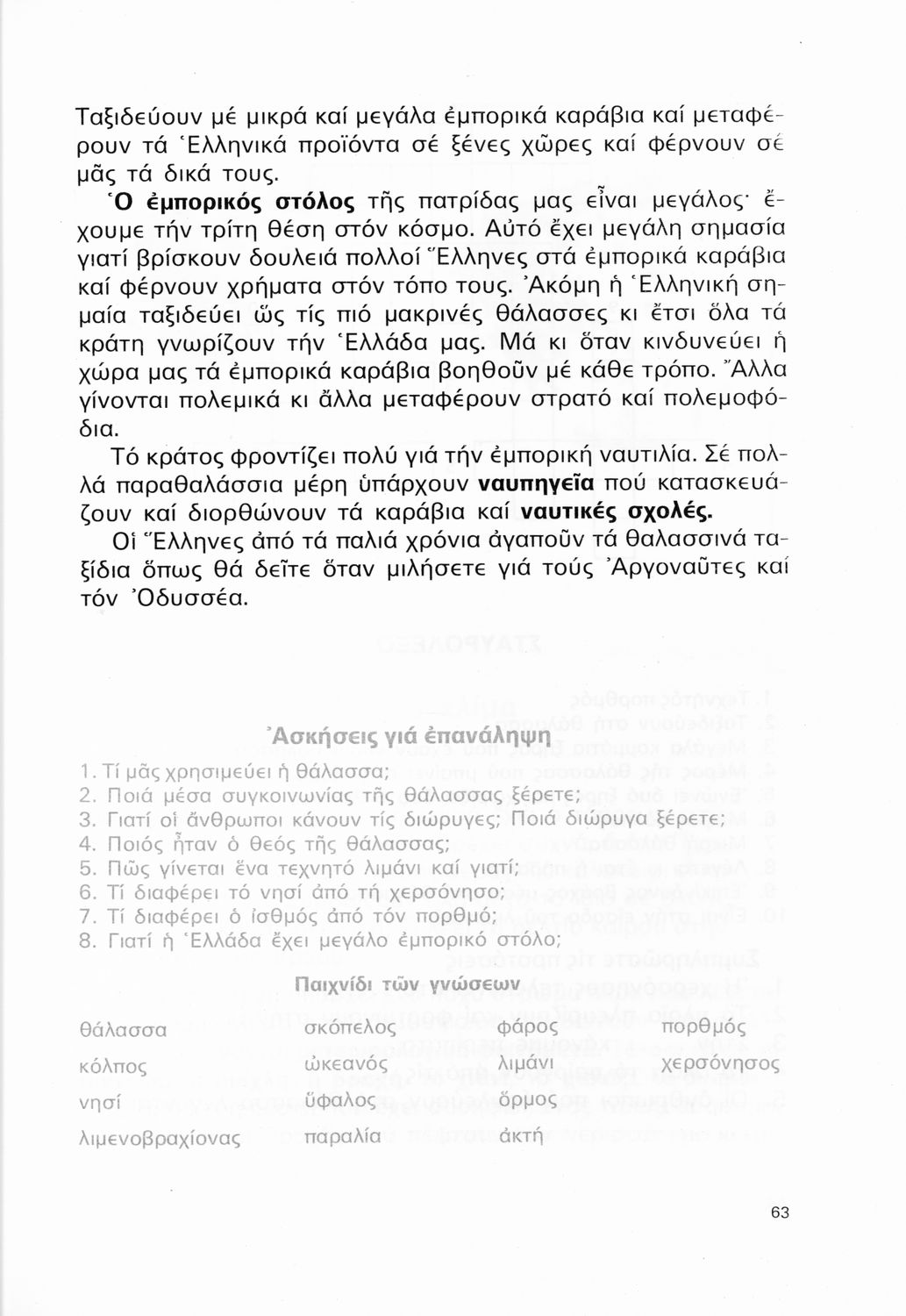 Παρουσίαση περιεχομένου: Σχολικό εγχειρίδιο Γεωγραφίας για τις Γ΄ και Δ΄ Δημοτικού που περιλαμβάνει στοιχεία πατριδογνωσίας, και πολιτικής και οικονομικής γεωγραφίας. Περιέχει και ασκήσεις, σταυρόλεξα και ακροστιχίδες.