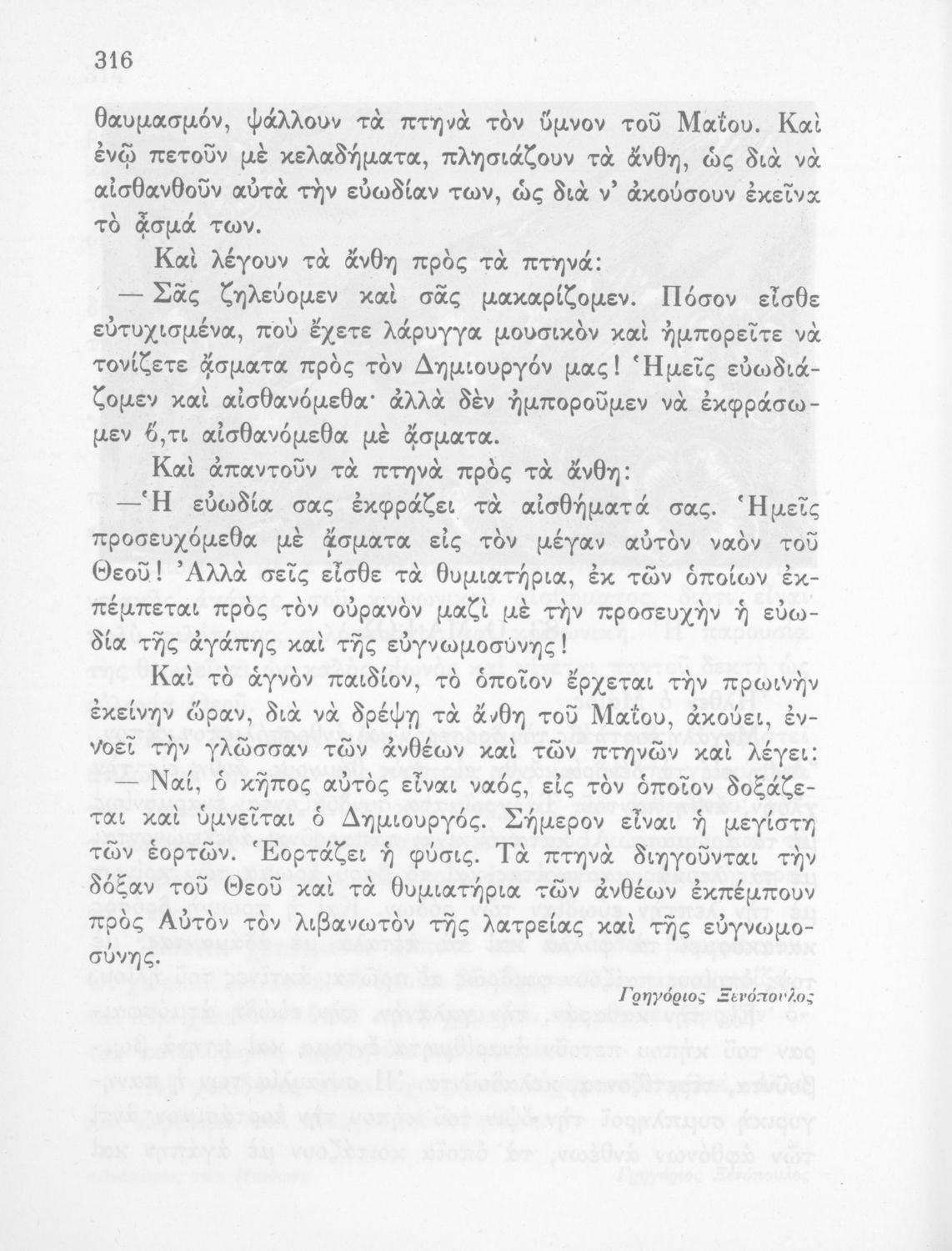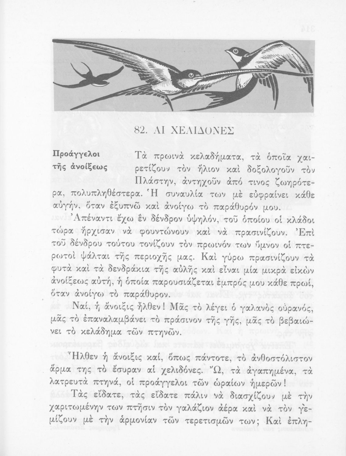 Αναγνωστικό Ε΄ Δημοτικού που περιέχει πεζά και ποιήματα εμπνευσμένα από τη θρησκευτική, εθνική, κοινωνική ζωή καθώς και από τις ασχολίες των Ελλήνων, την αρχαία και σύγχρονη ελληνική ιστορία και τον πολιτισμό.