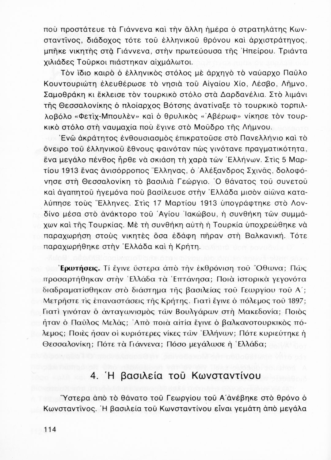 Παρουσίαση περιεχομένου: Σχολικό εγχειρίδιο Ιστορίας ΣΤ΄ Δημοτικού που καλύπτει την περίοδο από την άλωση της Κωνσταντινούπολης ως τη βασιλεία του Γεώργιου του Β' .