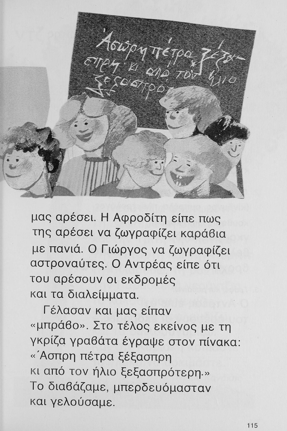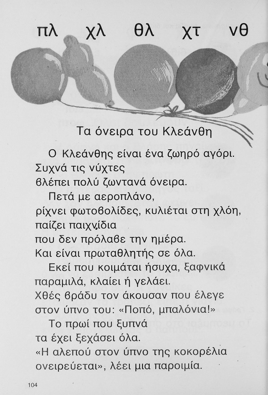 Αναγνωστικό Α' Δημοτικού που είναι βασισμένο στην αναλυτικοσυνθετική μέθοδο πρώτης ανάγνωσης όπως αυτή καθιερώθηκε με τη μεταρρύθμιση του 1982. Τα κείμενα αντλούν τη θεματολογίας τους από την καθημερινή ζωή.