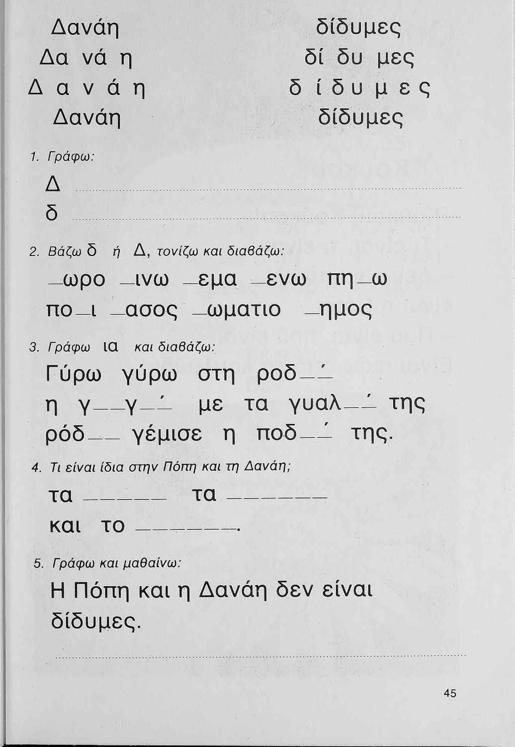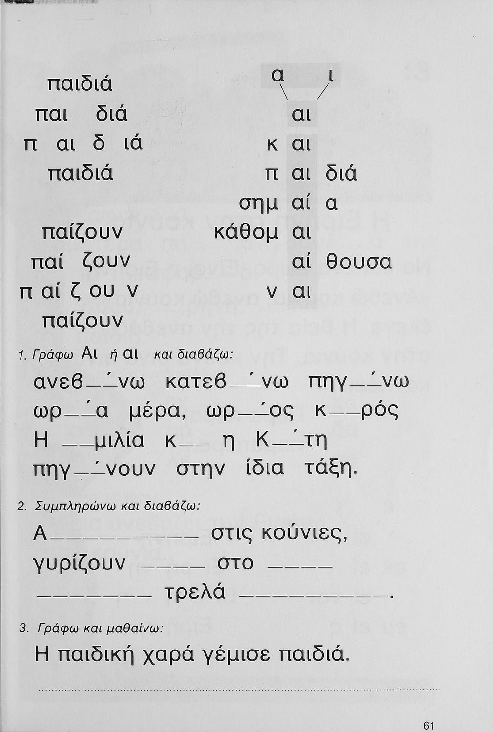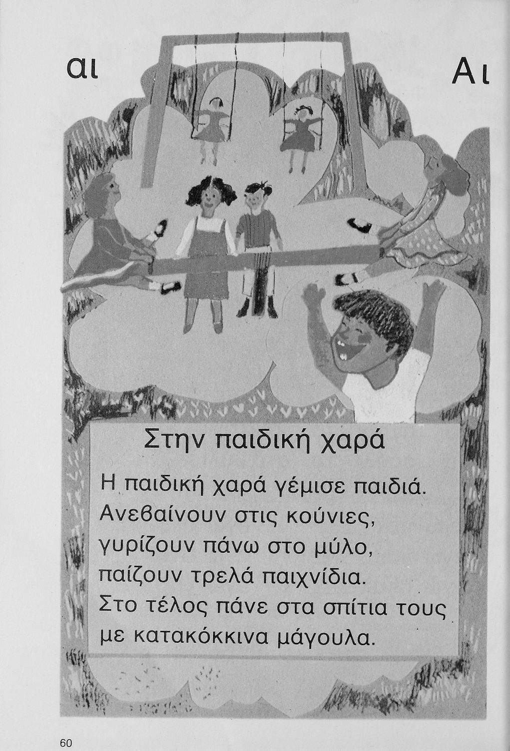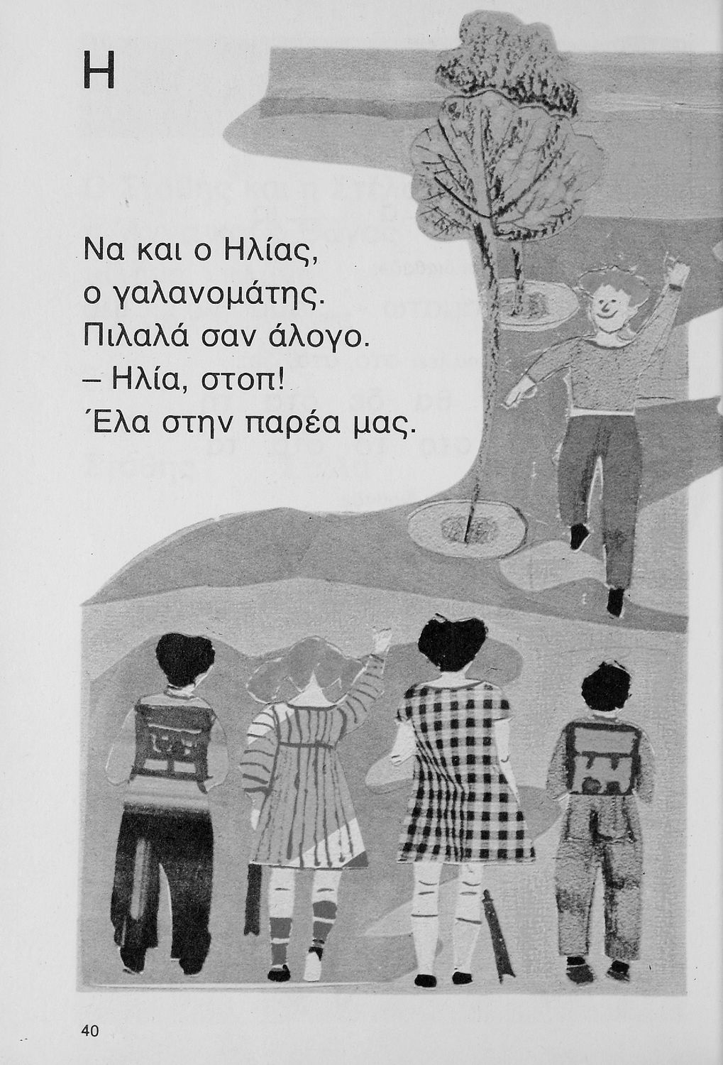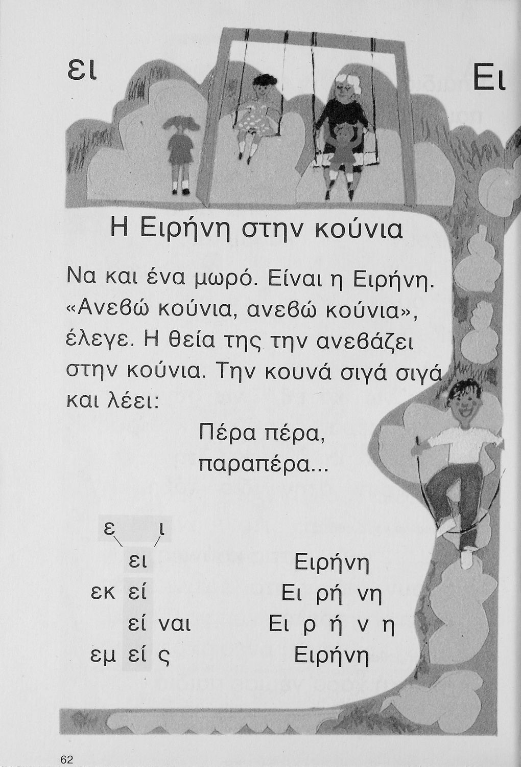 Αναγνωστικό Α' Δημοτικού που είναι βασισμένο στην αναλυτικοσυνθετική μέθοδο πρώτης ανάγνωσης όπως αυτή καθιερώθηκε με τη μεταρρύθμιση του 1982. Τα κείμενα αντλούν τη θεματολογίας τους από την καθημερινή ζωή.