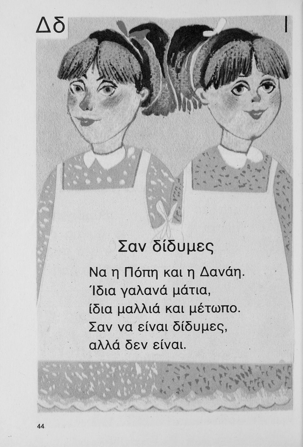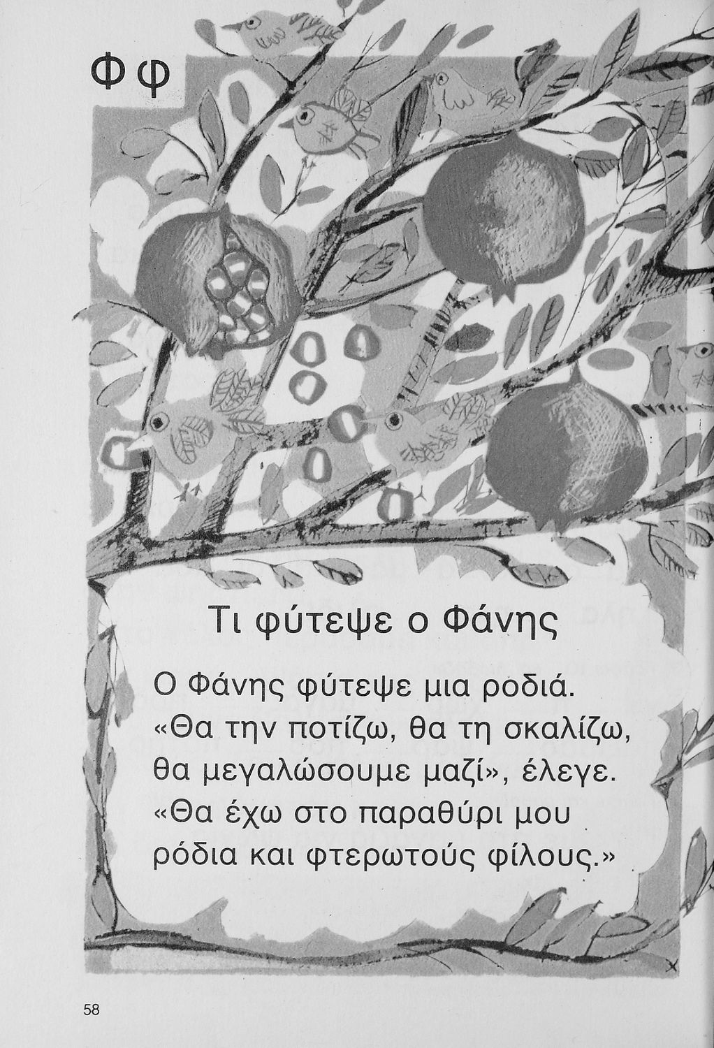 Παρουσίαση περιεχομένου: Αναγνωστικό Α' Δημοτικού που είναι βασισμένο στην αναλυτικοσυνθετική μέθοδο πρώτης ανάγνωσης όπως αυτή καθιερώθηκε με τη μεταρρύθμιση του 1982. Τα κείμενα αντλούν τη θεματολογίας τους από την καθημερινή ζωή.