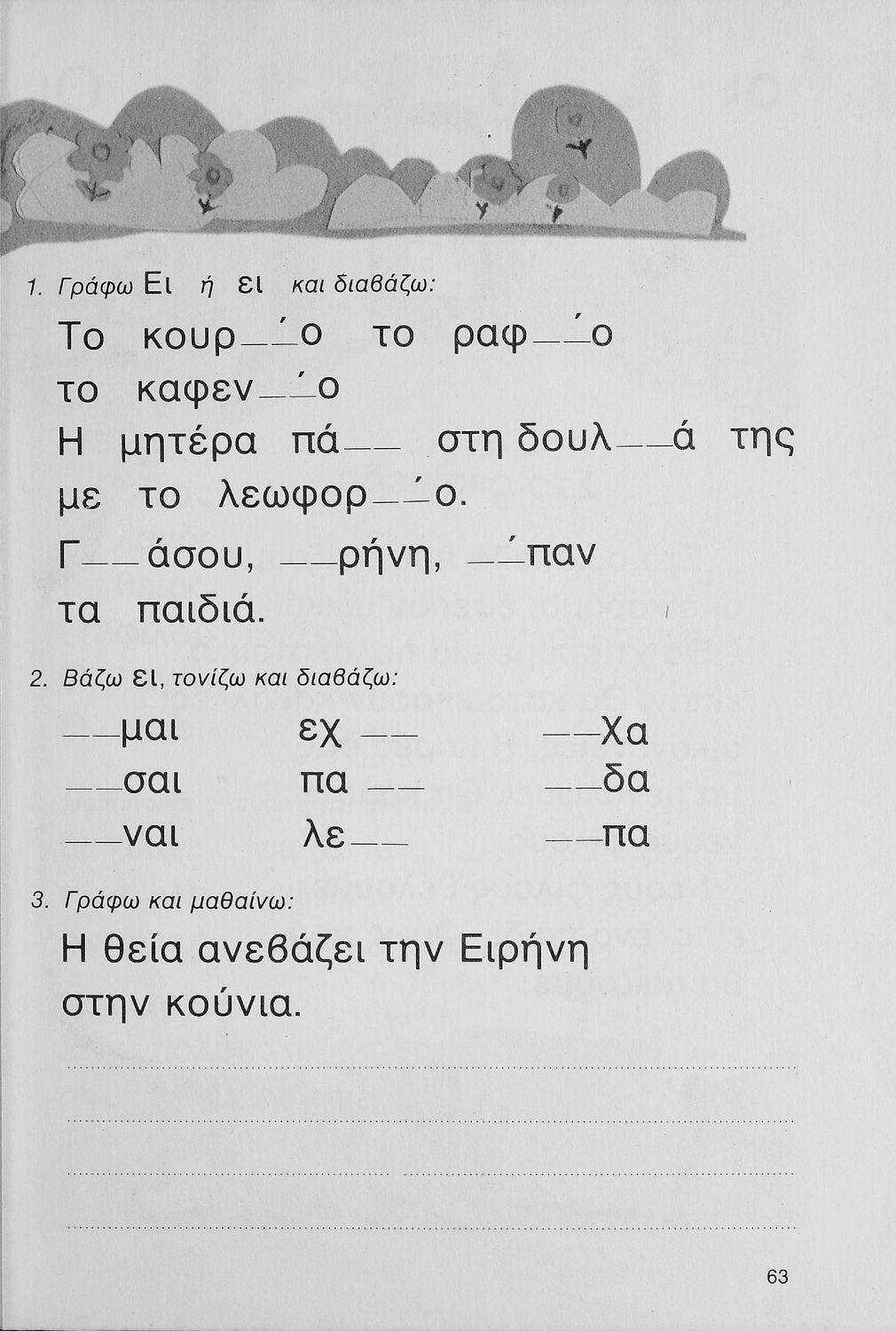 Αναγνωστικό Α' Δημοτικού που είναι βασισμένο στην αναλυτικοσυνθετική μέθοδο πρώτης ανάγνωσης όπως αυτή καθιερώθηκε με τη μεταρρύθμιση του 1982. Τα κείμενα αντλούν τη θεματολογίας τους από την καθημερινή ζωή.