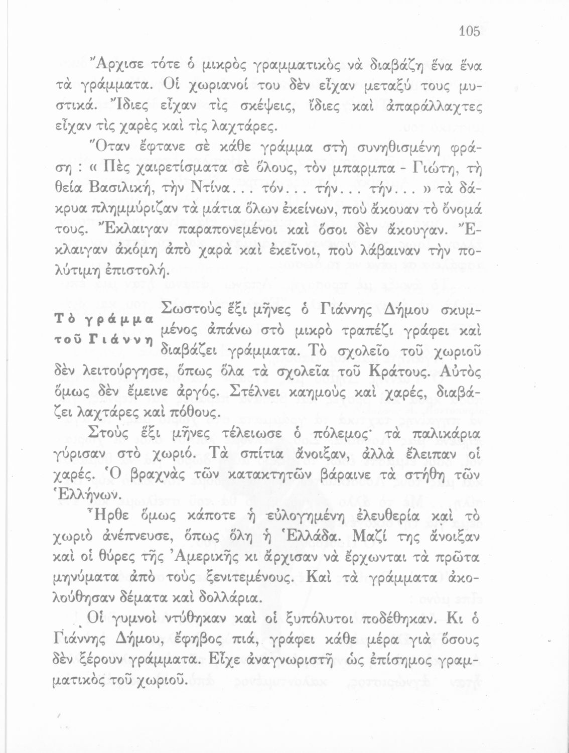 Αναγνωστικό Ε΄ Δημοτικού που περιέχει κείμενα εμπνευσμένα από την εθνική, κοινωνική και οικογενειακή ζωή και την ελληνική φύση, μυθολογία και ιστορία. Φέρει το σύμβολο της δικτατορίας.