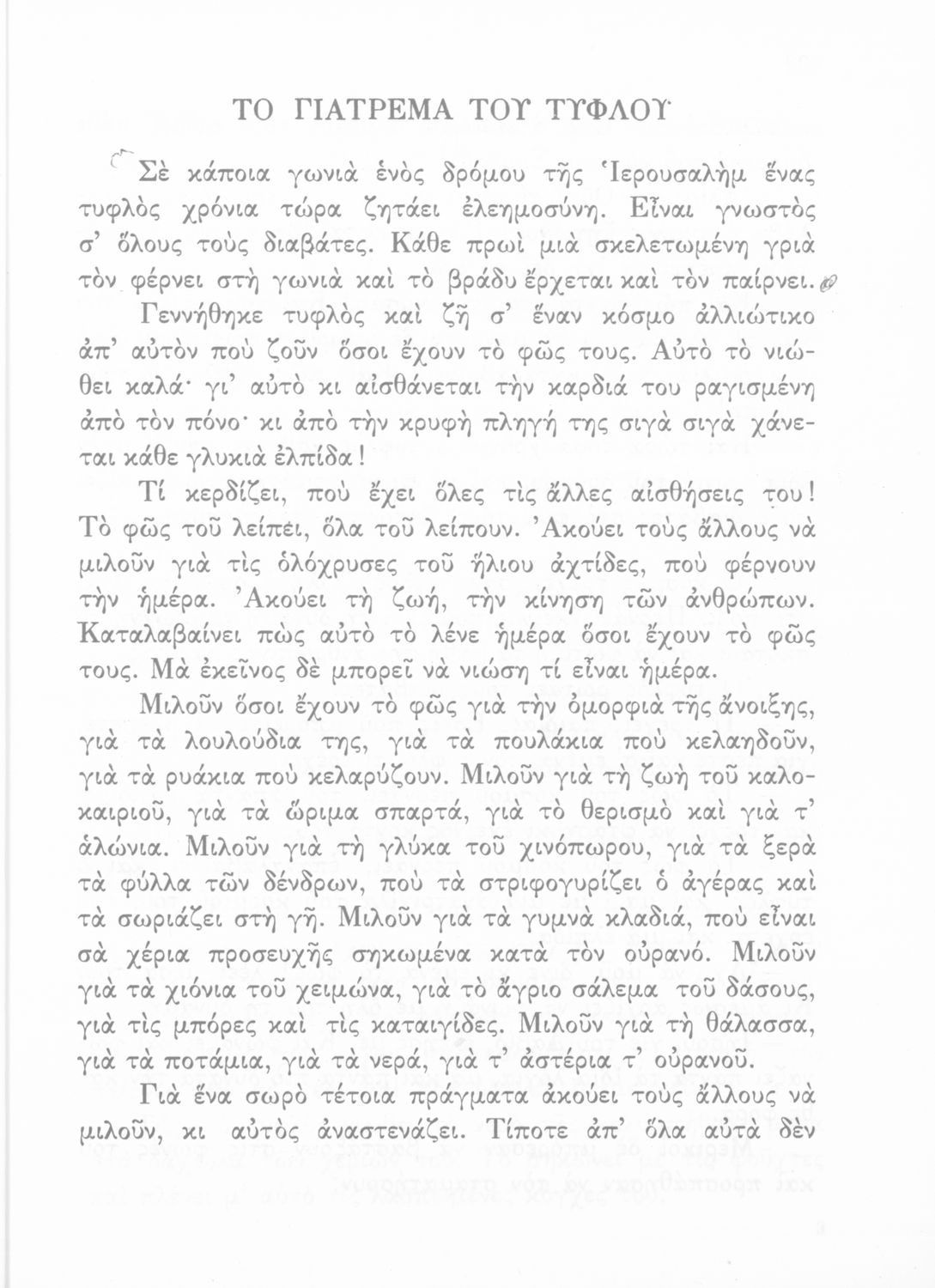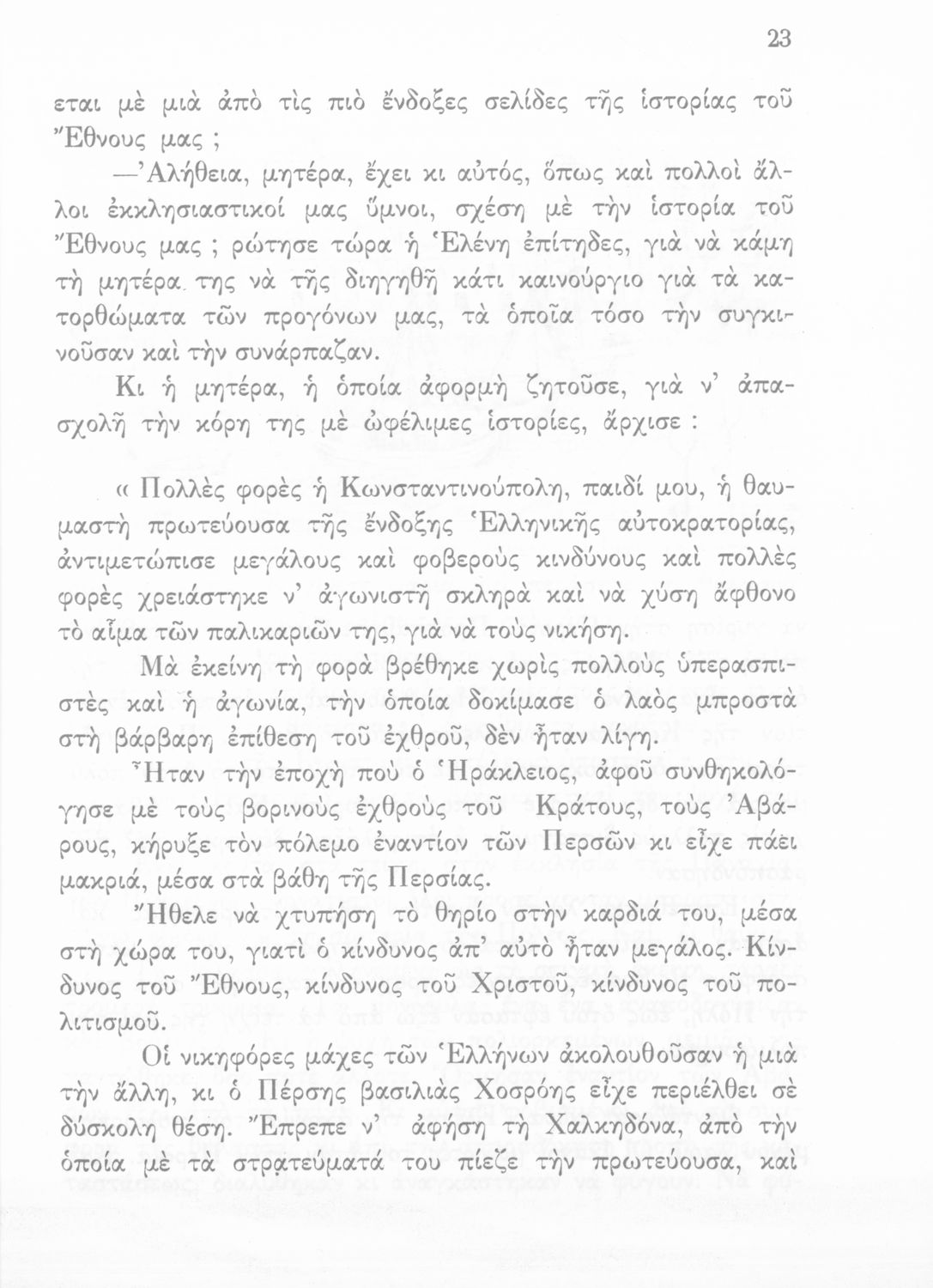 Αναγνωστικό Ε΄ Δημοτικού που περιέχει πεζά και ποιήματα εμπνευσμένα από τη θρησκευτική, εθνική, κοινωνική ζωή καθώς και από τις ασχολίες των Ελλήνων, την αρχαία και σύγχρονη ελληνική ιστορία και τον πολιτισμό.