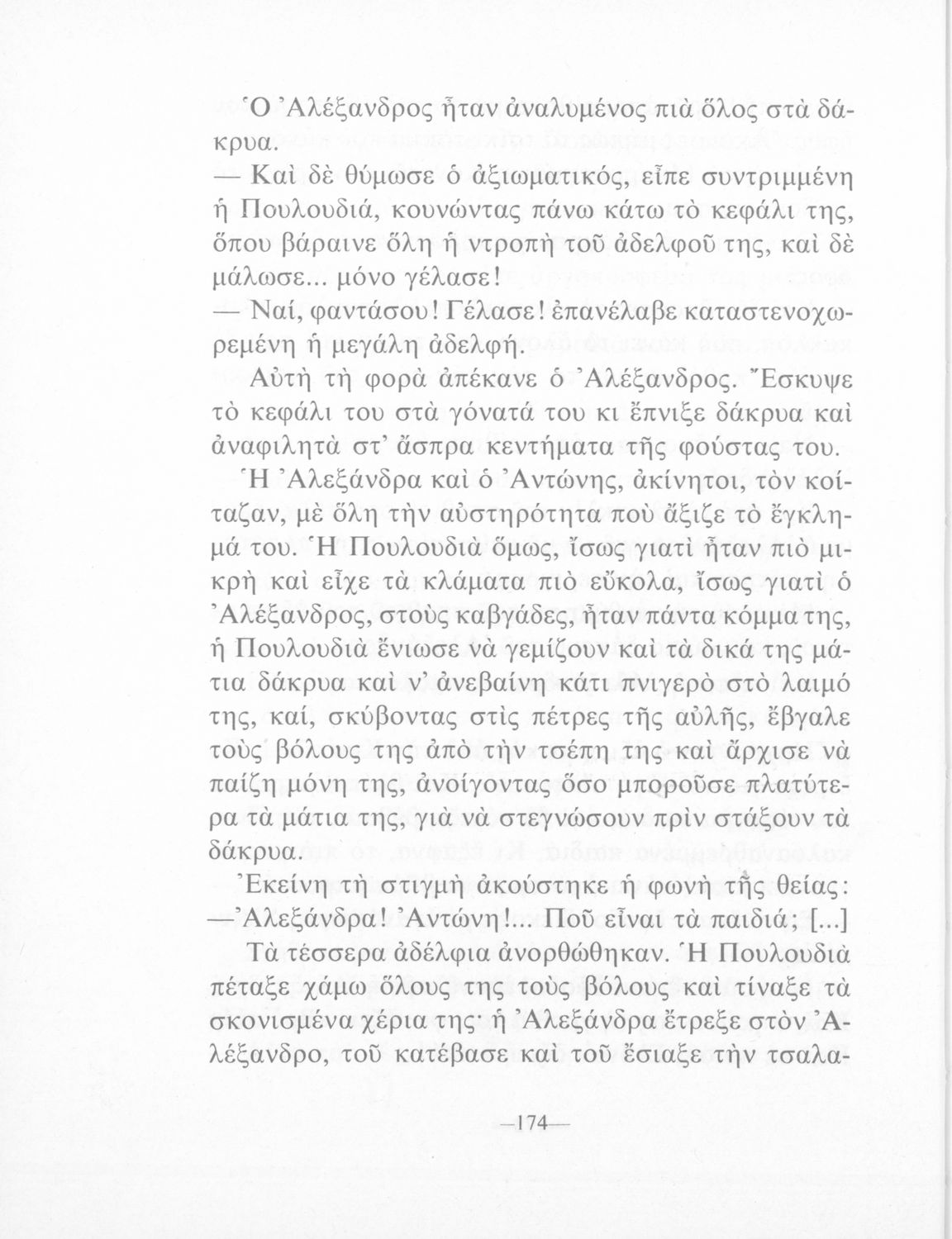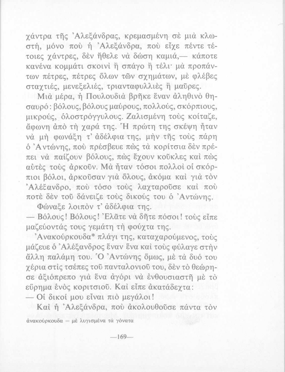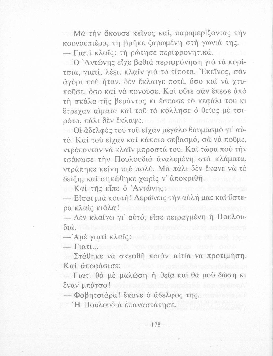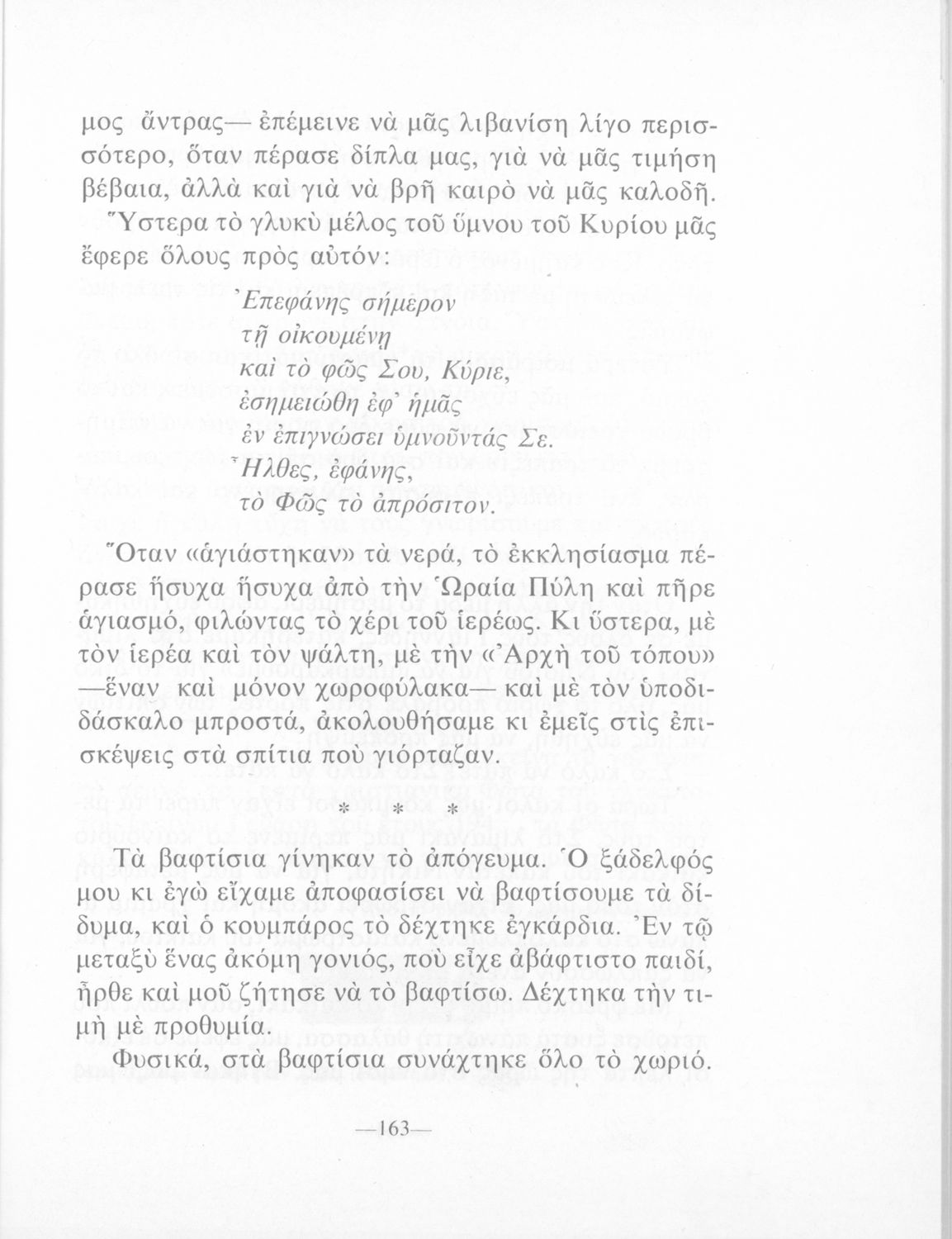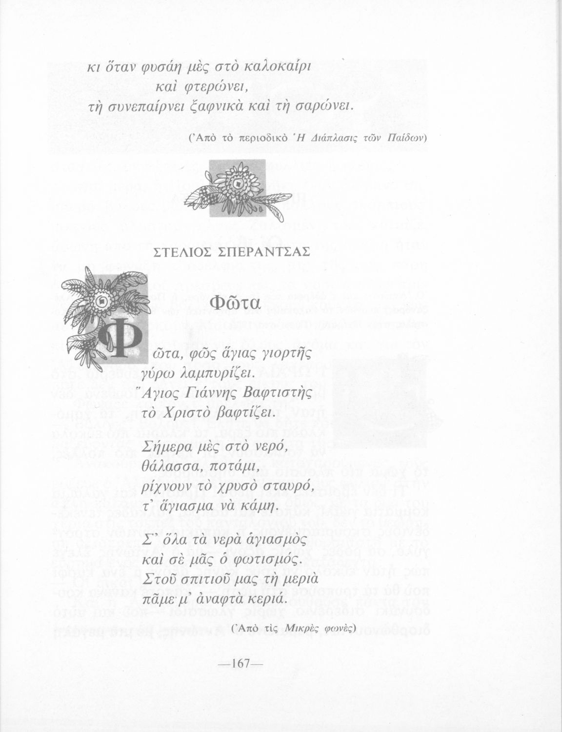 Αναγνωστικό για τους μαθητές της Γ΄ και Δ΄ Δημοτικού που περιλαμβάνει με πεζά και ποιήματα της νέας ελληνικής λογοτεχνίας εμπνευσμένα από την καθημερινότητα των παιδιών και των οικογενειών τους, την ελληνική ιστορία, τις οικογενειακές στιγμές και εορτές, το παιχνίδι, τα επαγγέλματα και τις ασχολίες των ανθρώπων. Το βιβλίο είναι αφιερωμένο στη μνήμη του Γρηγορίου Ξενόπουλου.