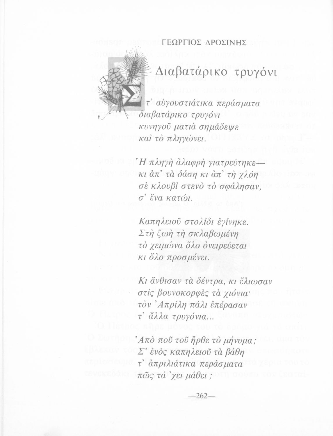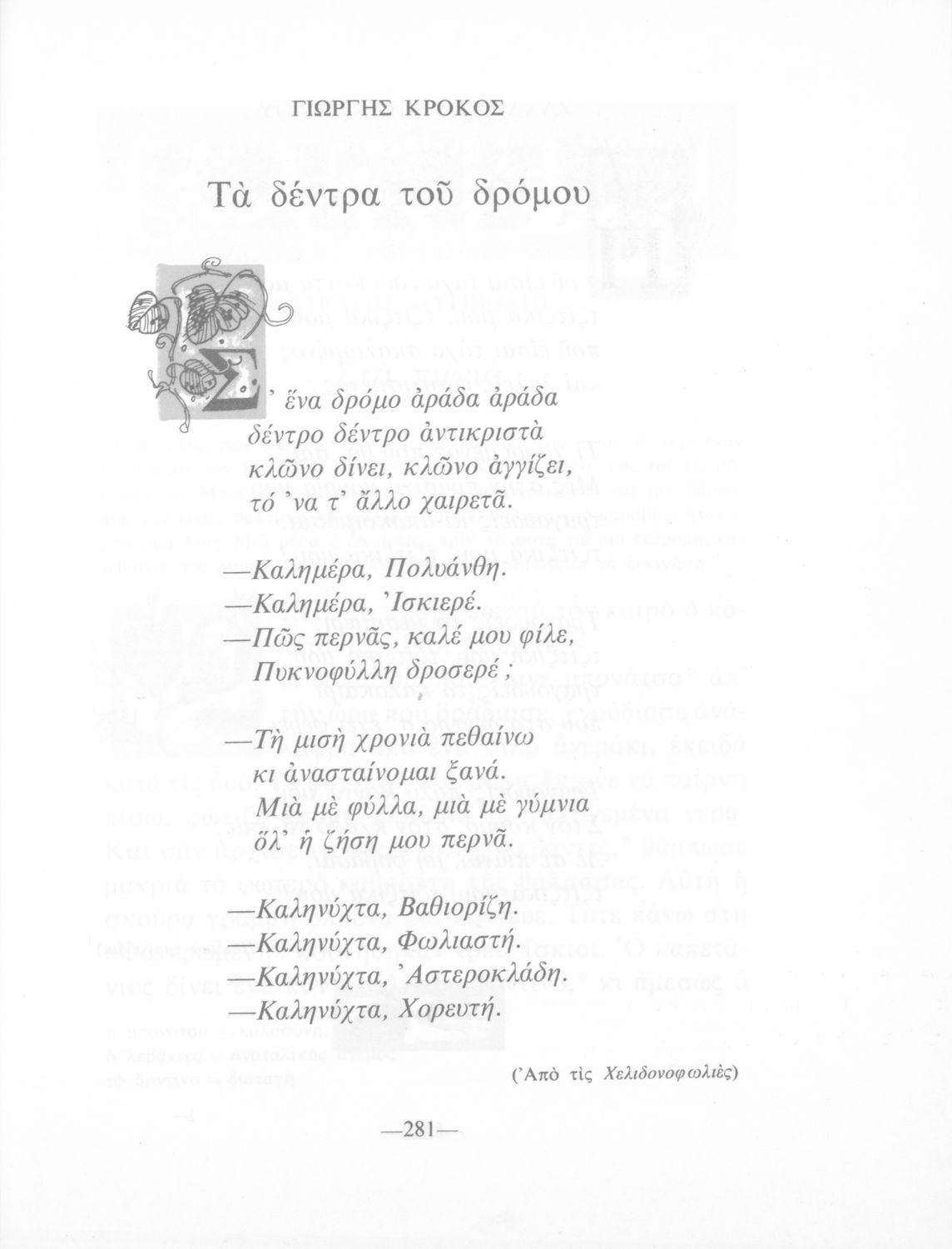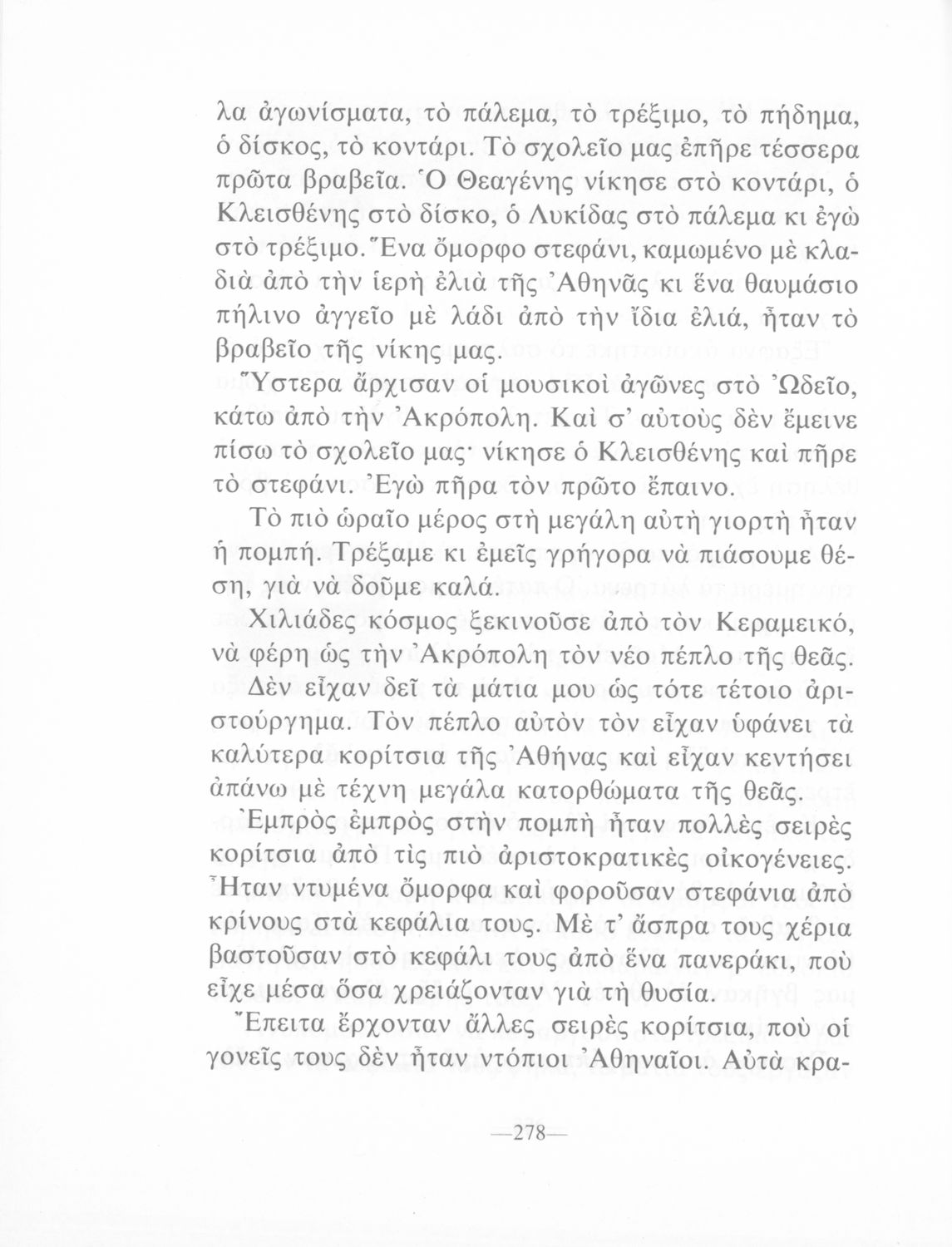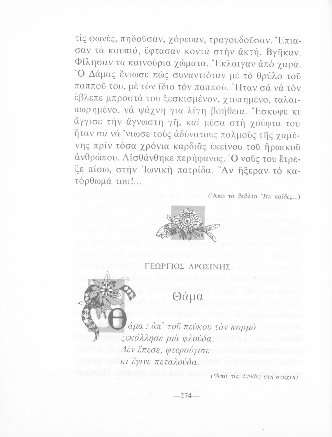 Αναγνωστικό για τους μαθητές της Γ΄ και Δ΄ Δημοτικού που περιλαμβάνει με πεζά και ποιήματα της νέας ελληνικής λογοτεχνίας εμπνευσμένα από την καθημερινότητα των παιδιών και των οικογενειών τους, την ελληνική ιστορία, τις οικογενειακές στιγμές και εορτές, το παιχνίδι, τα επαγγέλματα και τις ασχολίες των ανθρώπων. Το βιβλίο είναι αφιερωμένο στη μνήμη του Γρηγορίου Ξενόπουλου.