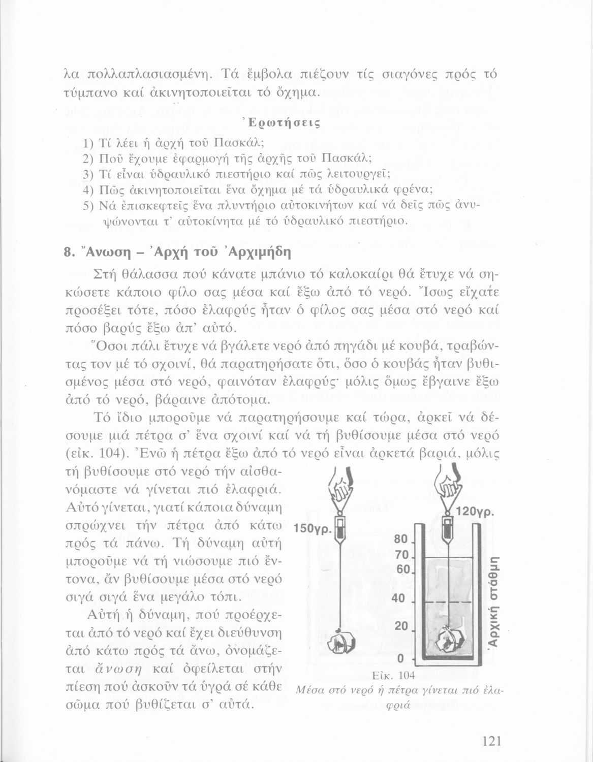 Σχολικό εγχειρίδιο Φυσικής Πειραματικής και Χημείας Ε΄ Δημοτικού που αποτελεί μια εισαγωγή στις έννοιες της ύλης, της ενέργειας, της θερμότητας, της μηχανικής, της υδροστατικής και της αεροστατικής. Περιέχει και στοιχεία χημείας.