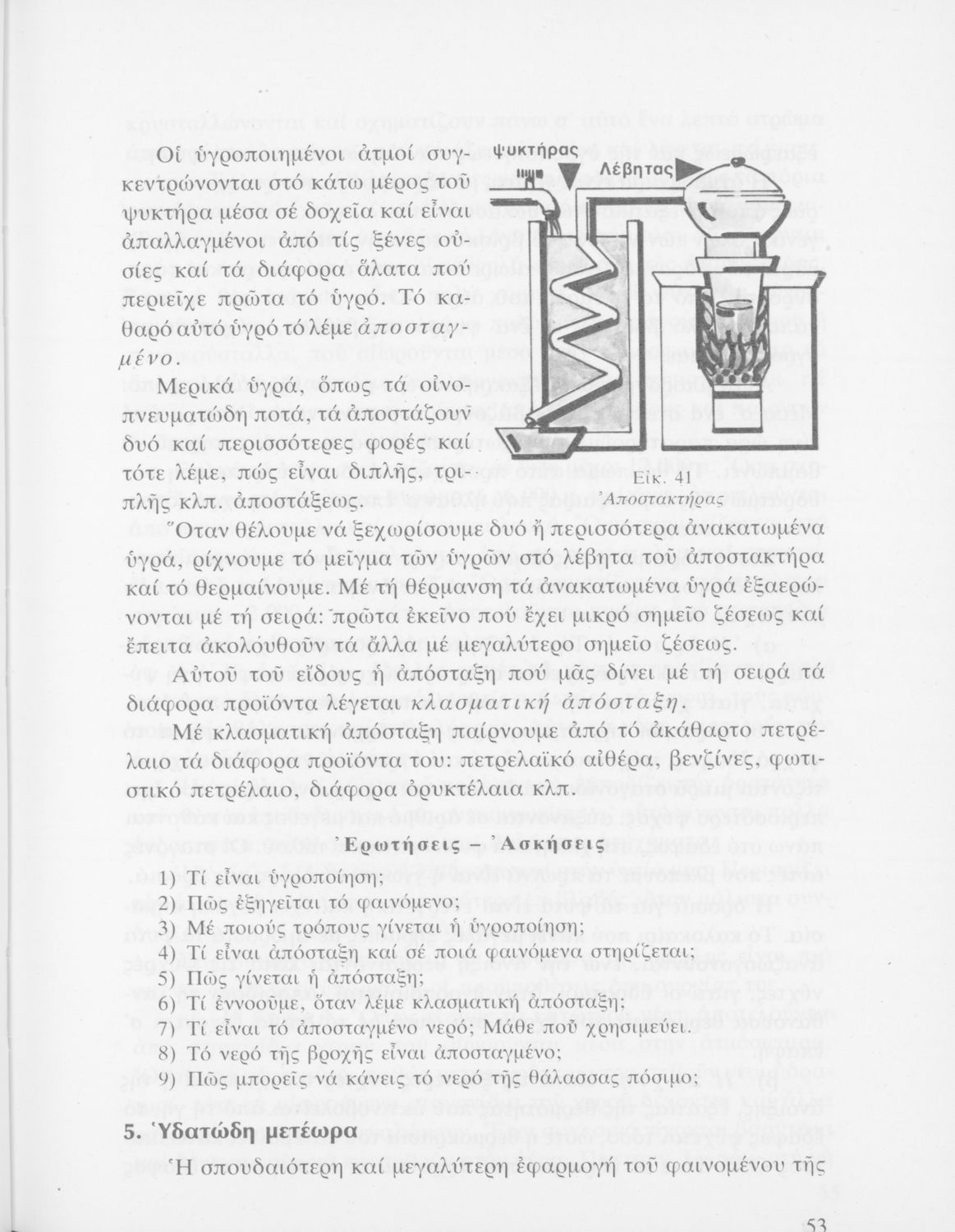 Σχολικό εγχειρίδιο για την Ε΄ Δημοτικού για το μάθημα της Φυσικής και Χημείας. Το εγχειρίδιο περιλαμβάνει τις βασικές έννοιες της πειραματικής φυσικής (θερμότητα, απόσταξη, εξάτμιση, βαρύτητα, ατμοσφαιρικά ...