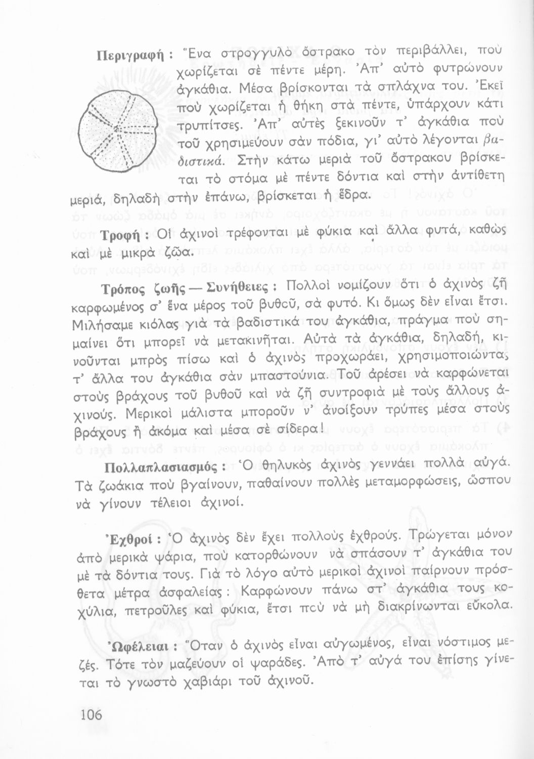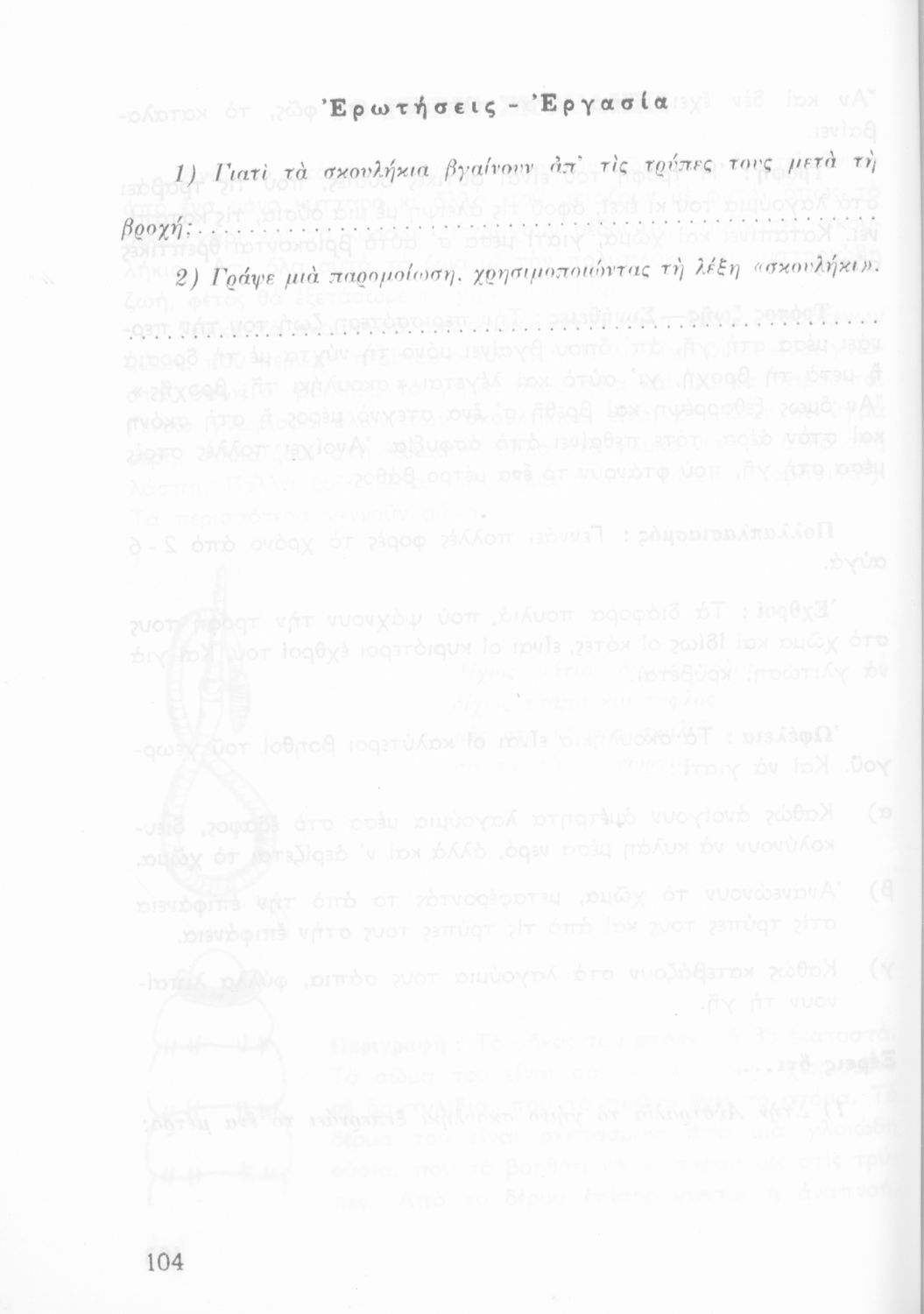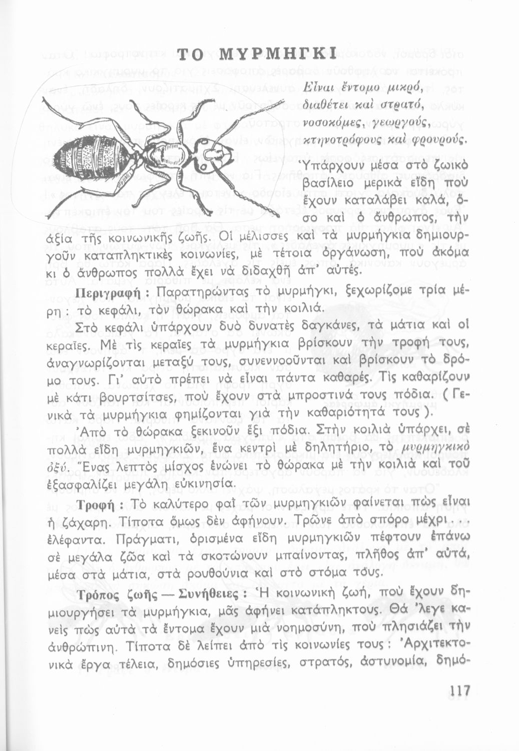 Σχολικό εγχειρίδιο Φυτολογίας και Ζωολογίας για τη Δ΄ Δημοτικού που γράφτηκε στη σειρά εκδόσεων της Σχολή Μωραΐτη. Παρουσιάζει πλήθος φυτών και ζώων και εστιάζει στην αναπαραγωγή, τους εχθρούς, τις διατροφικές συνήθειες και στην χρησιμότητά τους για τον άνθρωπο. Περιέχει ερωτήσεις και εργασίες.