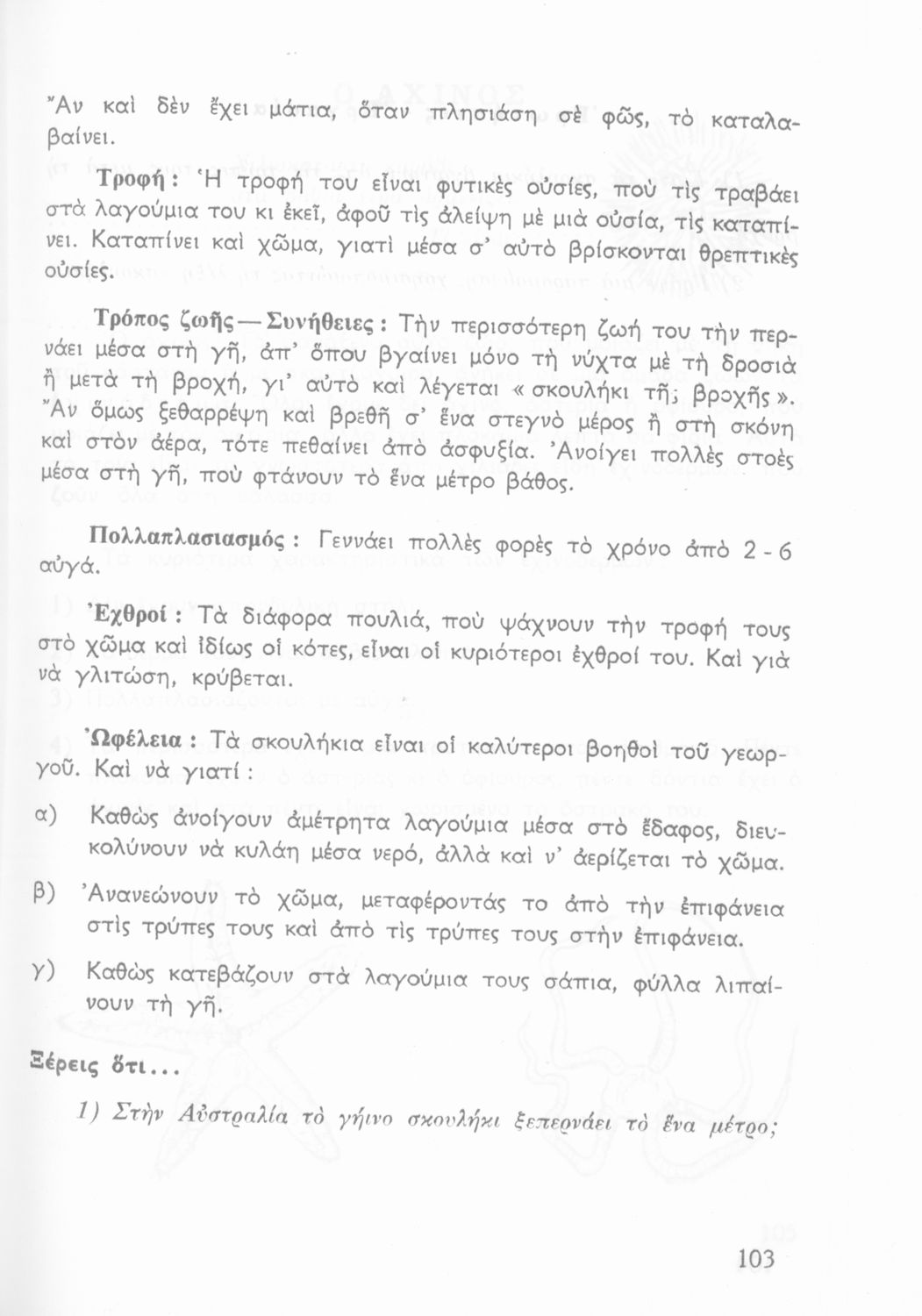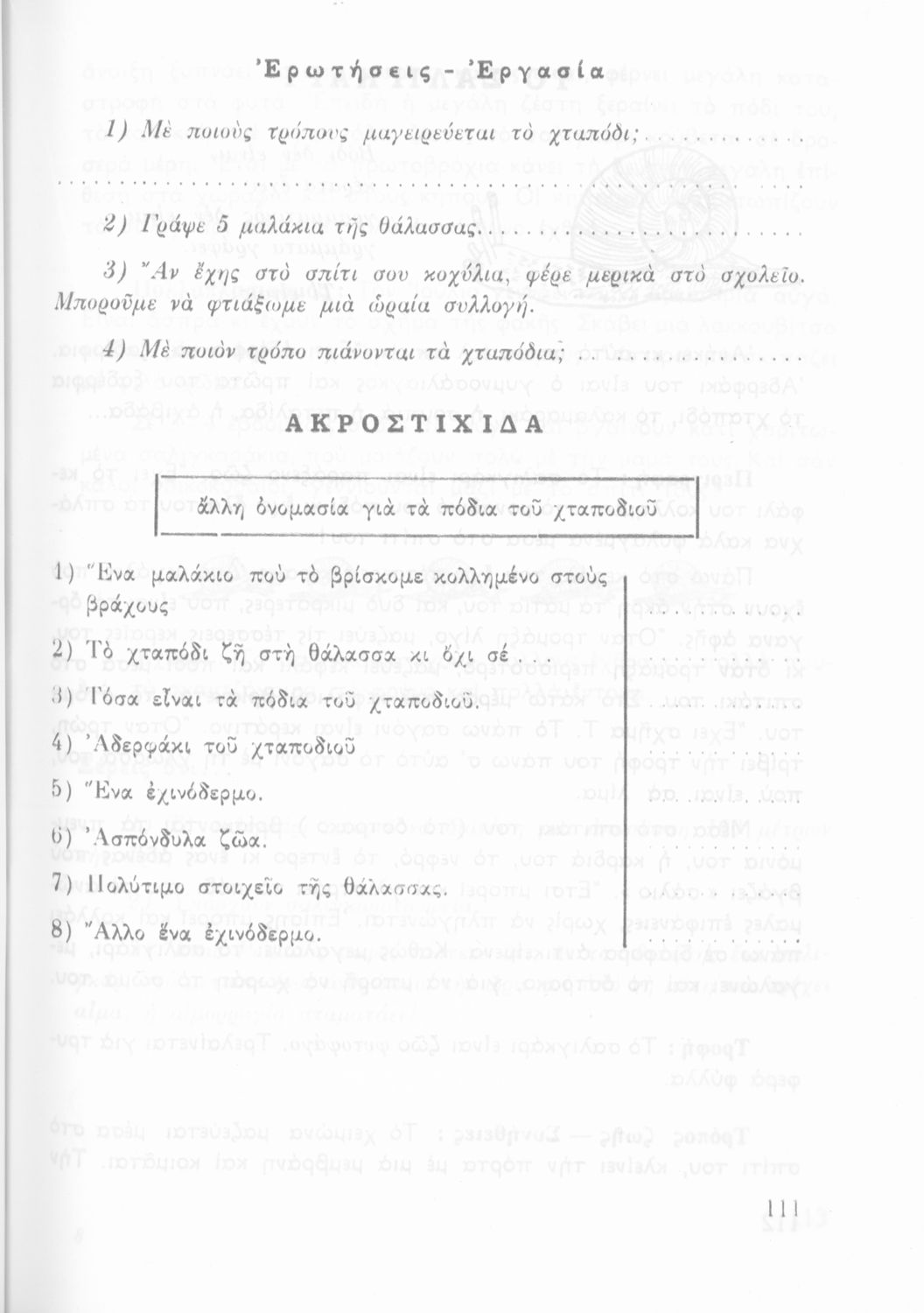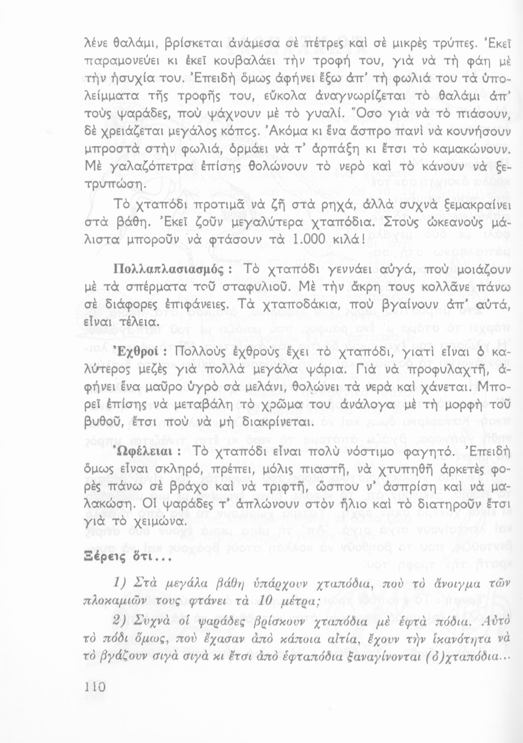 Σχολικό εγχειρίδιο Φυτολογίας και Ζωολογίας για τη Δ΄ Δημοτικού που γράφτηκε στη σειρά εκδόσεων της Σχολή Μωραΐτη. Παρουσιάζει πλήθος φυτών και ζώων και εστιάζει στην αναπαραγωγή, τους εχθρούς, τις διατροφικές συνήθειες και στην χρησιμότητά τους για τον άνθρωπο. Περιέχει ερωτήσεις και εργασίες.