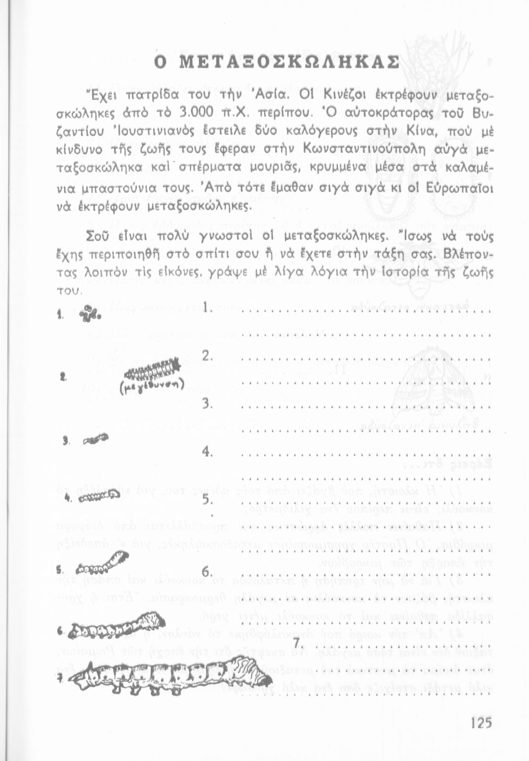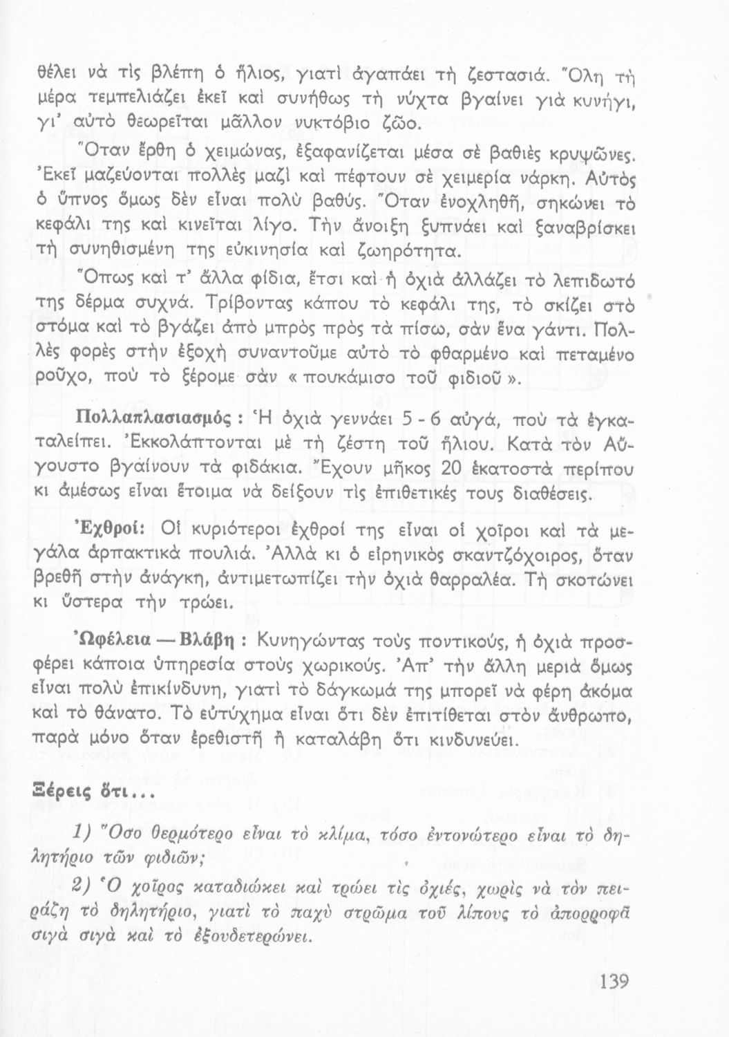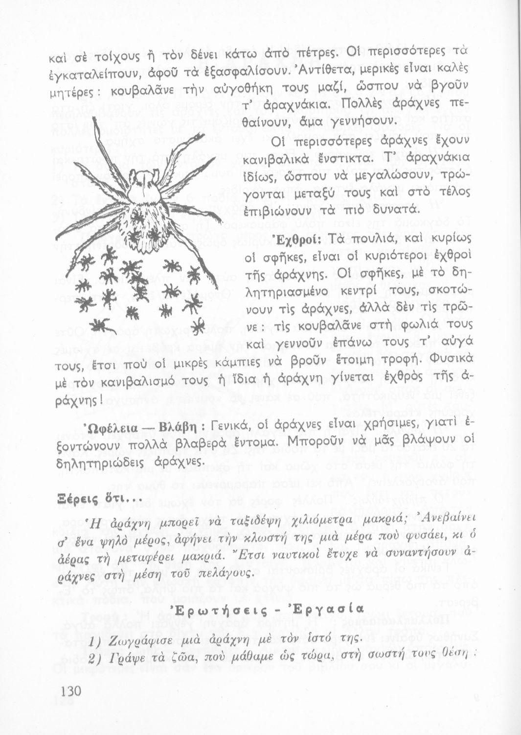 Σχολικό εγχειρίδιο Φυτολογίας και Ζωολογίας για τη Δ΄ Δημοτικού που γράφτηκε στη σειρά εκδόσεων της Σχολή Μωραΐτη. Παρουσιάζει πλήθος φυτών και ζώων και εστιάζει στην αναπαραγωγή, τους εχθρούς, τις διατροφικές συνήθειες και στην χρησιμότητά τους για τον άνθρωπο. Περιέχει ερωτήσεις και εργασίες.