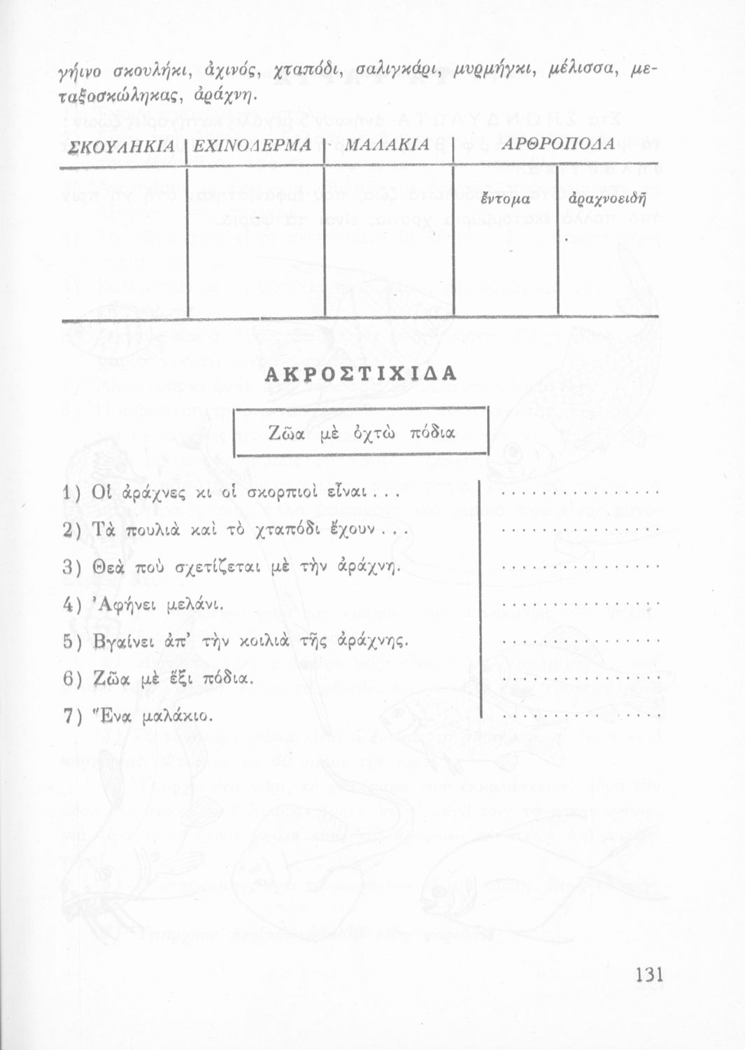 Φυτά και ζώα της πατρίδας μας, Δ΄ Δημοτικού