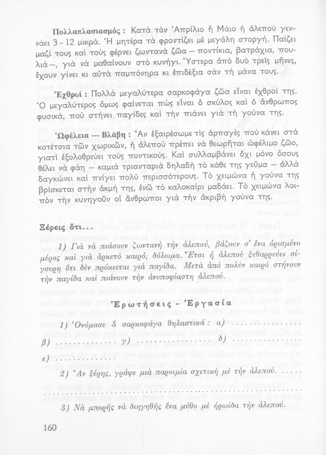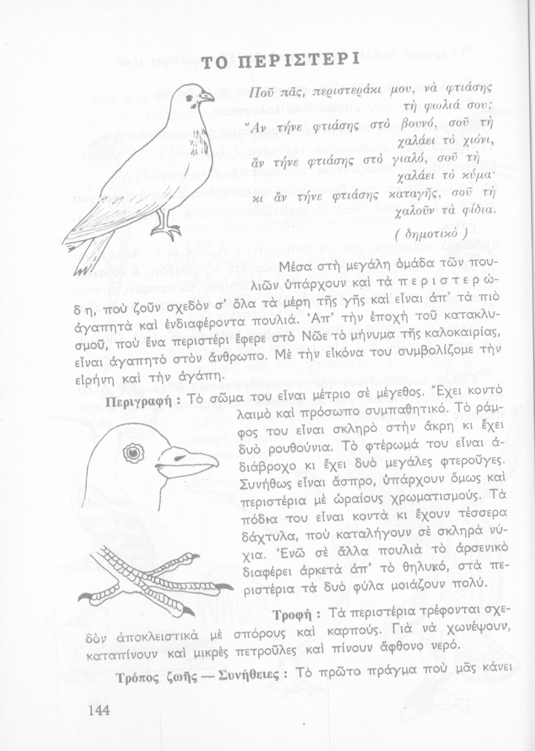 Σχολικό εγχειρίδιο Φυτολογίας και Ζωολογίας για τη Δ΄ Δημοτικού που γράφτηκε στη σειρά εκδόσεων της Σχολή Μωραΐτη. Παρουσιάζει πλήθος φυτών και ζώων και εστιάζει στην αναπαραγωγή, τους εχθρούς, τις διατροφικές συνήθειες και στην χρησιμότητά τους για τον άνθρωπο. Περιέχει ερωτήσεις και εργασίες.