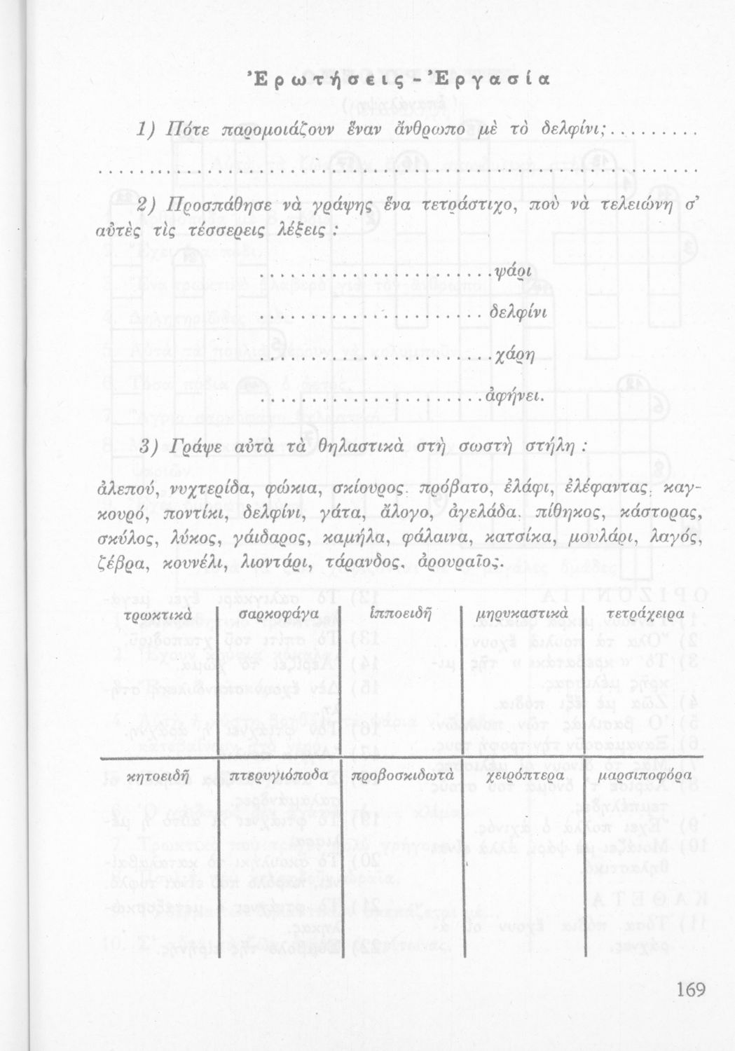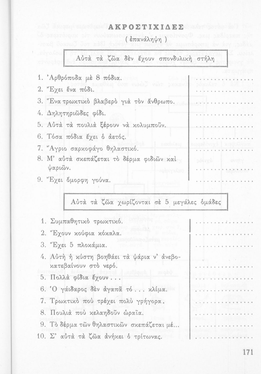 Φυτά και ζώα της πατρίδας μας, Δ΄ Δημοτικού