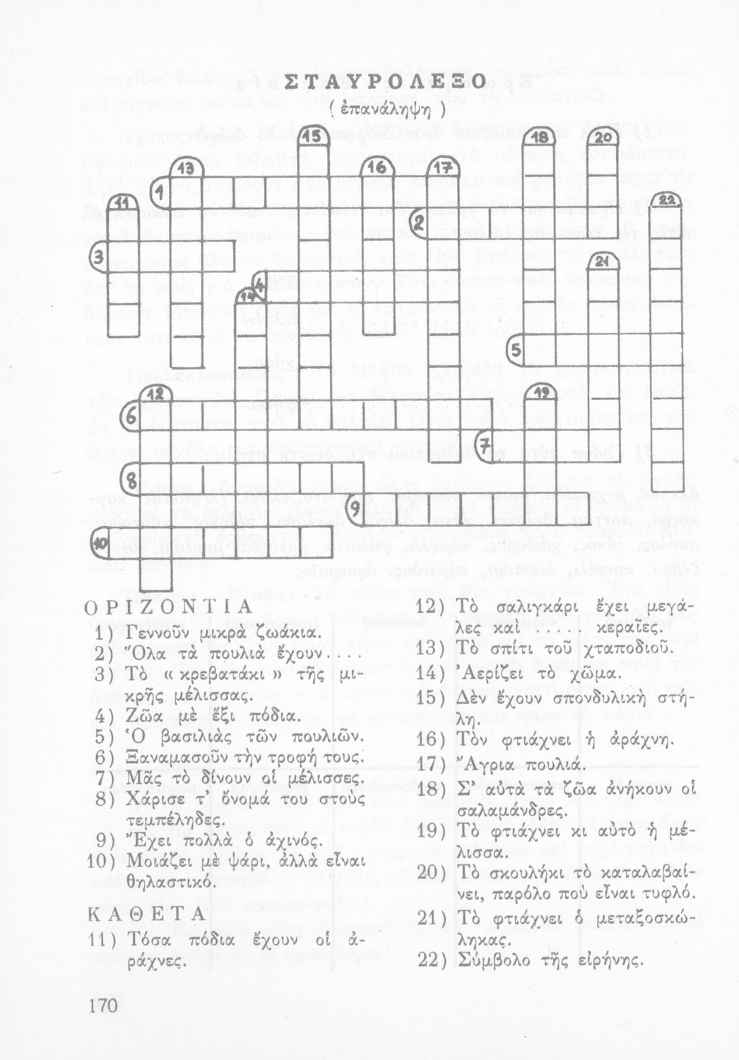 Σχολικό εγχειρίδιο Φυτολογίας και Ζωολογίας για τη Δ΄ Δημοτικού που γράφτηκε στη σειρά εκδόσεων της Σχολή Μωραΐτη. Παρουσιάζει πλήθος φυτών και ζώων και εστιάζει στην αναπαραγωγή, τους εχθρούς, τις διατροφικές συνήθειες και στην χρησιμότητά τους για τον άνθρωπο. Περιέχει ερωτήσεις και εργασίες.