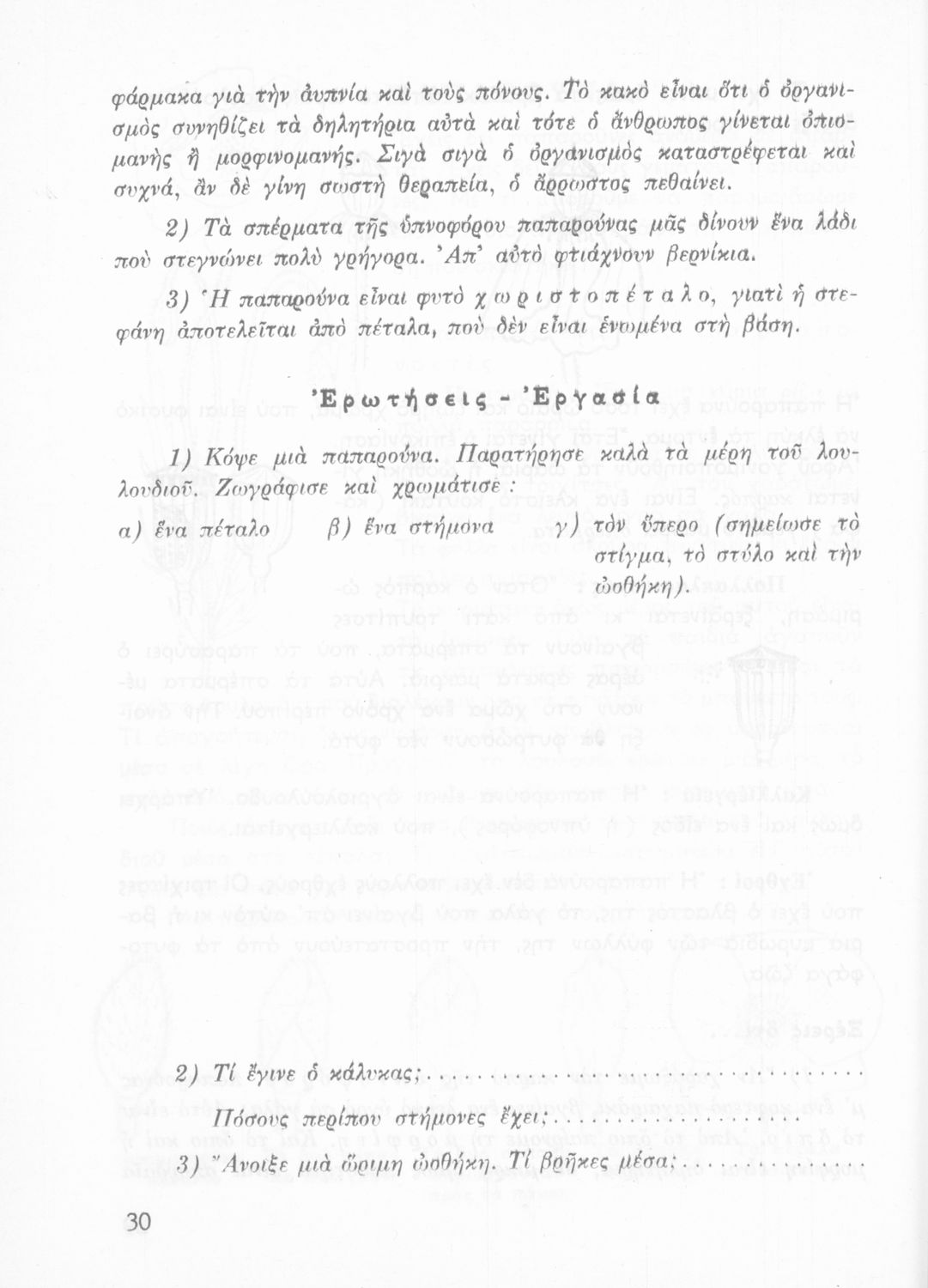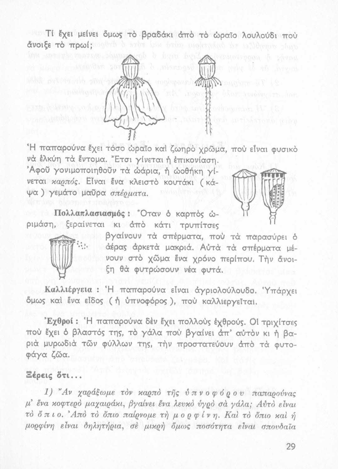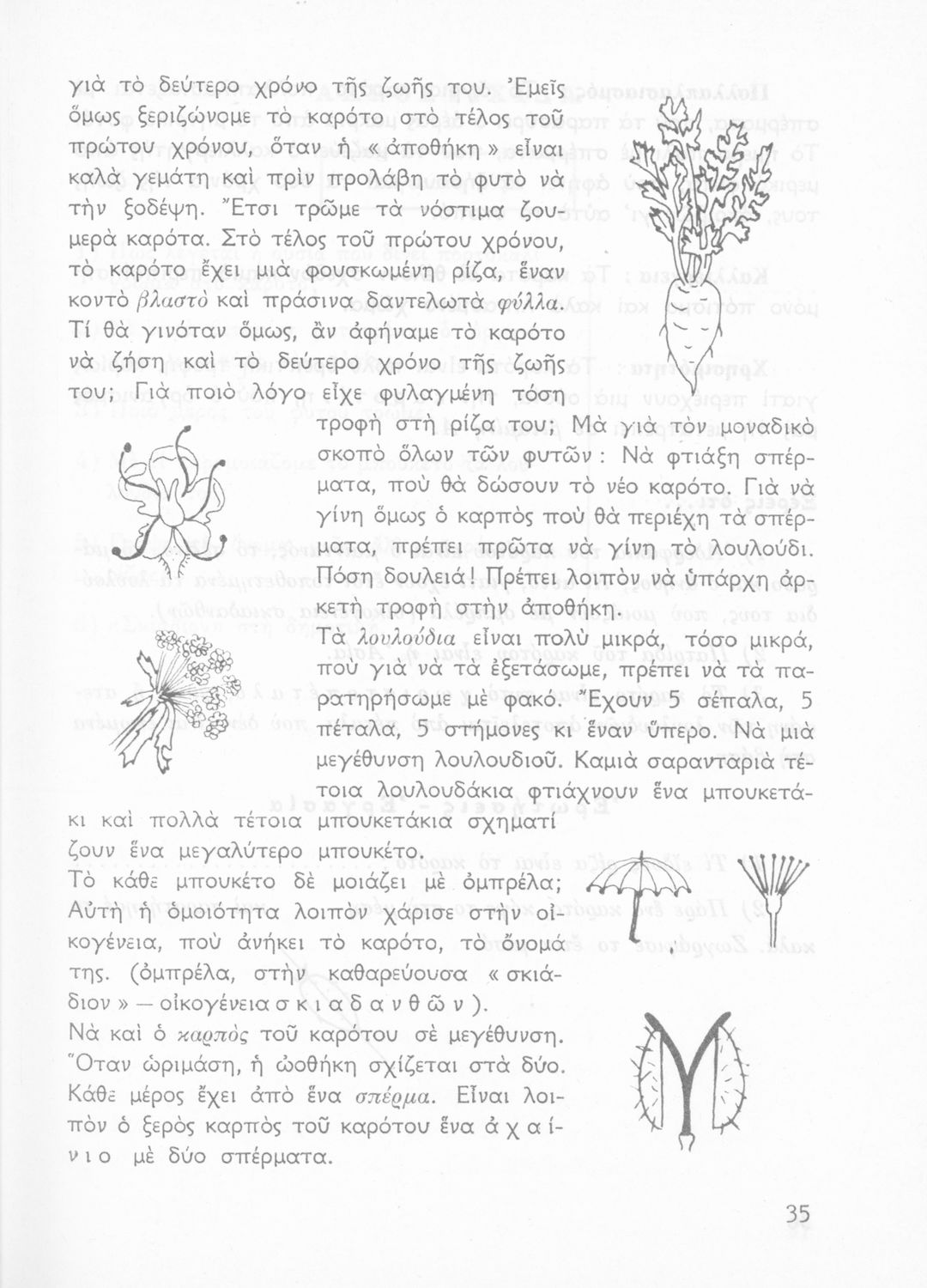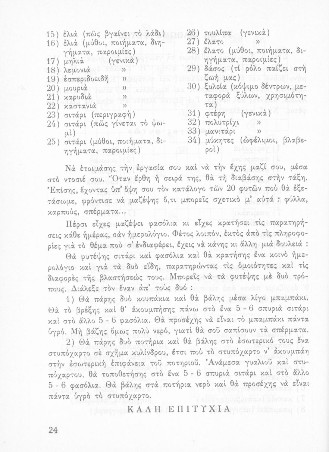 Πρόκειται για βιβλίο Φυτολογίας και Ζωολογίας για την Γ΄ Δημοτικού. Περιέχει στοιχεία για τα μέρη του φυτού, για φυτά και ζώα που υπάρχουν στον κήπο, τον ανθόκηπο και τον λαχανόκηπο.