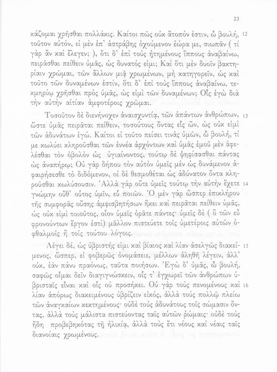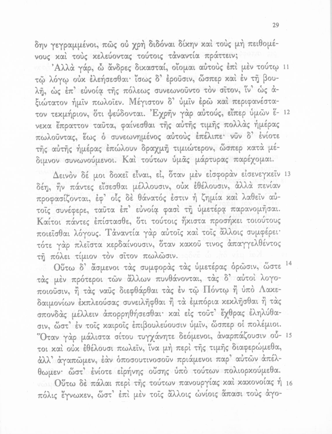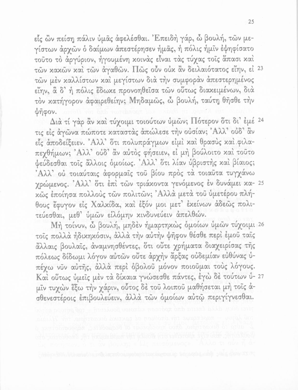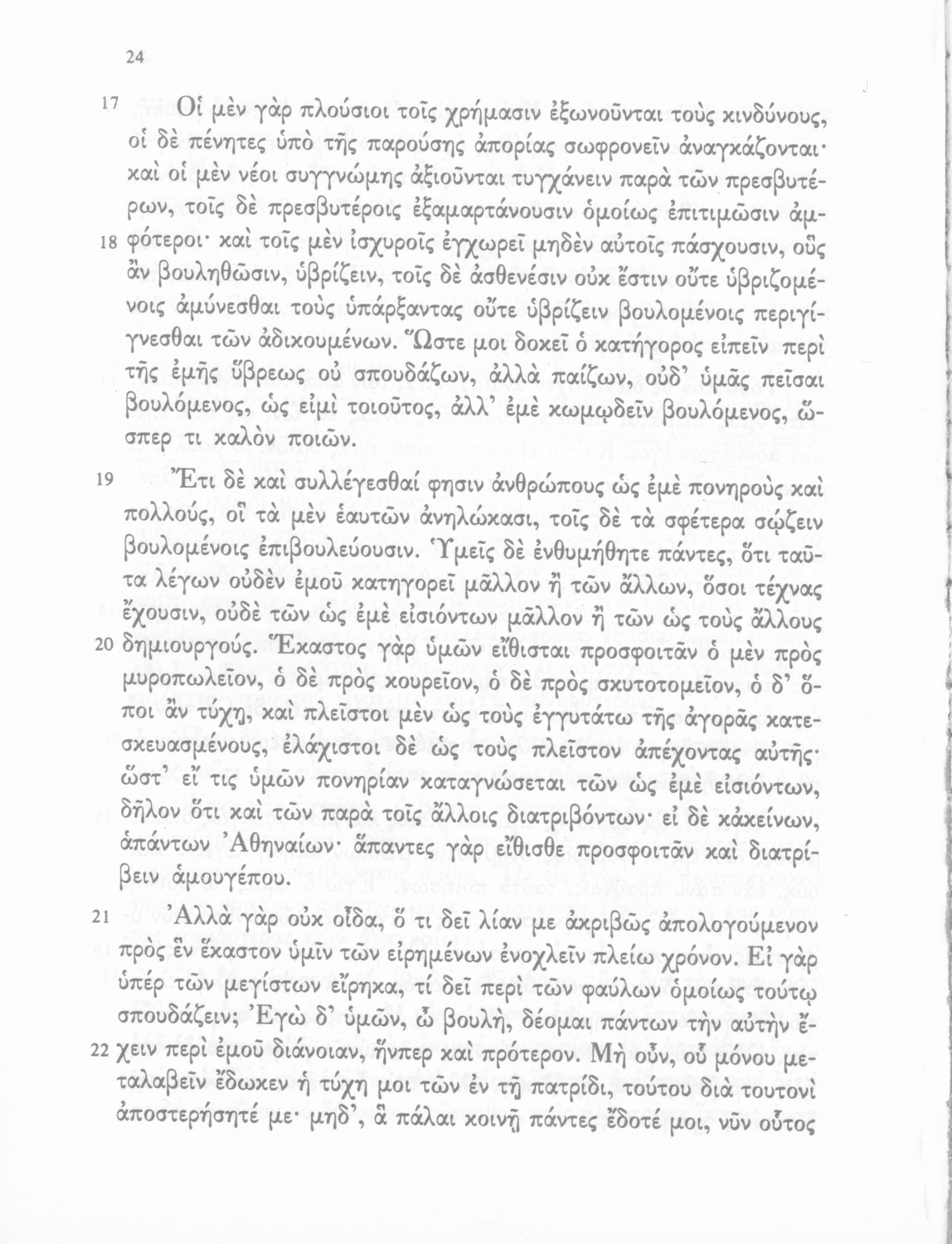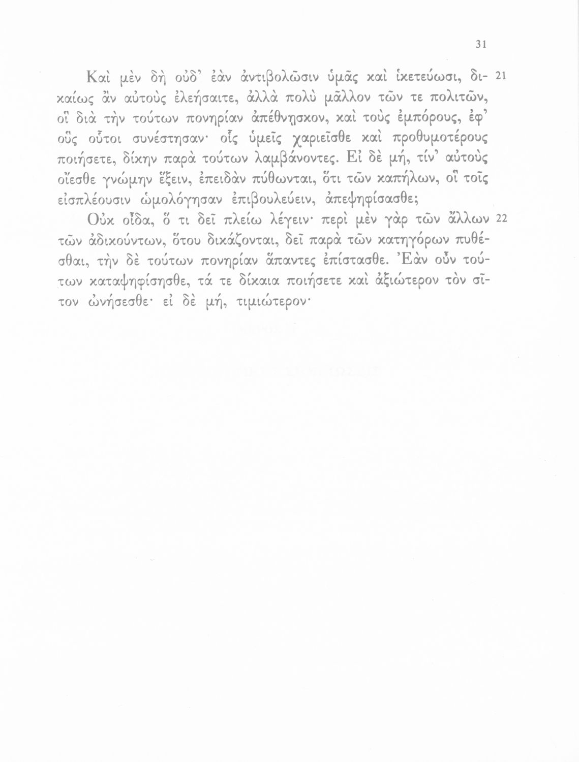 Σχολικό εγχειρίδιο Αρχαίων Ελληνικών Γ΄ Γυμνασίου που περιλαμβάνει τους Λόγους του Λυσία Περί του σηκού απολογία, Υπέρ του αδυνάτου, Κατά των σιτοπωλών και του Ισοκράτη Προς Δημόνικον, Προς Νικοκλέα και Ευαγόρας, εισαγωγή στους Λόγους και ερμηνευτικά σχόλια.