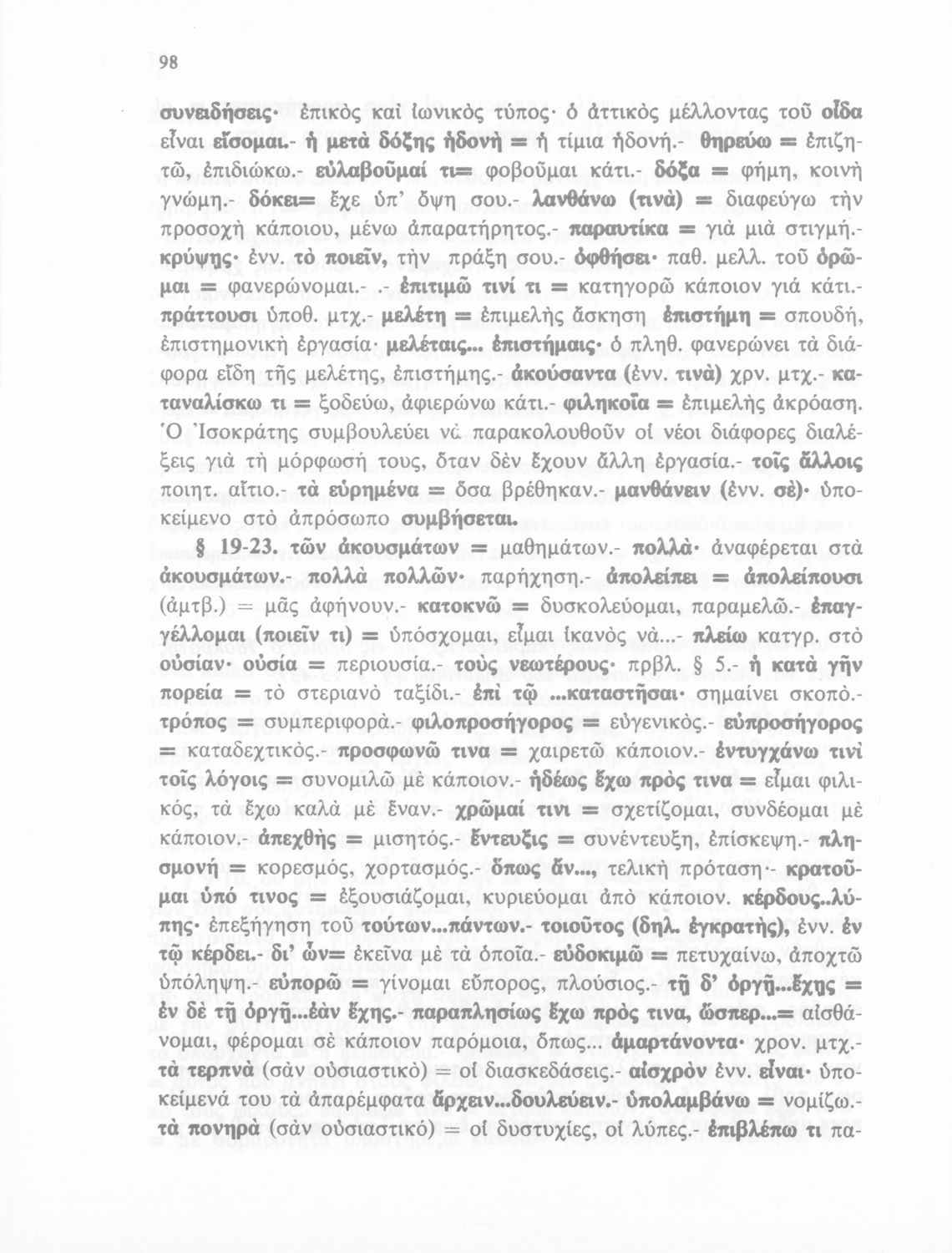 Σχολικό εγχειρίδιο Αρχαίων Ελληνικών Γ΄ Γυμνασίου που περιλαμβάνει τους Λόγους του Λυσία Περί του σηκού απολογία, Υπέρ του Αδυνάτου, Κατά των Σιτοπωλών και του Ισοκράτη Προς Δημόνικον, Προς Νικοκλέα, Ευαγόρας,