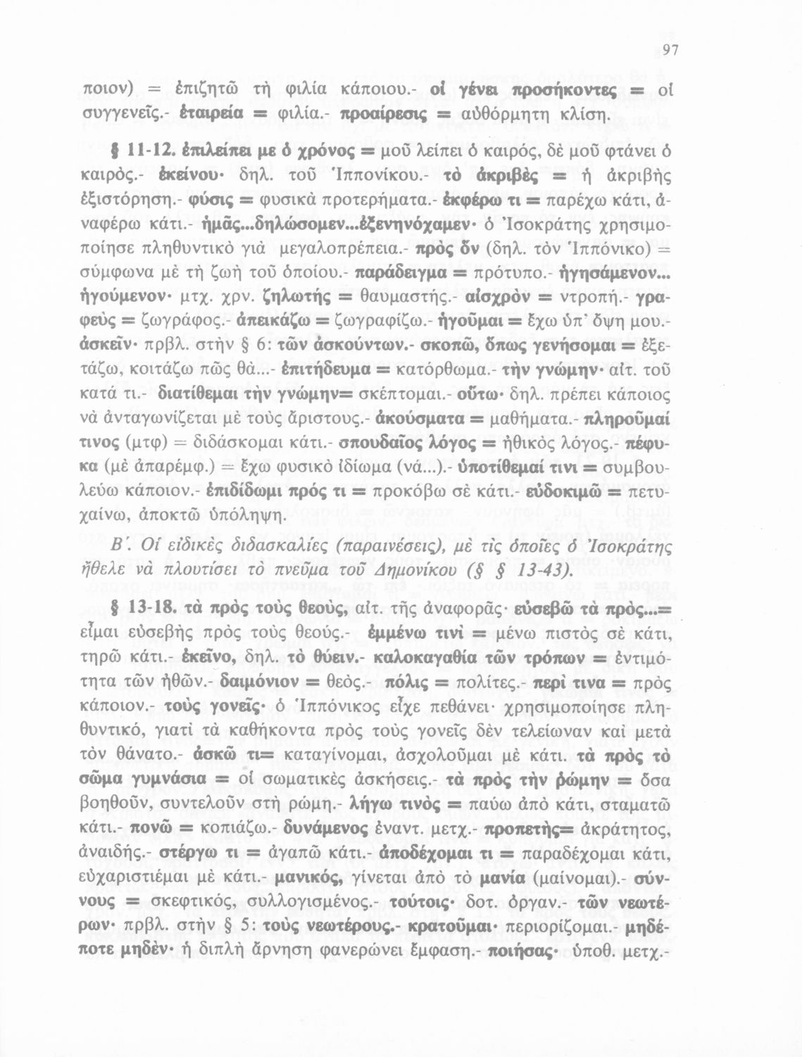 Σχολικό εγχειρίδιο Αρχαίων Ελληνικών Γ΄ Γυμνασίου που περιλαμβάνει τους Λόγους του Λυσία Περί του σηκού απολογία, Υπέρ του αδυνάτου, Κατά των σιτοπωλών και του Ισοκράτη Προς Δημόνικον, Προς Νικοκλέα και Ευαγόρας, εισαγωγή στους Λόγους και ερμηνευτικά σχόλια.