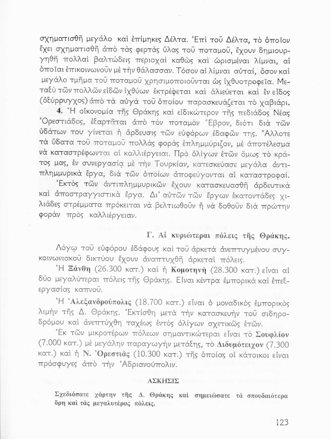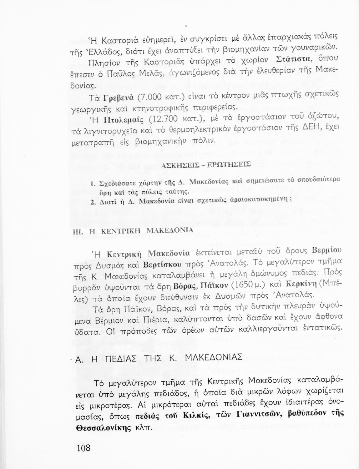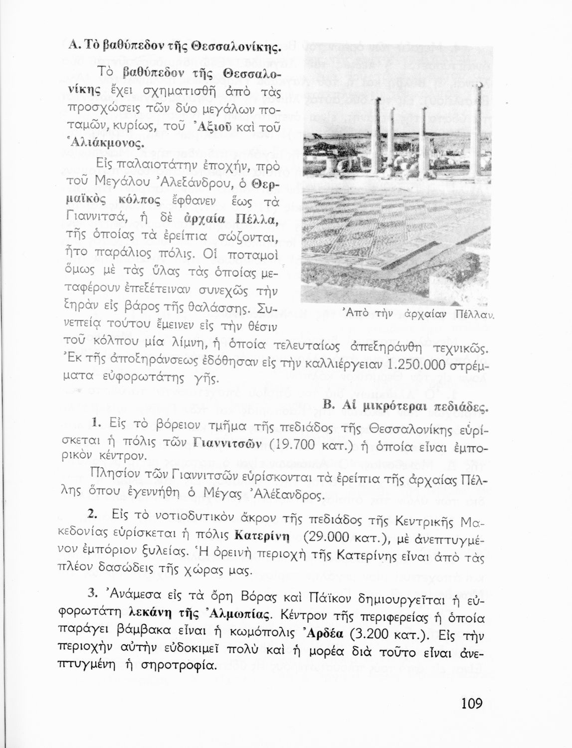 Σχολικό εγχειρίδιο Γεωγραφίας Α' Γυμνασίου που εξετάζει την Ελλάδα ανά διαμέρισμα και νομό από γεωφυσική, οικονομική και πολιτική άποψη.