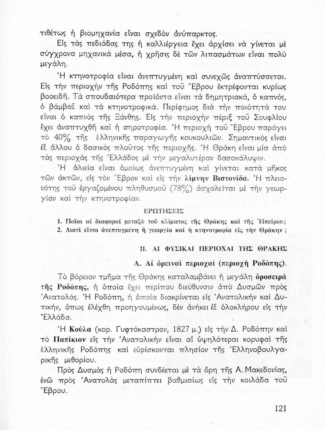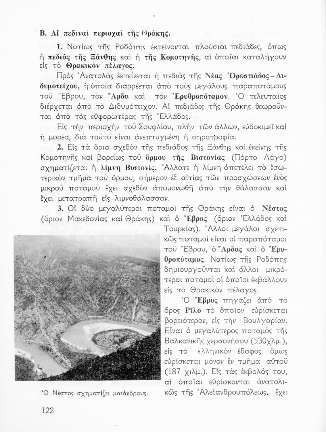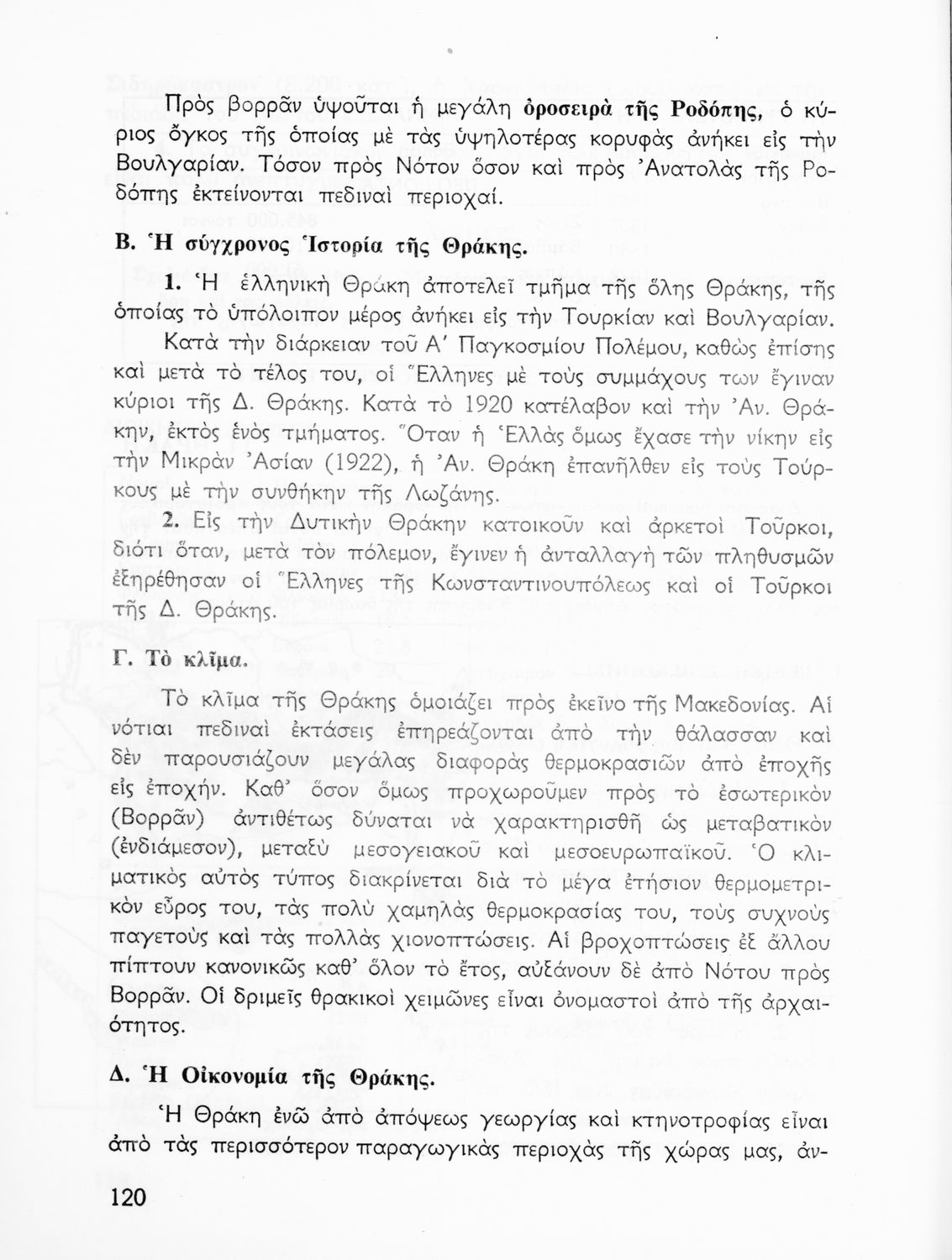Σχολικό εγχειρίδιο Γεωγραφίας που περιλαμβάνει εισαγωγή στη φυσική γεωγραφία και εξετάζει την Ελλάδα ανά γεωγραφικό διαμέρισμα από γεωφυσική, οικονομική και πολιτική άποψη.