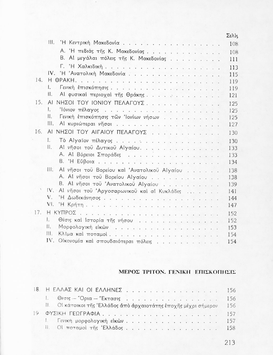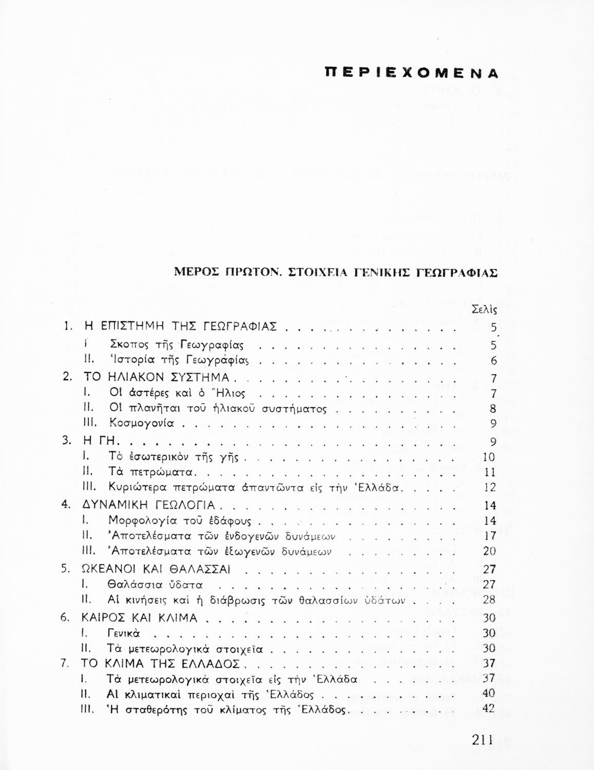 Σχολικό εγχειρίδιο Γεωγραφίας που περιλαμβάνει εισαγωγή στη φυσική γεωγραφία και εξετάζει την Ελλάδα ανά γεωγραφικό διαμέρισμα από γεωφυσική, οικονομική και πολιτική άποψη.
