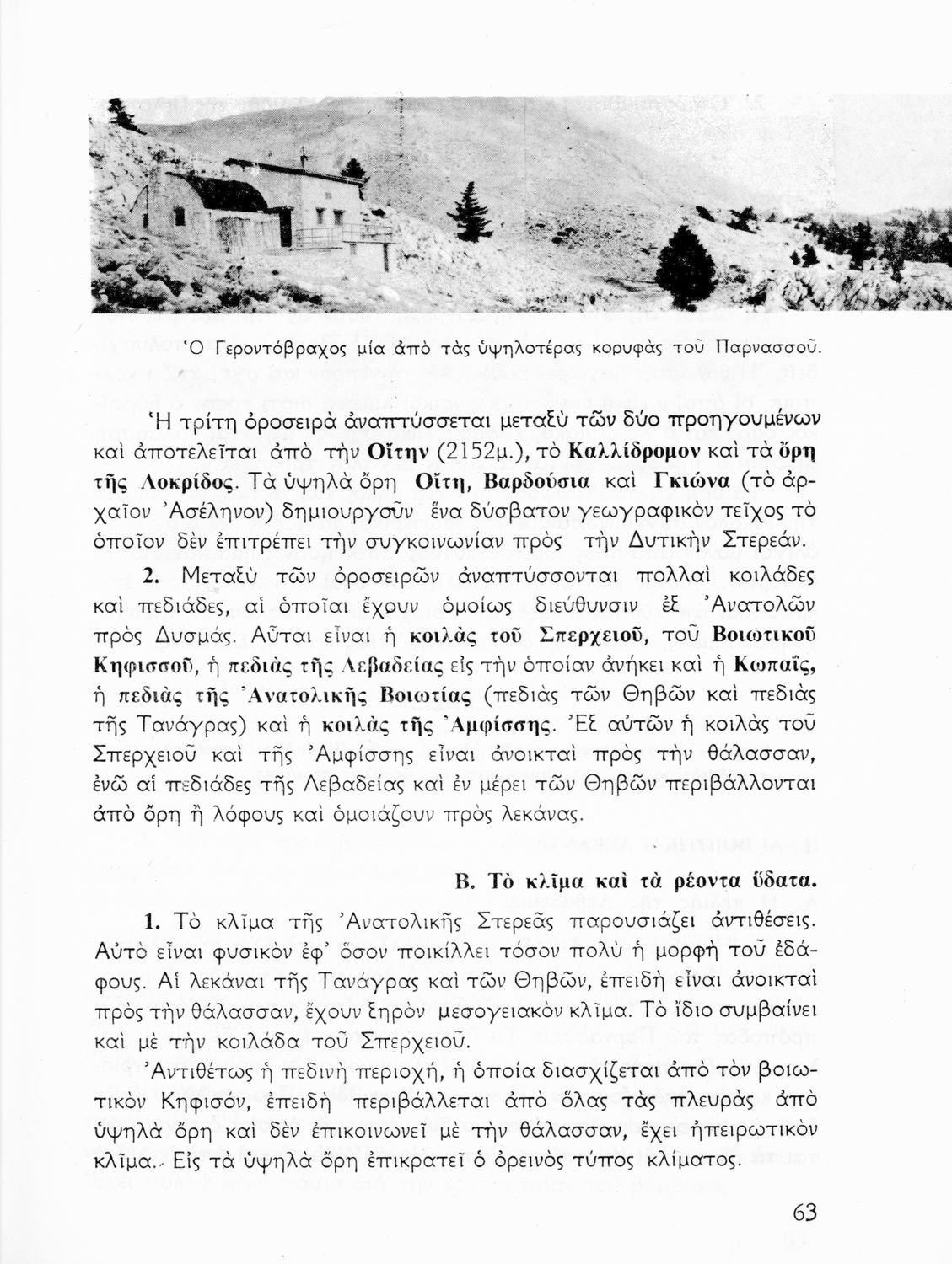 Σχολικό εγχειρίδιο Γεωγραφίας που πραγματεύεται το κλίμα της Ελλάδας ανά γεωγραφική περιοχή και περιέχει κλιματολογικούς χάρτες. Ο συγγραφέας υπήρξε τακτικός καθηγητής του Πανεπιστημίου Αθηνών.