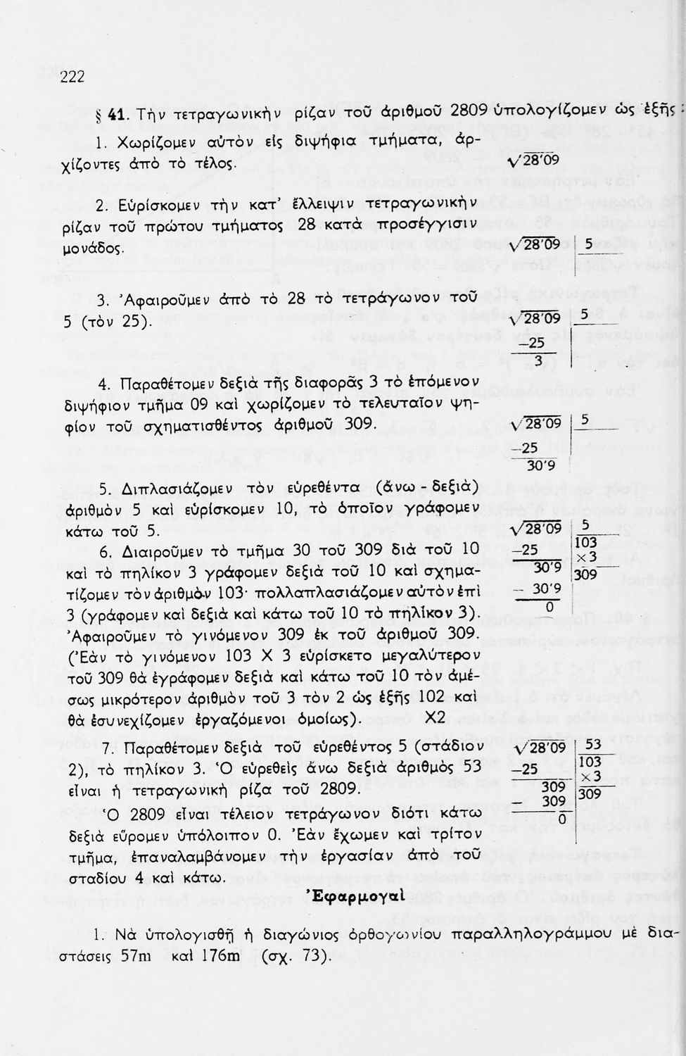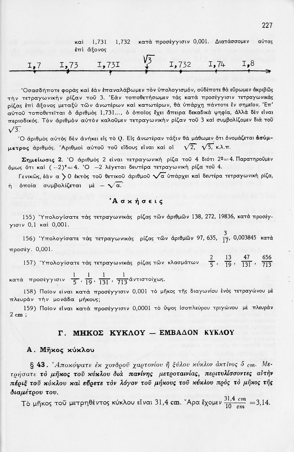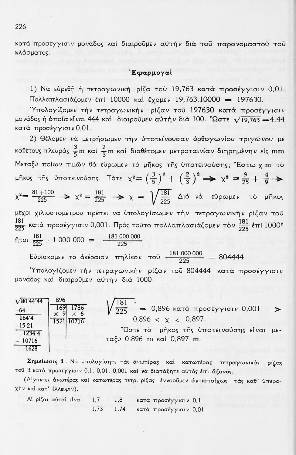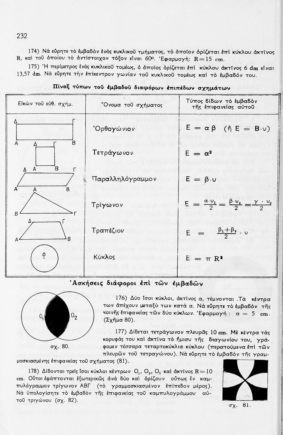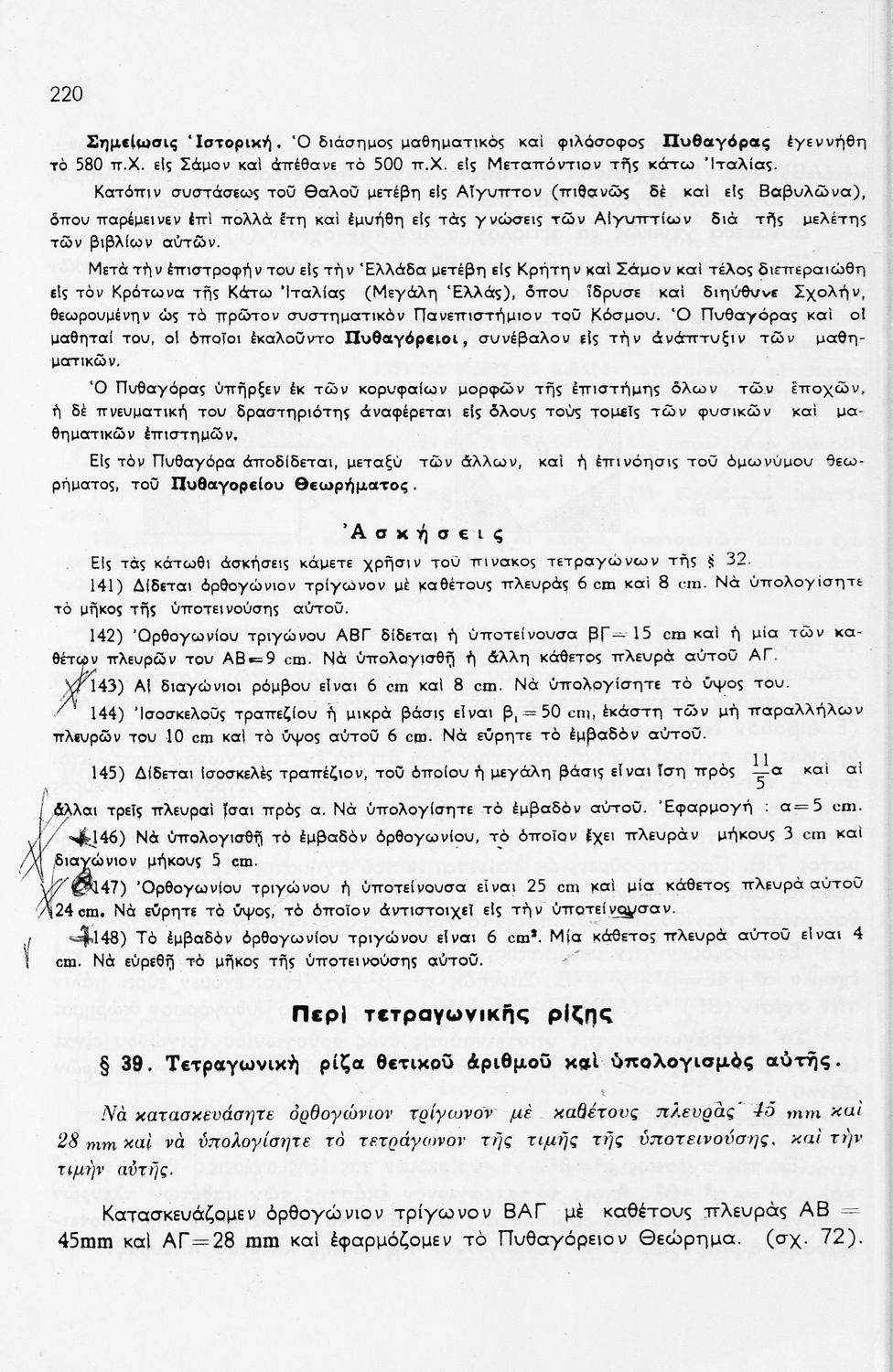 Παρουσίαση περιεχομένου: Σχολικό Εγχειρίδιο Μαθηματικών Β' Γυμνασίου που περιλαμβάνει αριθμητική με έμφαση στα σύνολα, τις μεθόδους υπολογισμού τόκων και επιτοκίων, και την μέθοδο των τριών, και γεωμετρία με έμφαση στα γεωμετρικά σχήματα και σώματα και τρόπους υπολογισμού τους. Φέρει το σύμβολο της δικτατορίας.